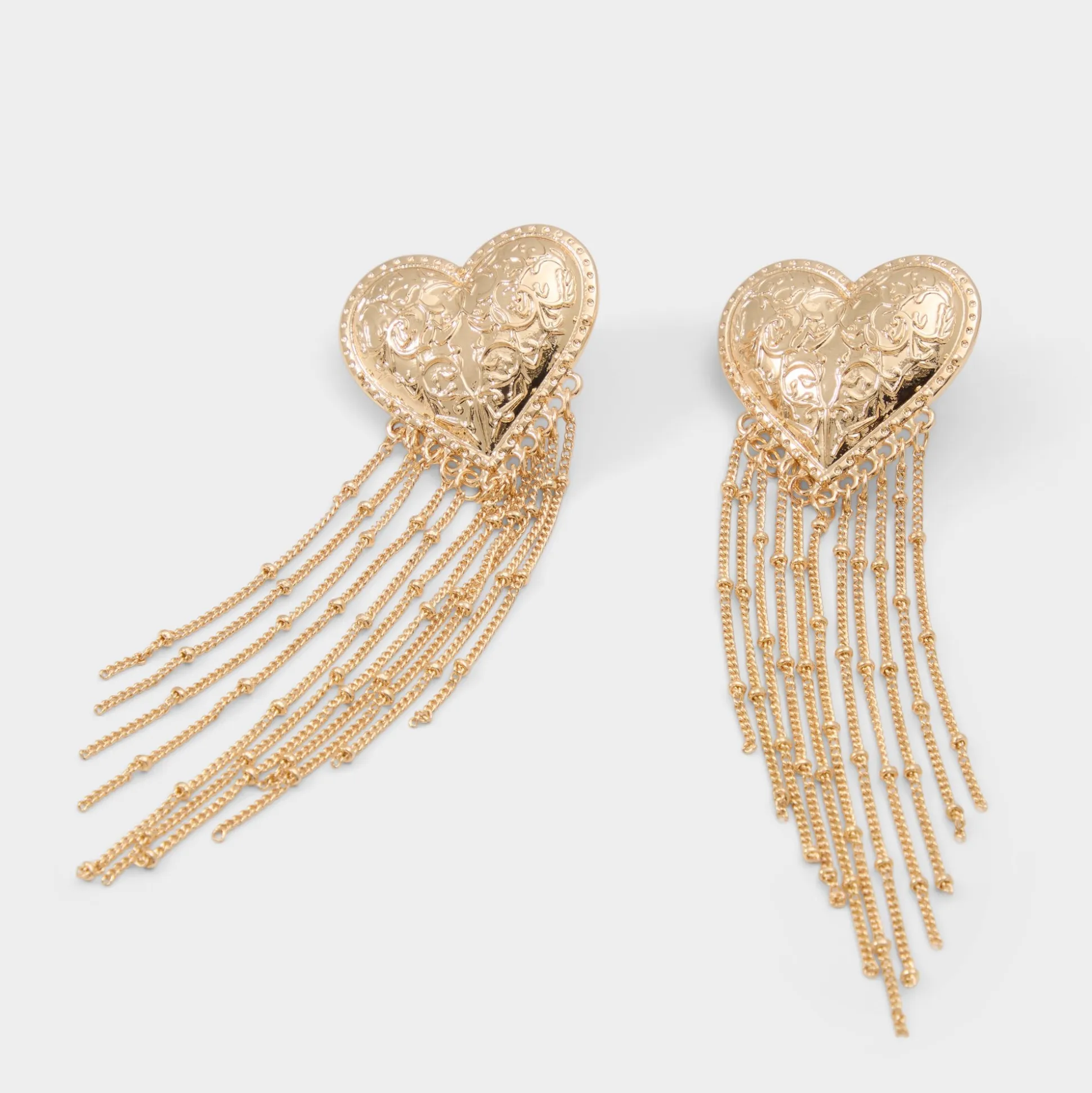 Lovique heart earrings feature chunky hearts with cascading long tassels for a romantic, statement-making look. Ideal for Valentine’s Day or whenever you want to express love through bold, playful style.