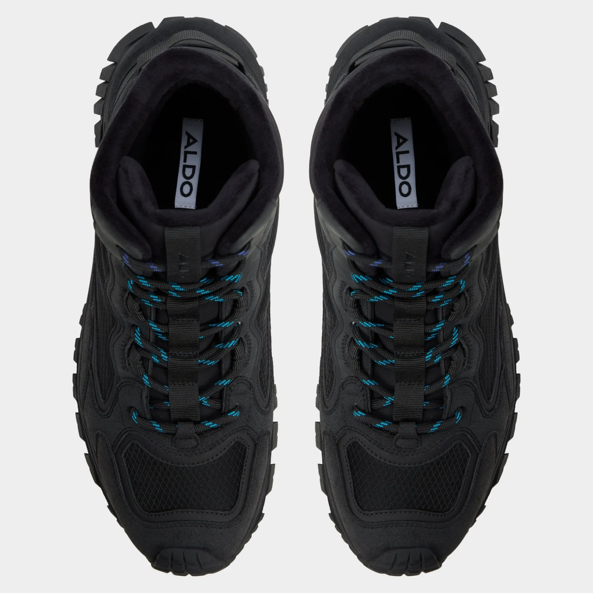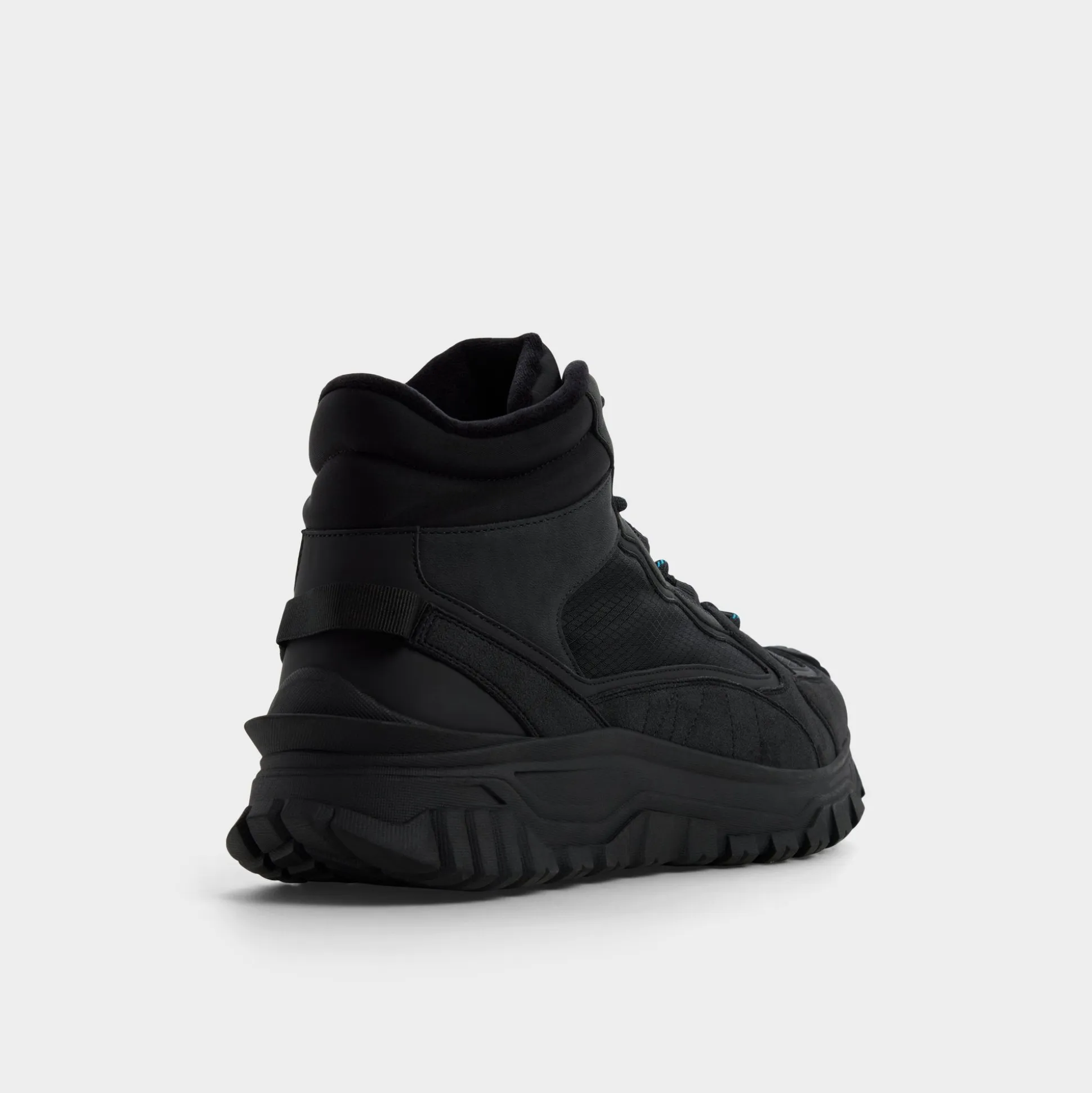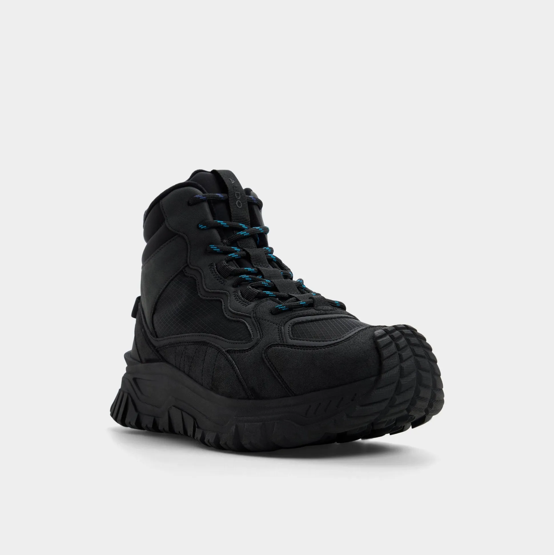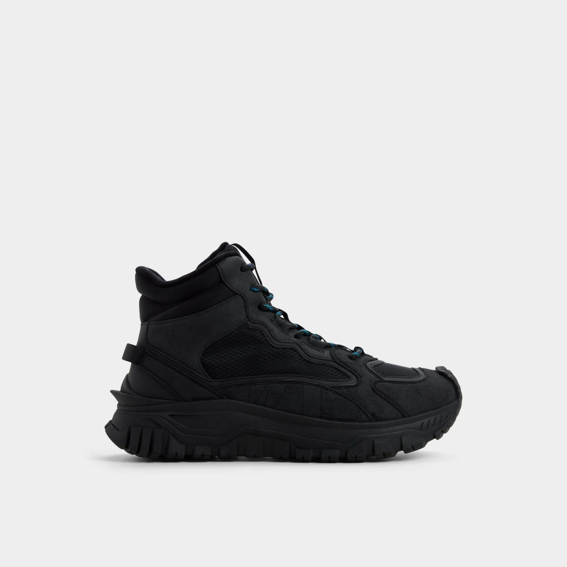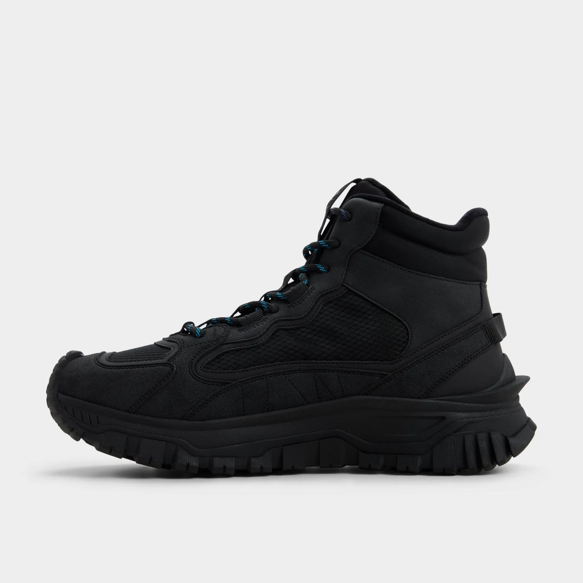 Angled rugged mesh wraps the black boot, delivering breathable comfort as a reliable outsole grips uneven terrain and every stride, while metal eyelets and hiking laces lock in dependable support. Team cargos for dawn trails or roll dark denim for post trek patios to anchor your day from hike to hangout.
