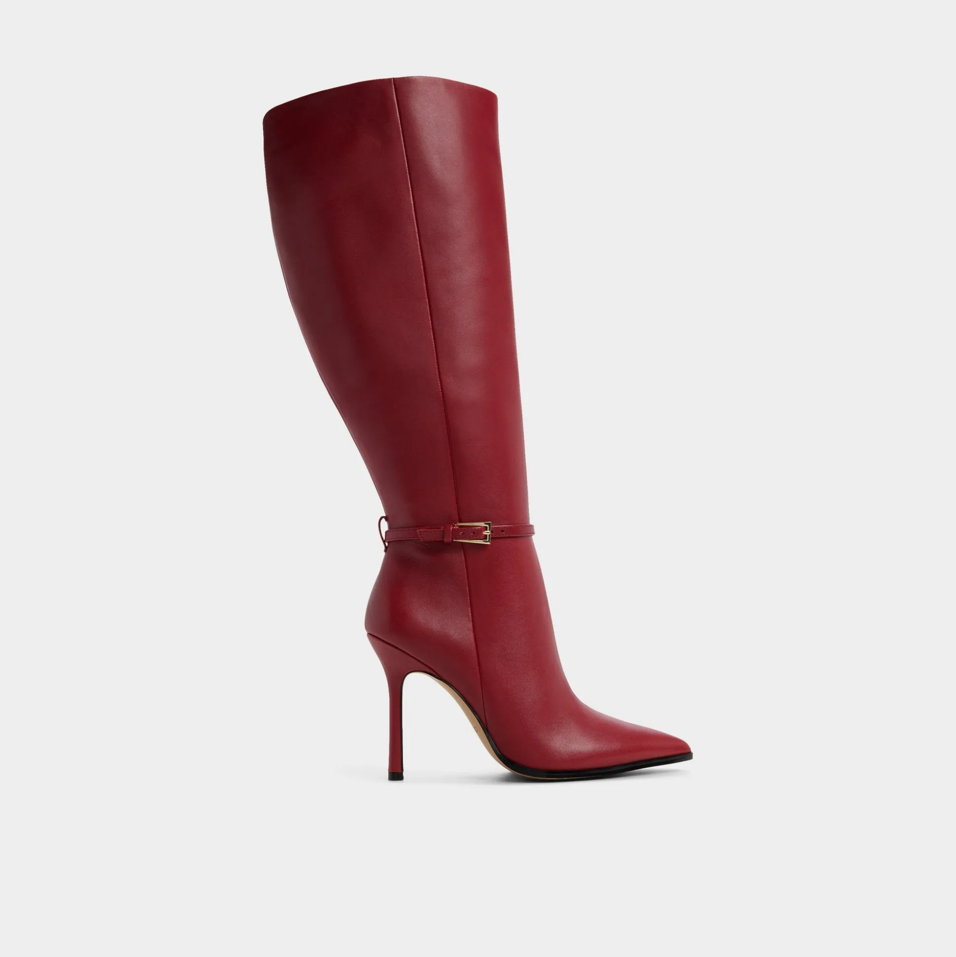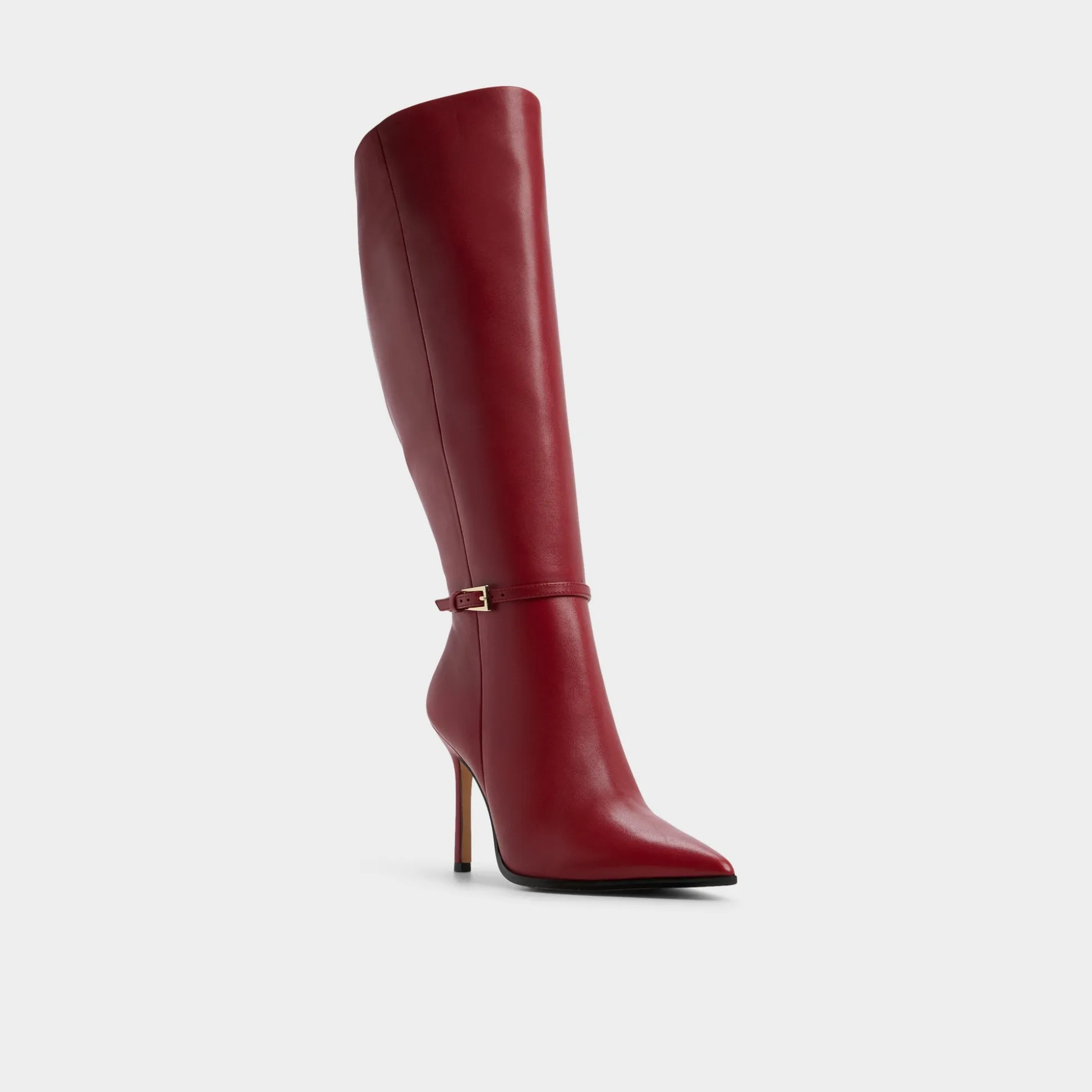 Make a striking impression with these daring knee-high boots in vibrant red. Featuring a sharp stiletto heel and pointed toe, they combine bold design with sleek zipper closure for ease. The buckle ornament adds an edgy flair, perfect for those ready to stand out with confidence and style.