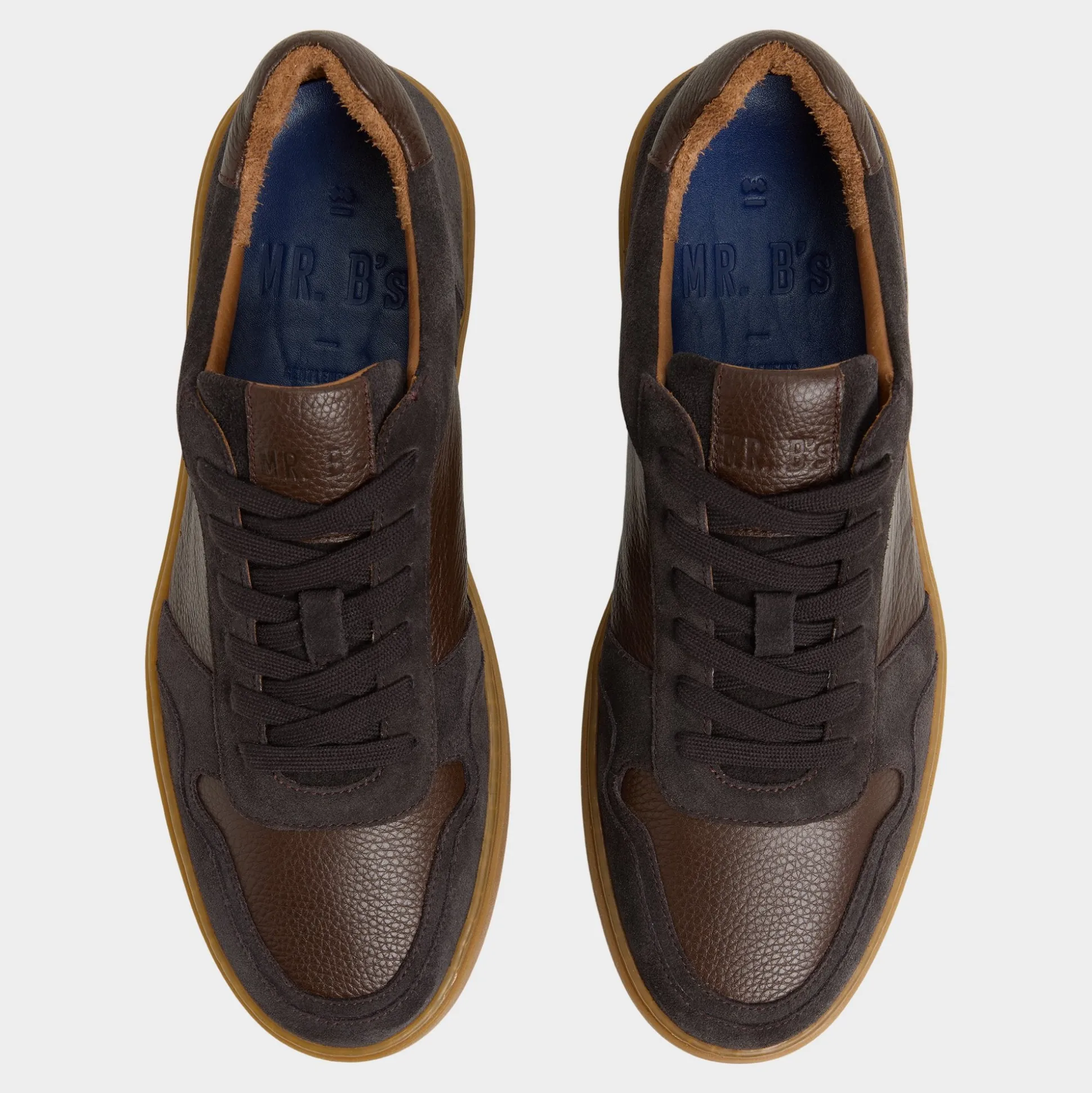Chocolate suede meets pebbled leather panels atop a gum cupsole in this low-top shoe, giving off retro vibes while the leather lining ensures comfort all week long. Pair them up with selvedge jeans for record-store hunts or tapered chinos at patio beers-the gum sole nails laid-back polish perfectly.