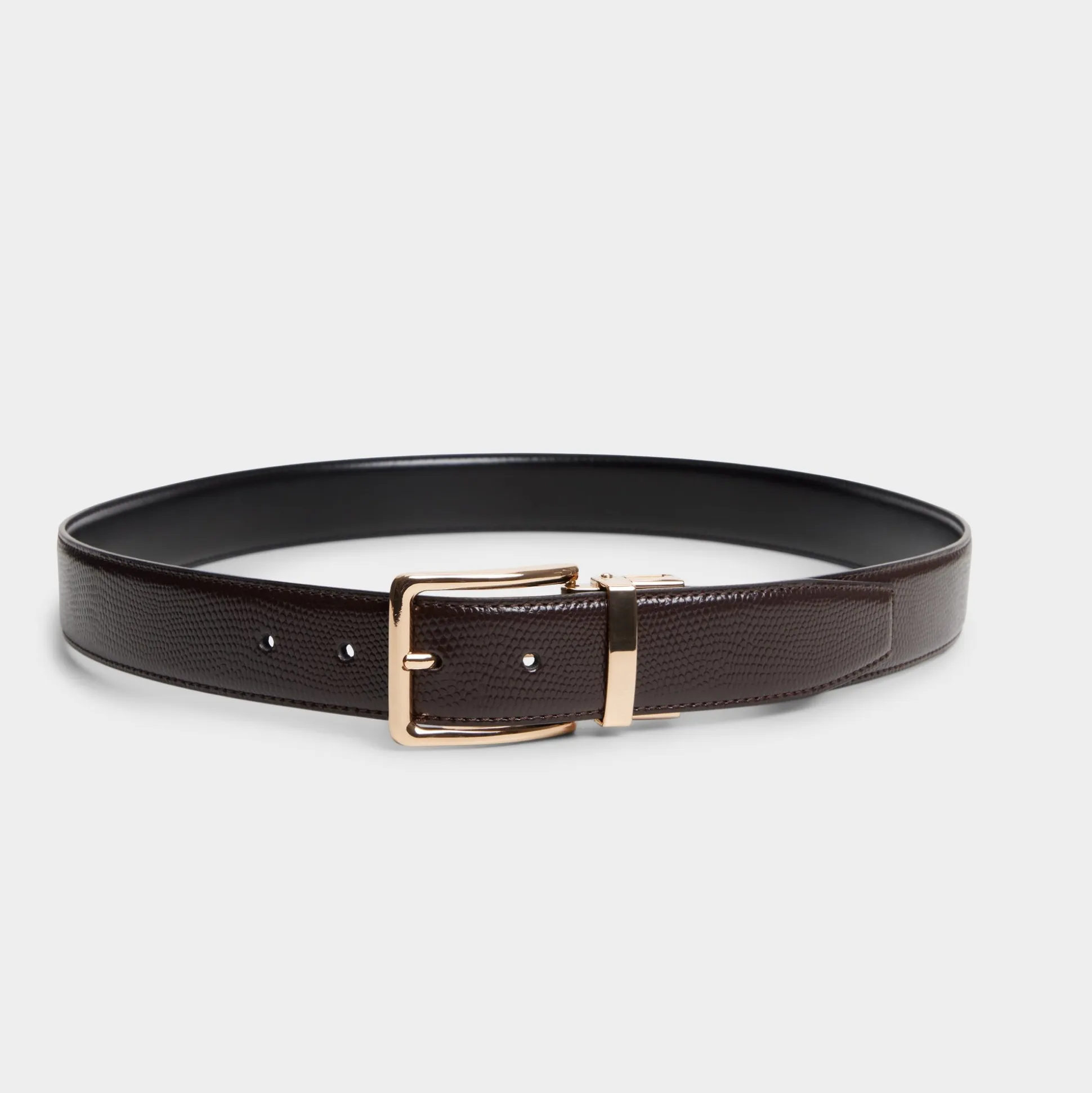 Textured brown leather wraps around the waist with a polished gold-tone buckle, perfect for every blazer and dress from office to after-hours. Layer it over a fitted shirt to cinch the silhouette, or top a sleek sheath for presentation days and after-work dinners.