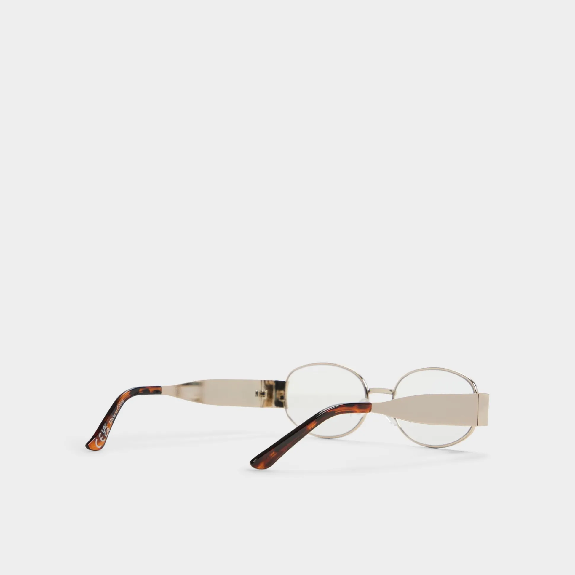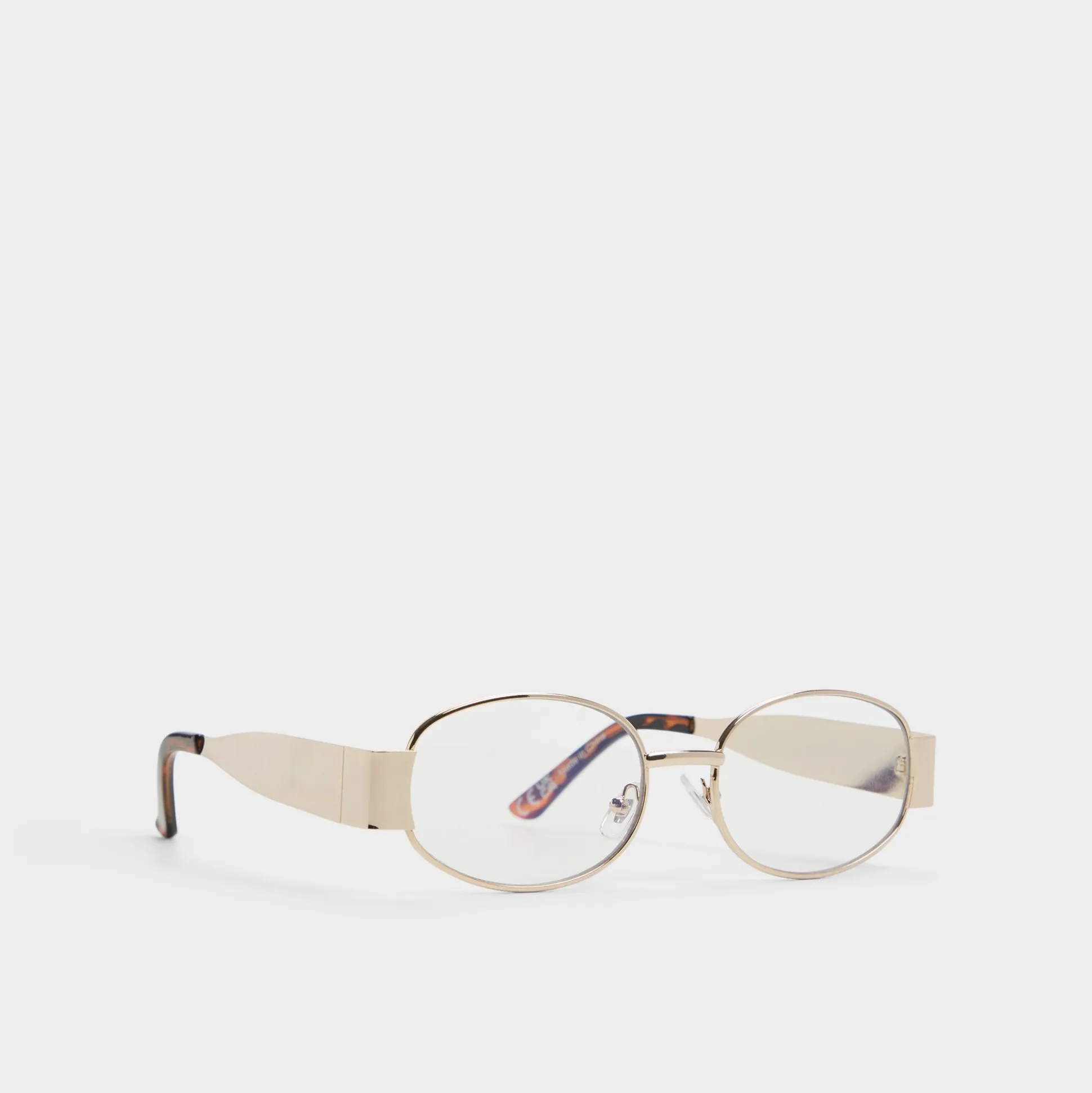 Gold-finished oval lenses float in a slim metal frame, catching sunlight with a sleek yet approachable look for city days and weekend getaways. Pair them with a linen shirt dress or wear them with a crossbody for a city stroll.