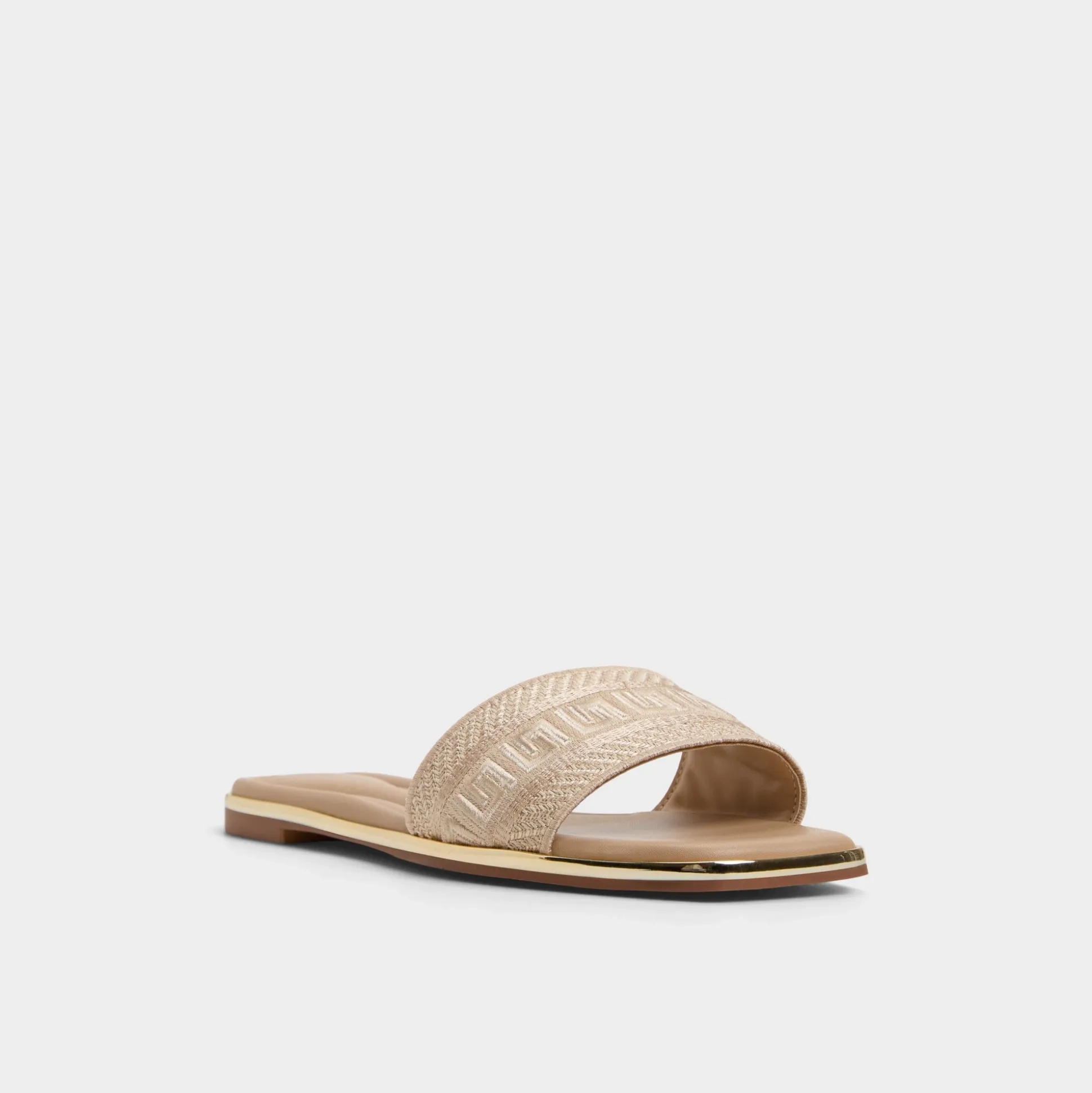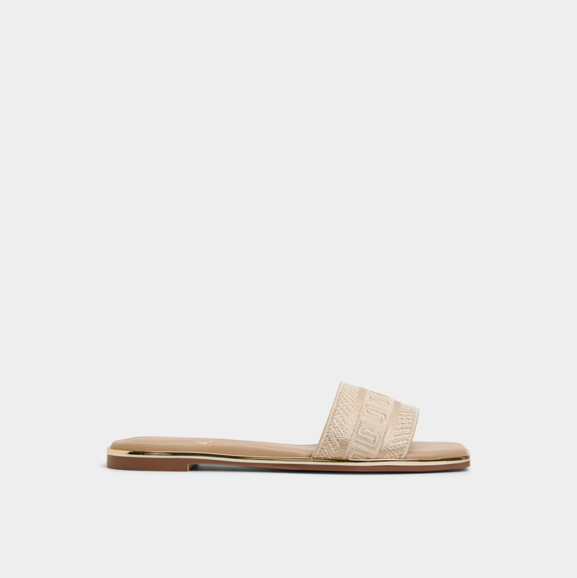 Sun-bleached textile slides ride the line between beachy ease and city polish, with woven straps and a subtly padded footbed that cushions every footstep and a whisper of brand pride that stays with you. Pair with linen joggers for market runs, or slip beneath a flowing midi for seaside dinners and sunset strolls.