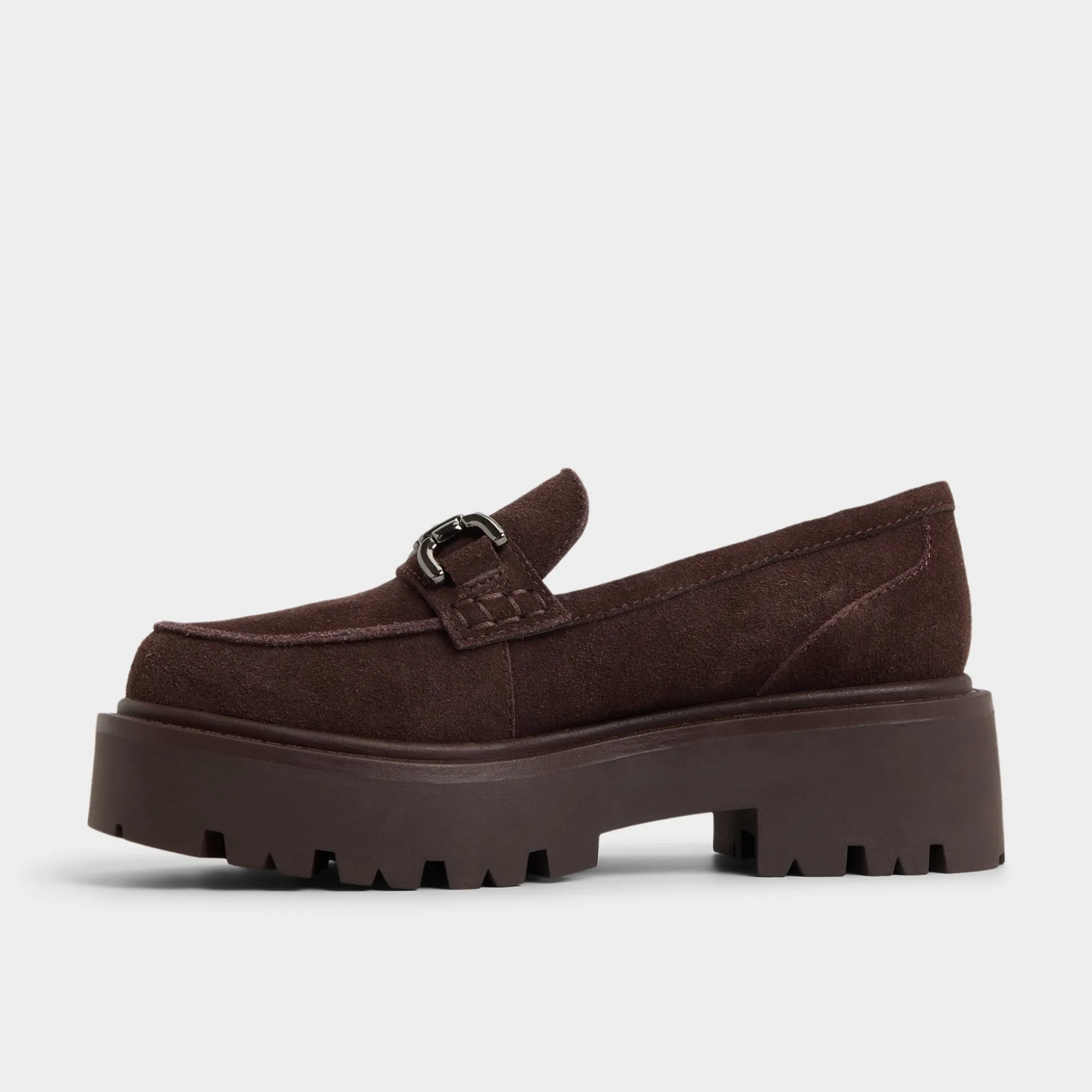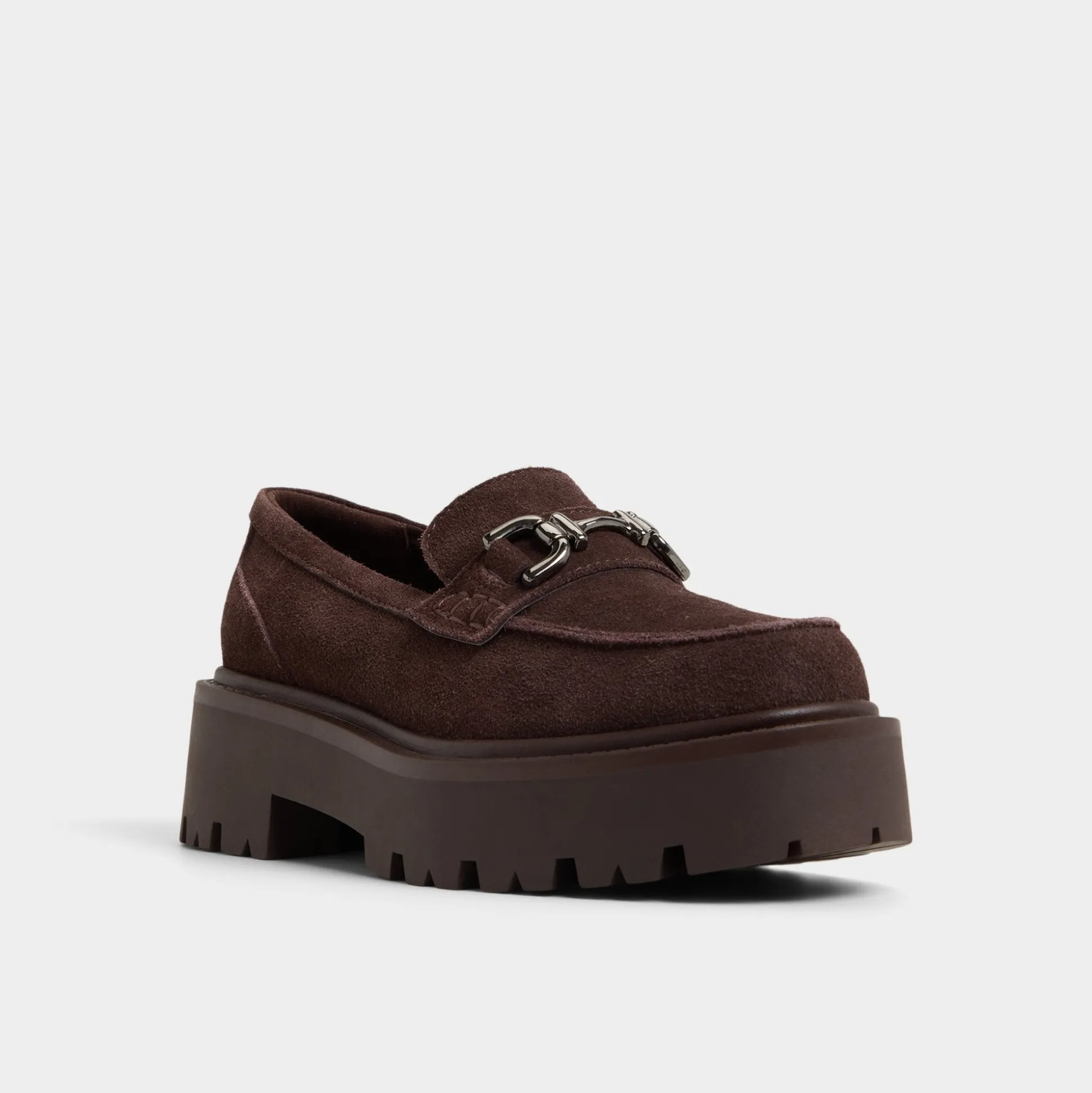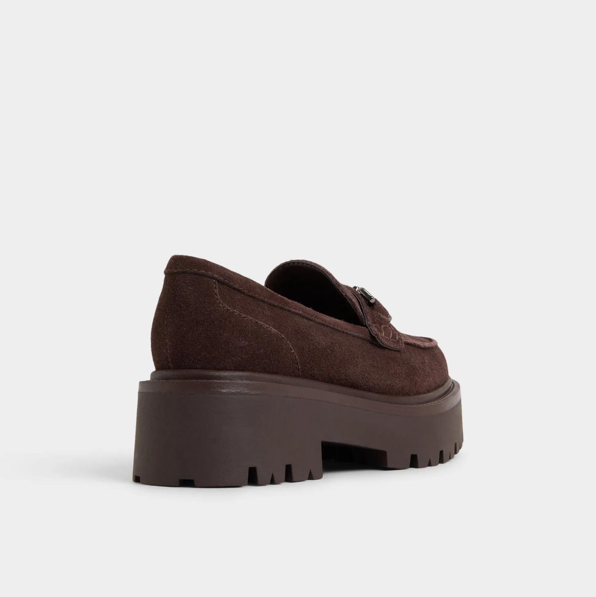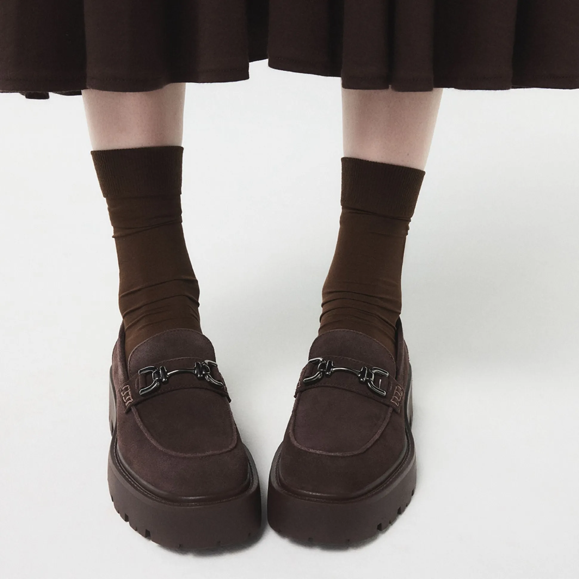 Plush coffee-brown suede meets a bold lug platform, giving the classic loafer extra altitude and that satisfyingly sure step you want when morning brainstorms blur into sidewalk detours, all while keeping underfoot calm. Ground pleated trousers for office catch-ups, or swap into cropped denim when record-store strolls call for easy swagger.
