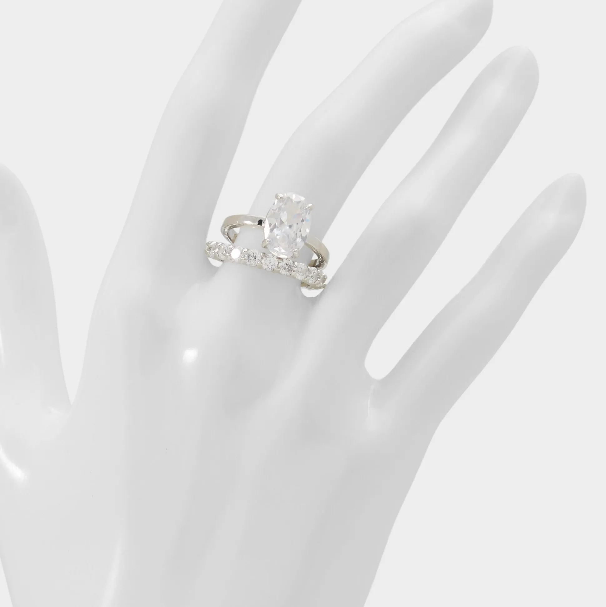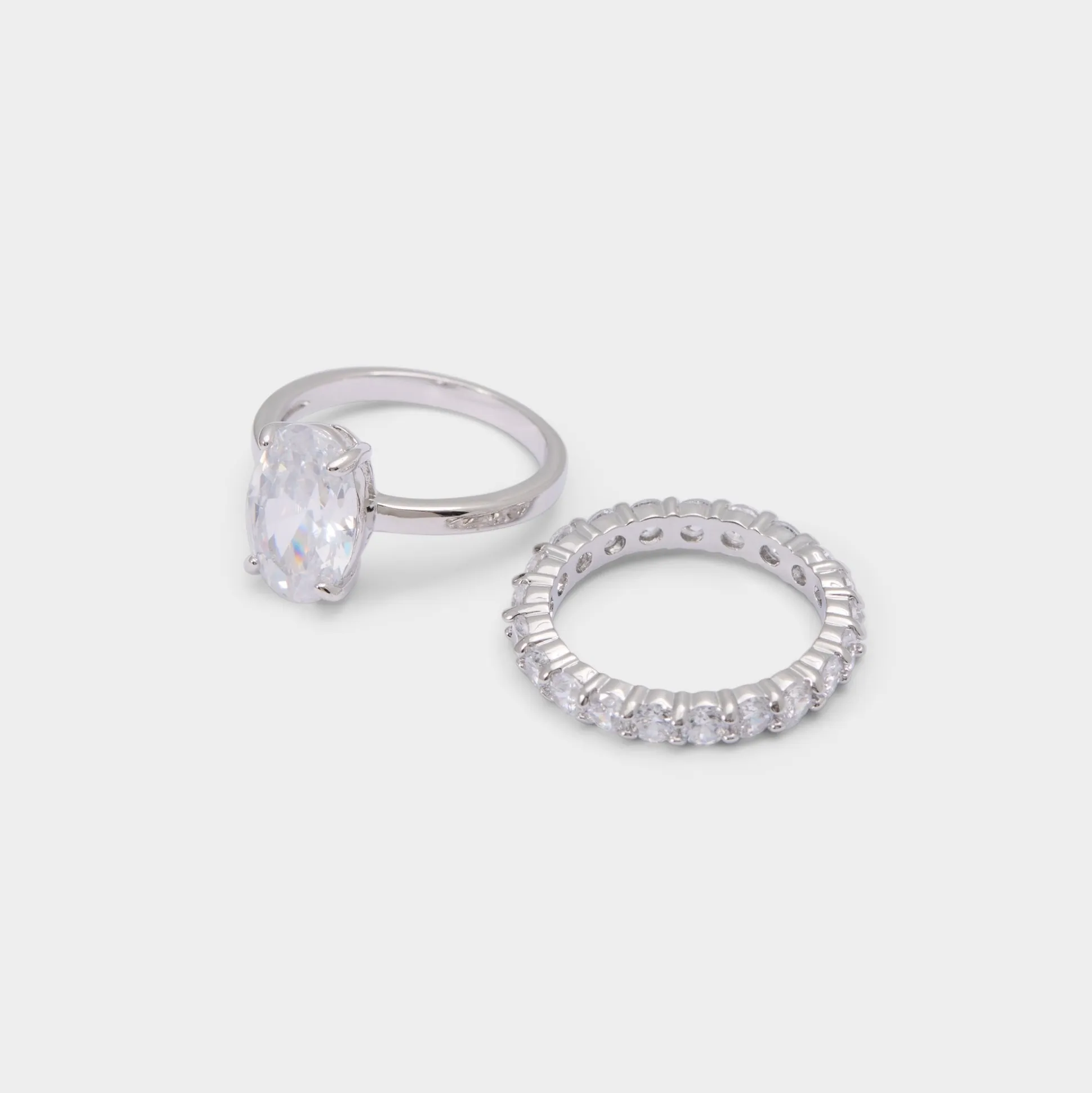 Glittering oval-cut zirconia centers crown these full eternity bands in a versatile two-piece set, catching city lights with every turn and inviting a closer look. Layer them with a blazer for cocktails or stack beside denim and a satin slip for city nights and effortless weekday polish.