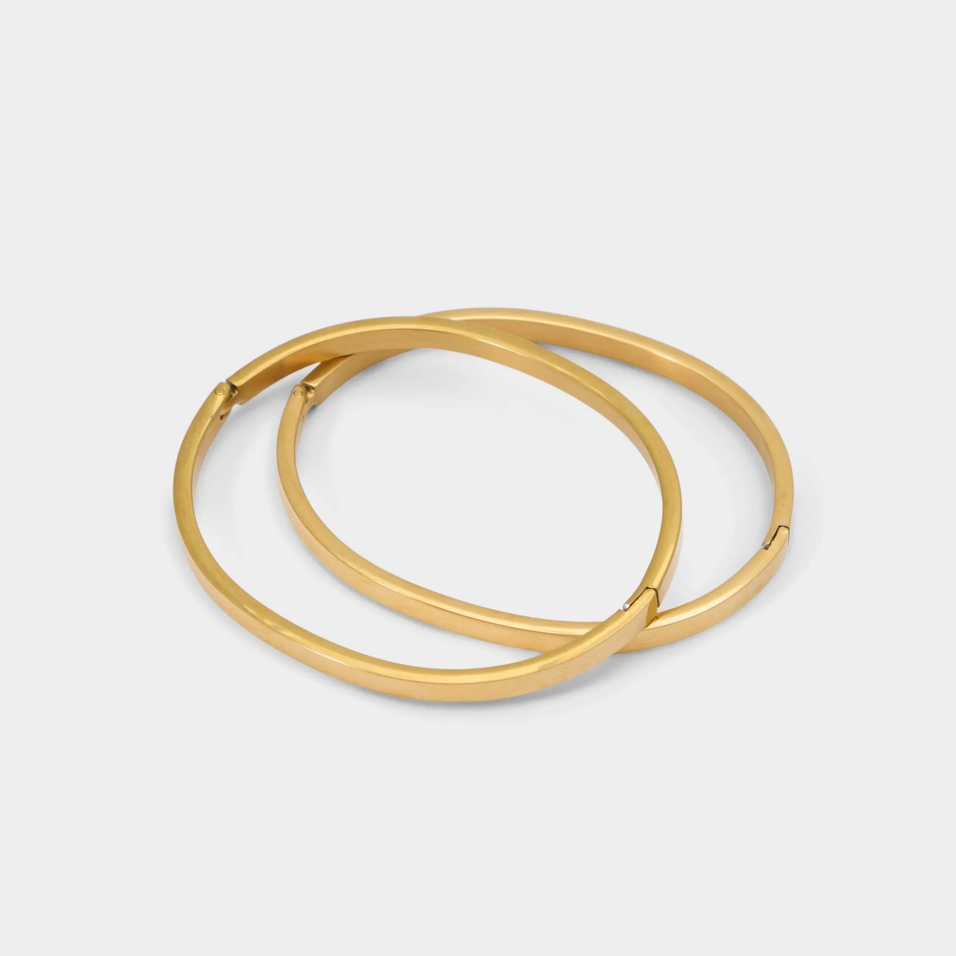 Knife-edge hoops glide around the lobe in loops, their gold-plated finish catching every flicker of light for a shine that travels with you. Stack them with huggies for coffee runs or let pairs stand out against slip dresses for dinners anywhere, anytime.