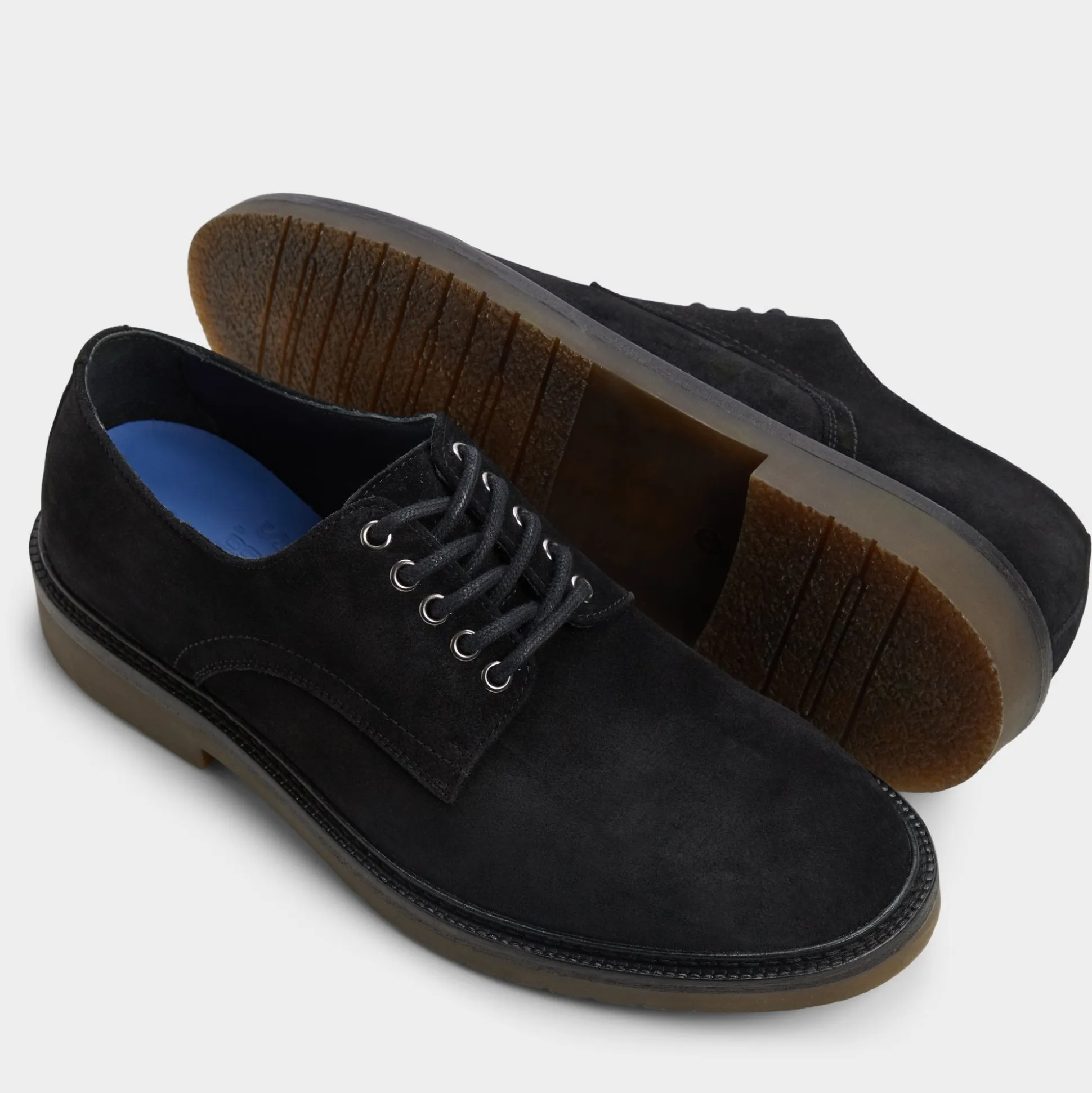 Midnight suede keeps this derby laid-back yet refined, while a lugged rubber sole adds grip so sidewalks feel steady instead of stressful. Anchor charcoal chinos for client coffees or roll with raw denim on Saturday gigs-the matte finish fits anywhere.