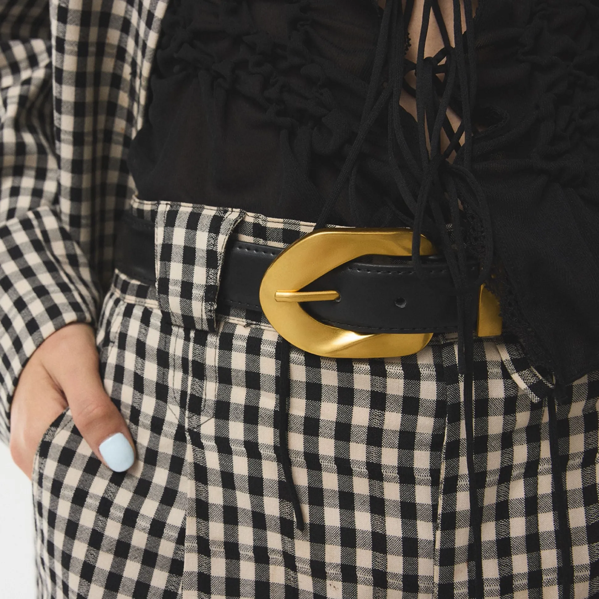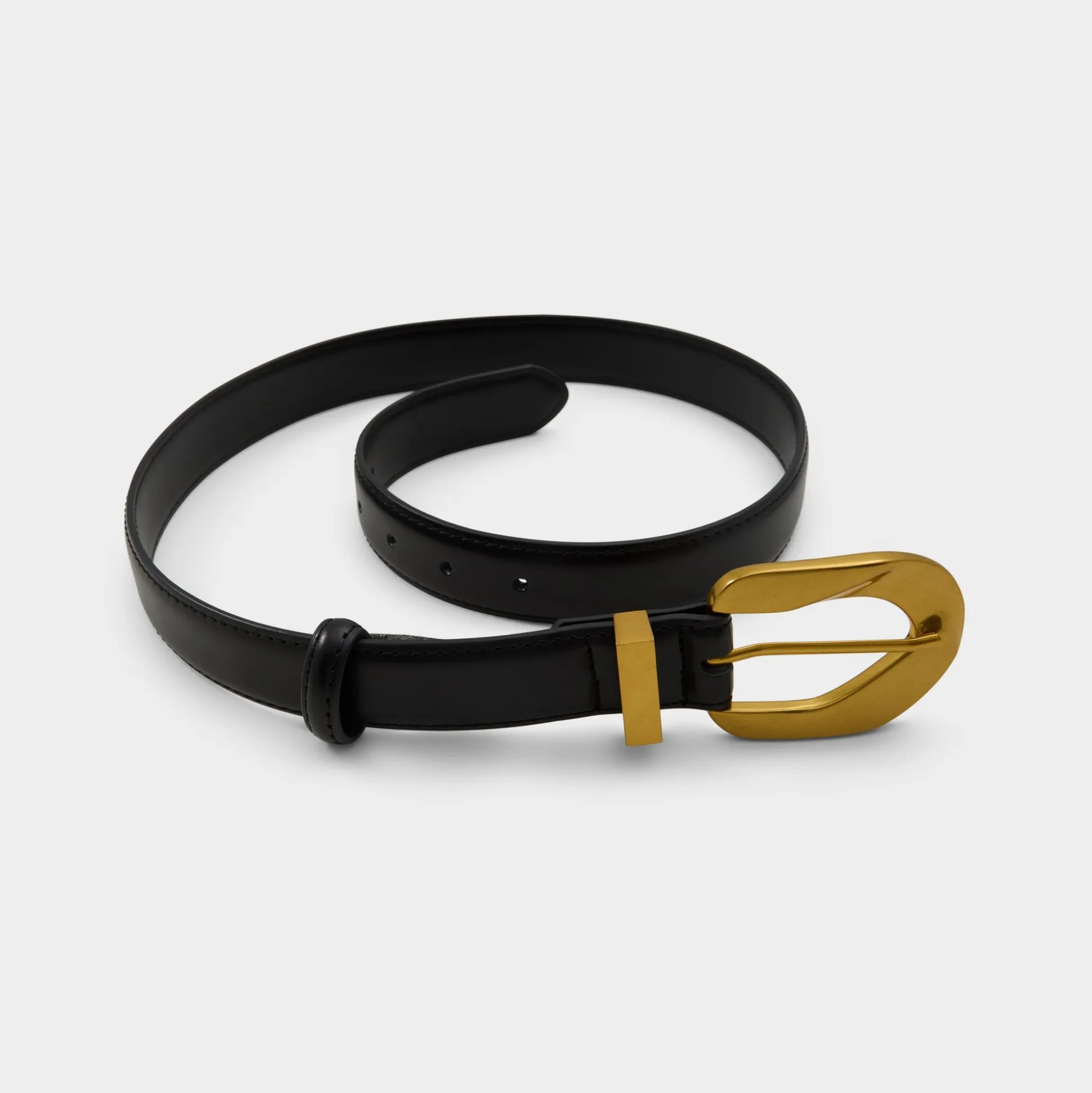 Sculpted like metal, the oversized buckle turns the leather strap into an instant focal point, with stitching keeping every detail polished. Cinch it around high-waist jeans and blazers for coffee meetings or frame a slip dress at rooftop cocktails as that buckle steals just enough spotlight.