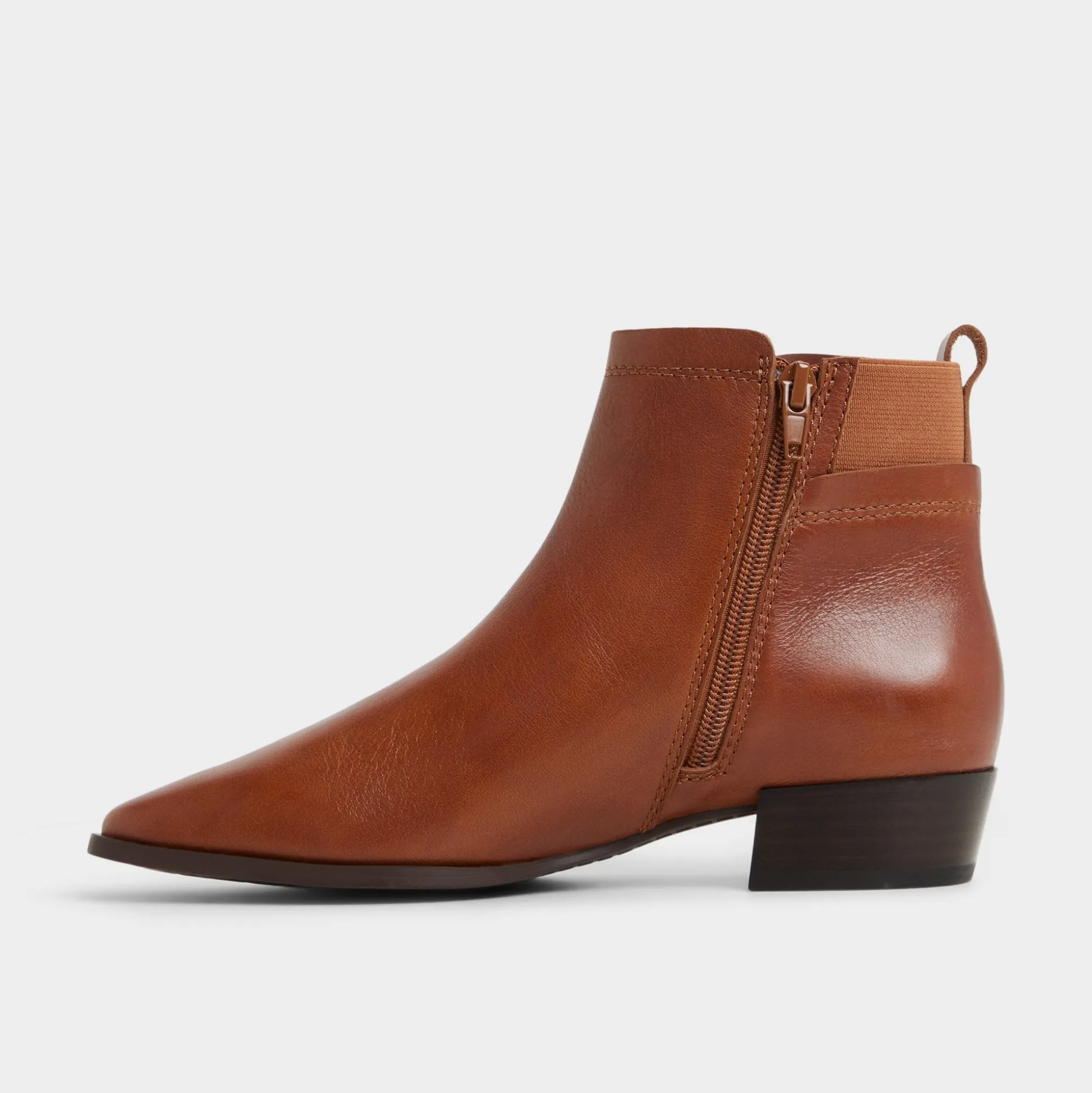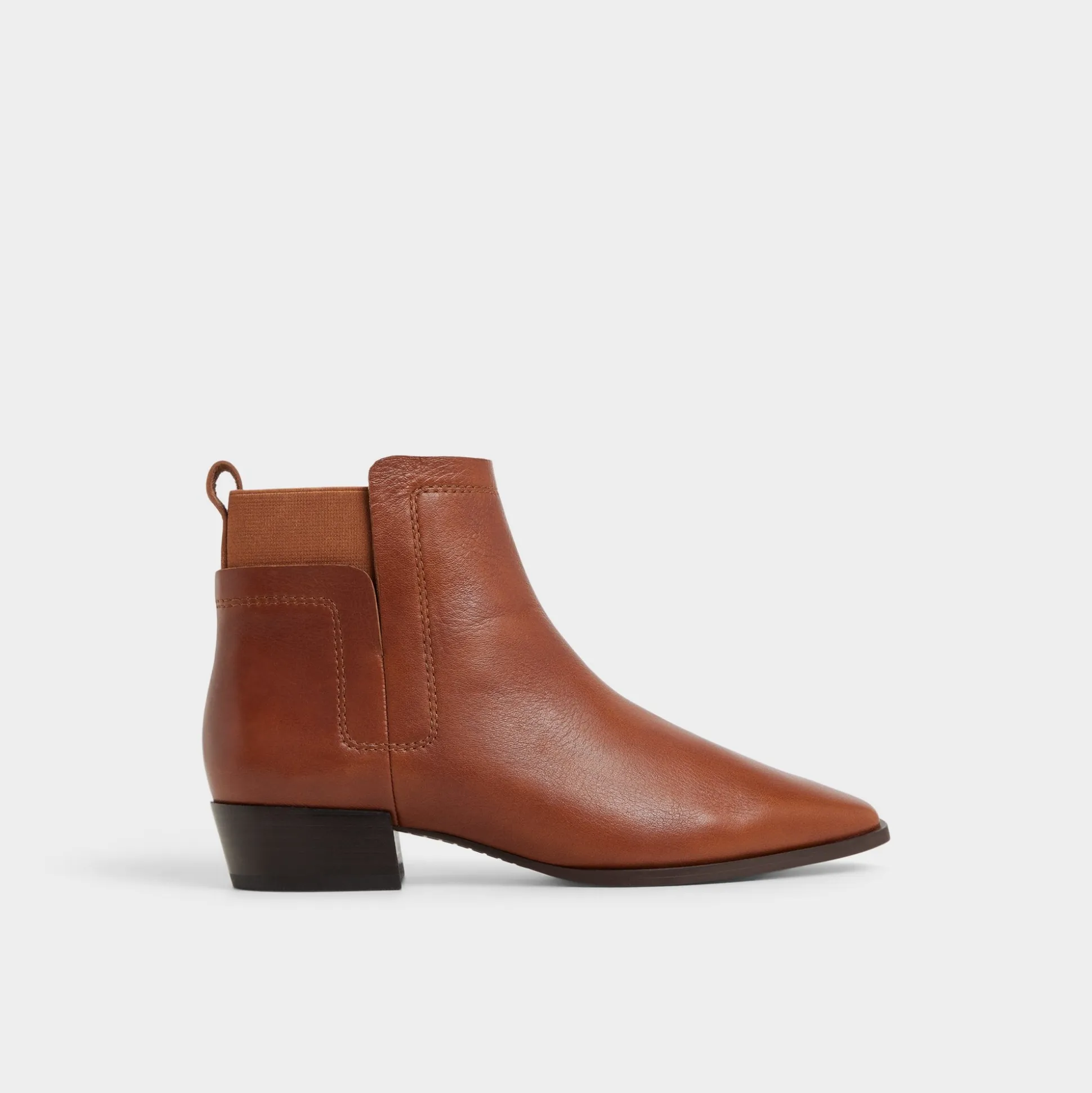 Butter-soft leather shapes a modern Chelsea silhouette, featuring a sharp pointy toe and a low block heel that gives just the right lift for easy, all-day wear. Pair with tailored trousers for presentation days, or swap in distressed denim and a felt fedora when autumn markets call.