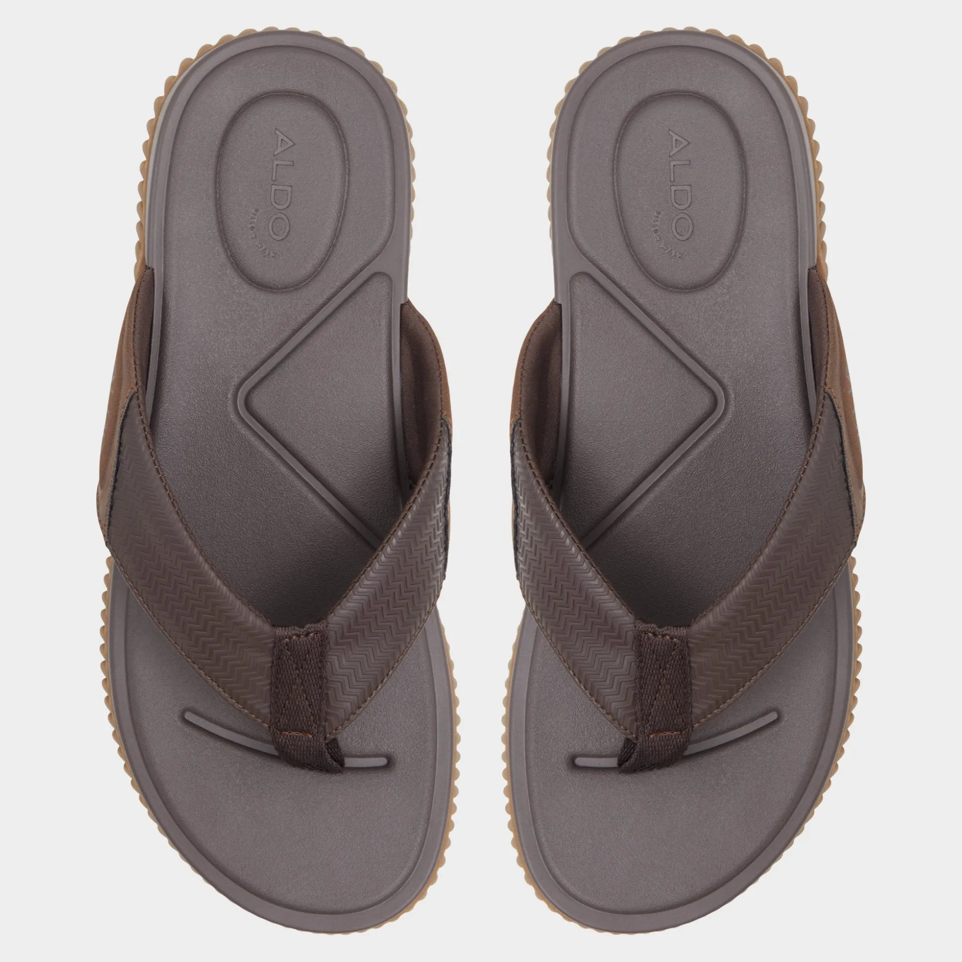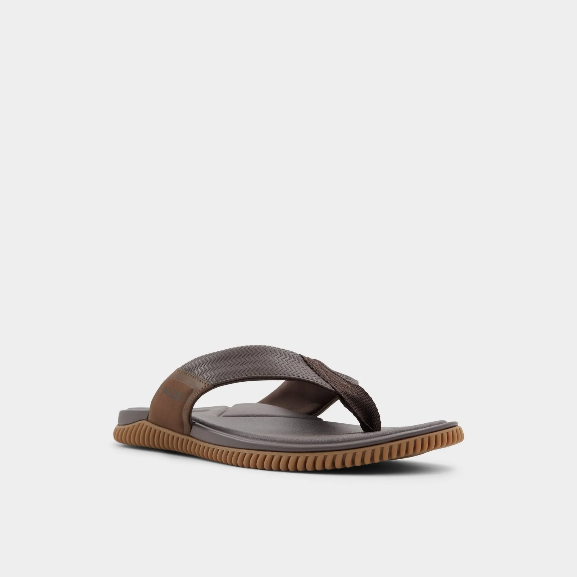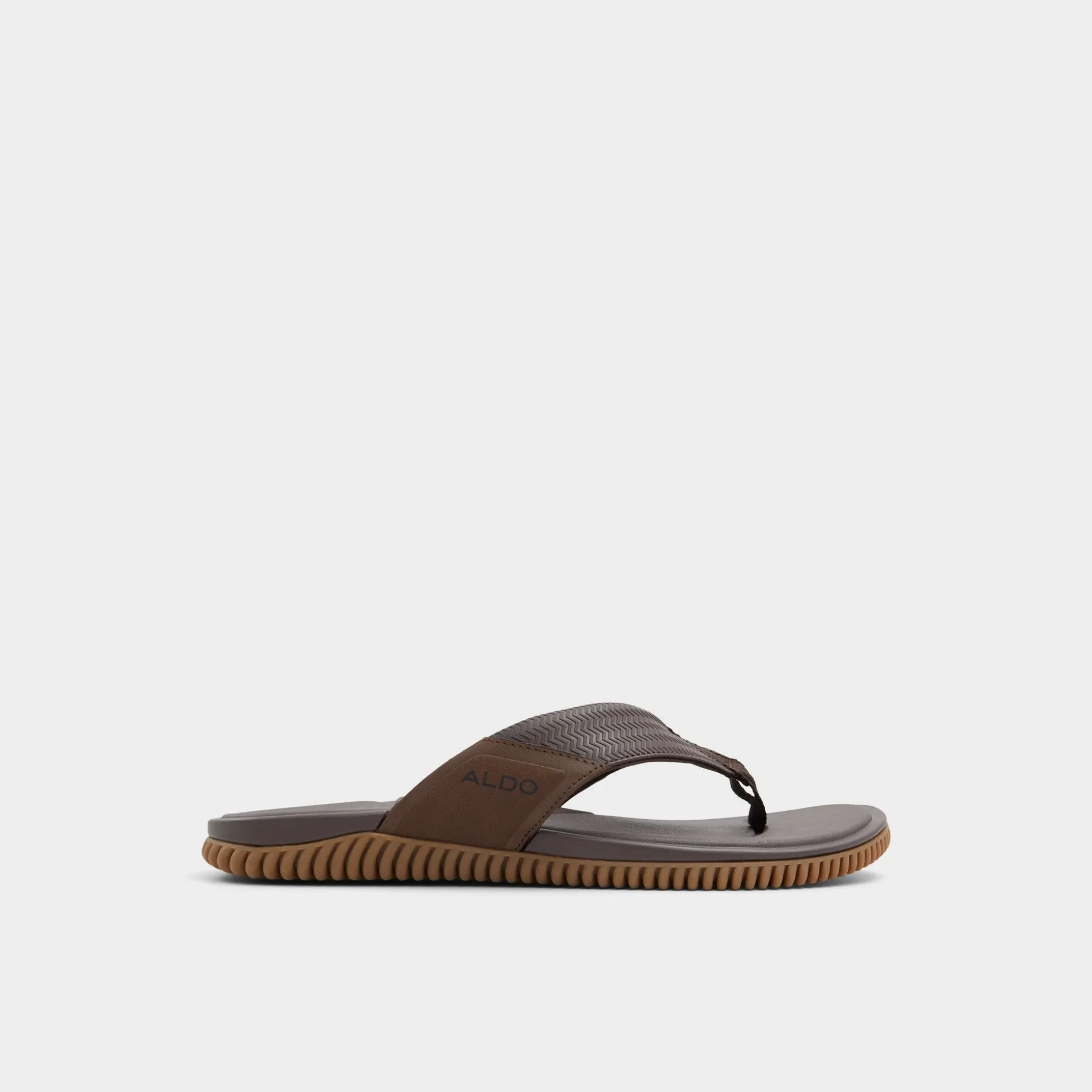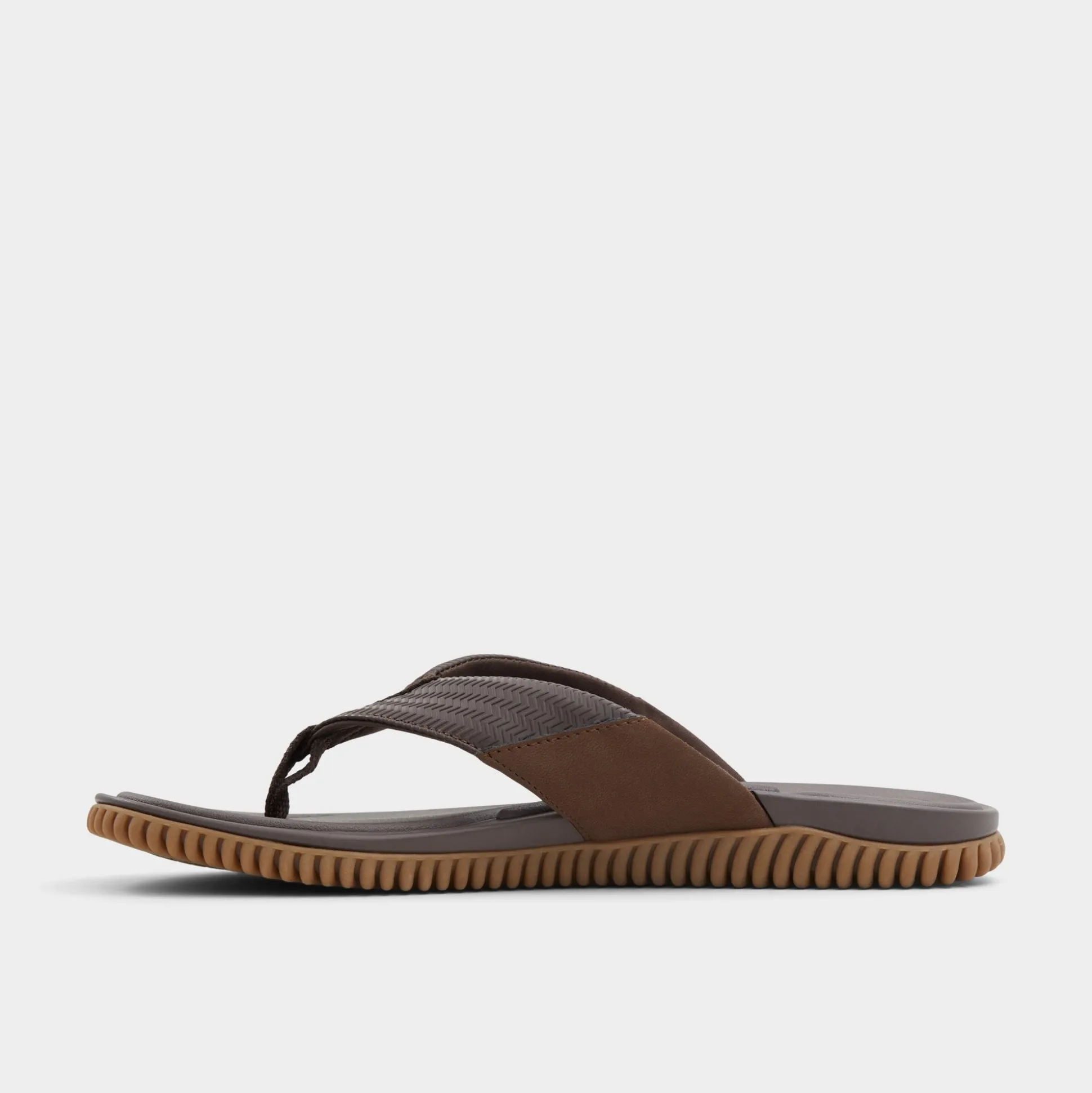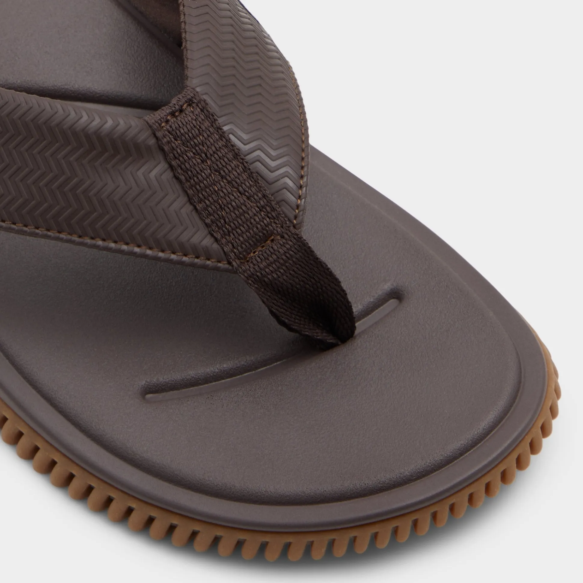 A chevron-textured brown strap combines with a cushy synthetic footbed, while the flexible wave-grip rubber sole prevents slips during shoreline detours or poolside sprints for fresh drinks. Pair with swim trunks for beach volleyball or anchor rolled linen pants at sunset barbecues-barefoot ease, grown-up look.