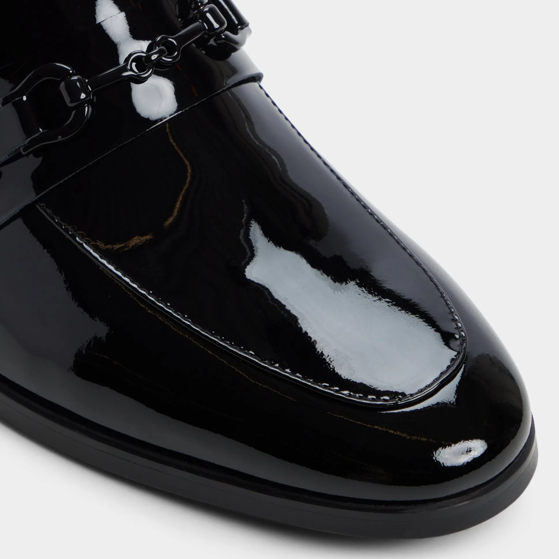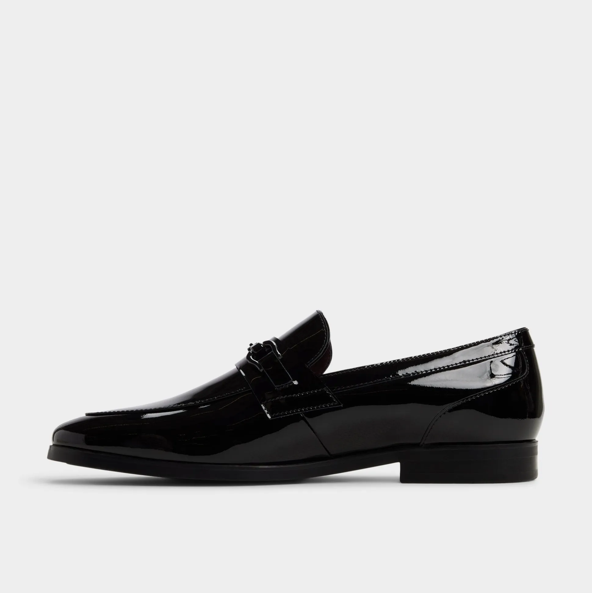 High-shine patent leather meets a bite of metal hardware, giving this loafer a glow that stands out, while a low stacked heel and smooth leather lining keep every stride easy from day-to-night. Pair it with charcoal tailoring for gala nights or slip it beneath indigo denim for rooftop dates—two looks, one polished finish.