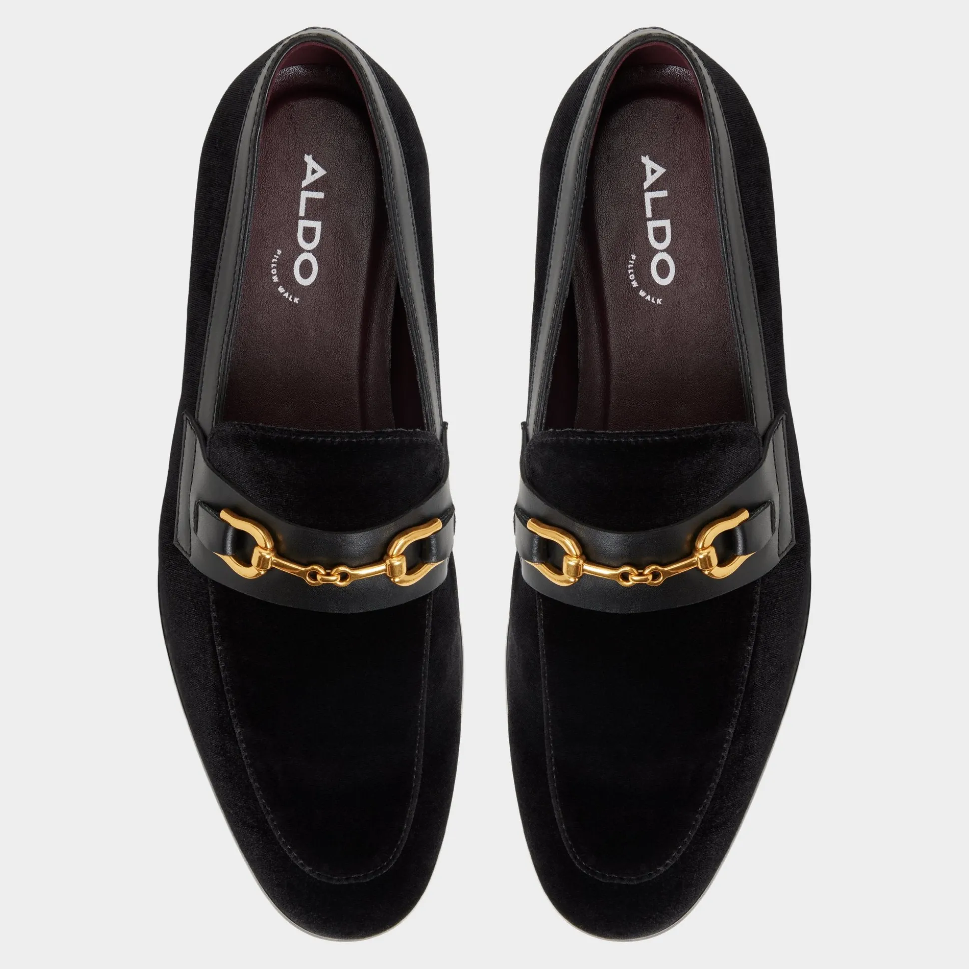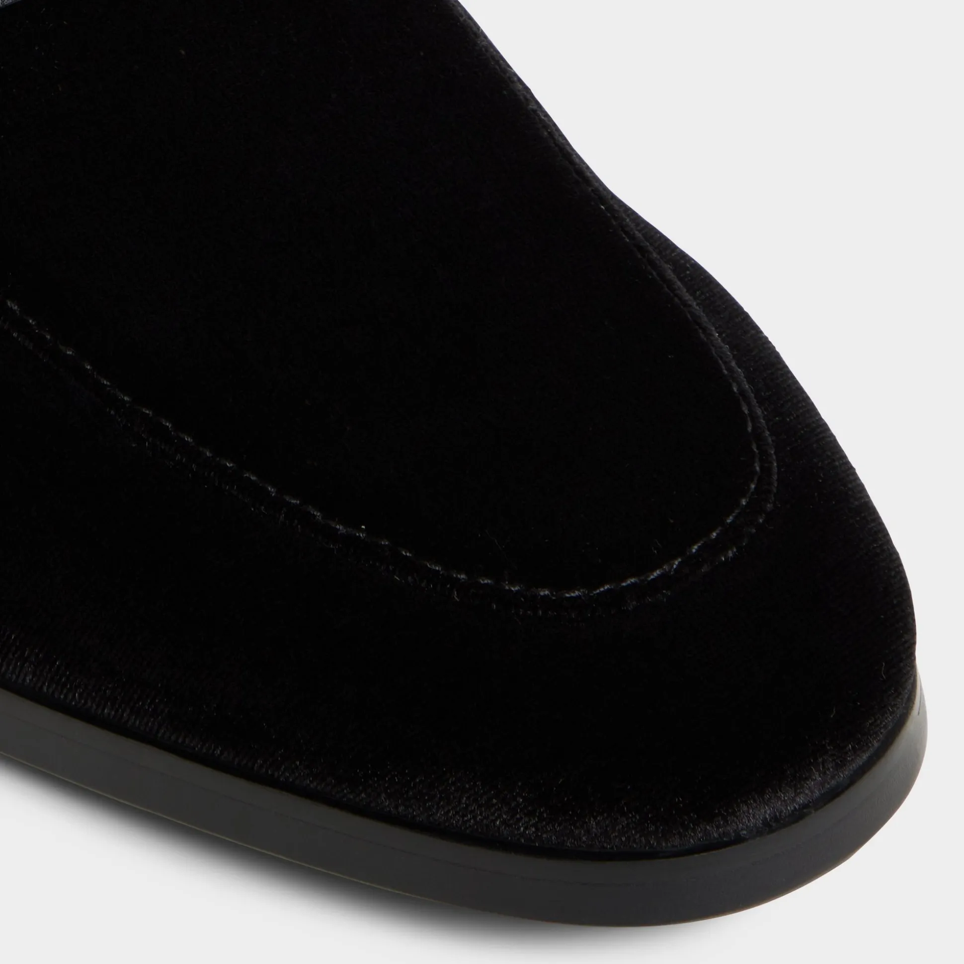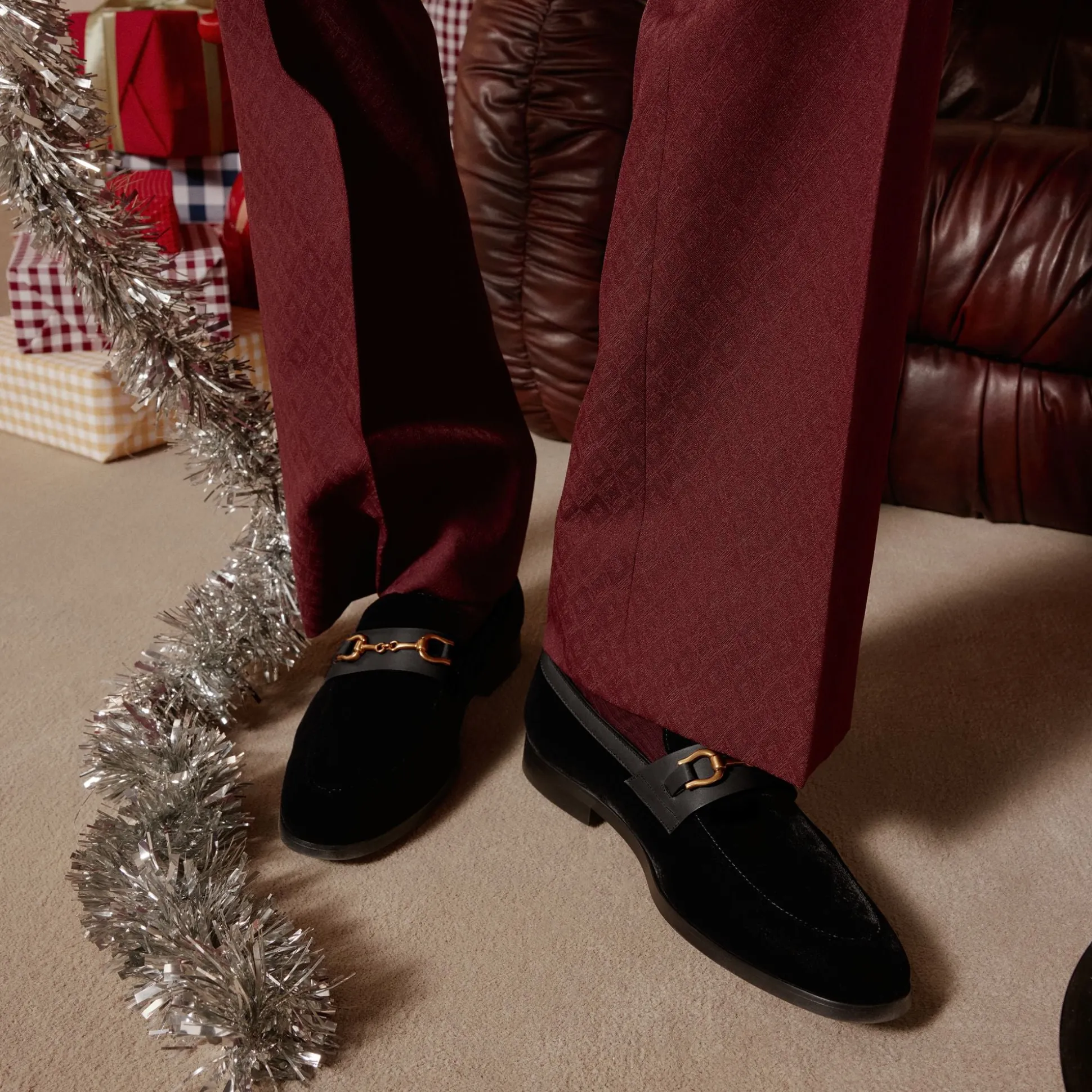 Midnight velvet shapes this loafer, a clean silhouette with a buckle that brings polish to every stride, ready to move from meetings to after-hours mingling. Pair it with a suit for client dinners, or roll with denim and a blazer for evenings, then let the finish do the talking at after-parties.