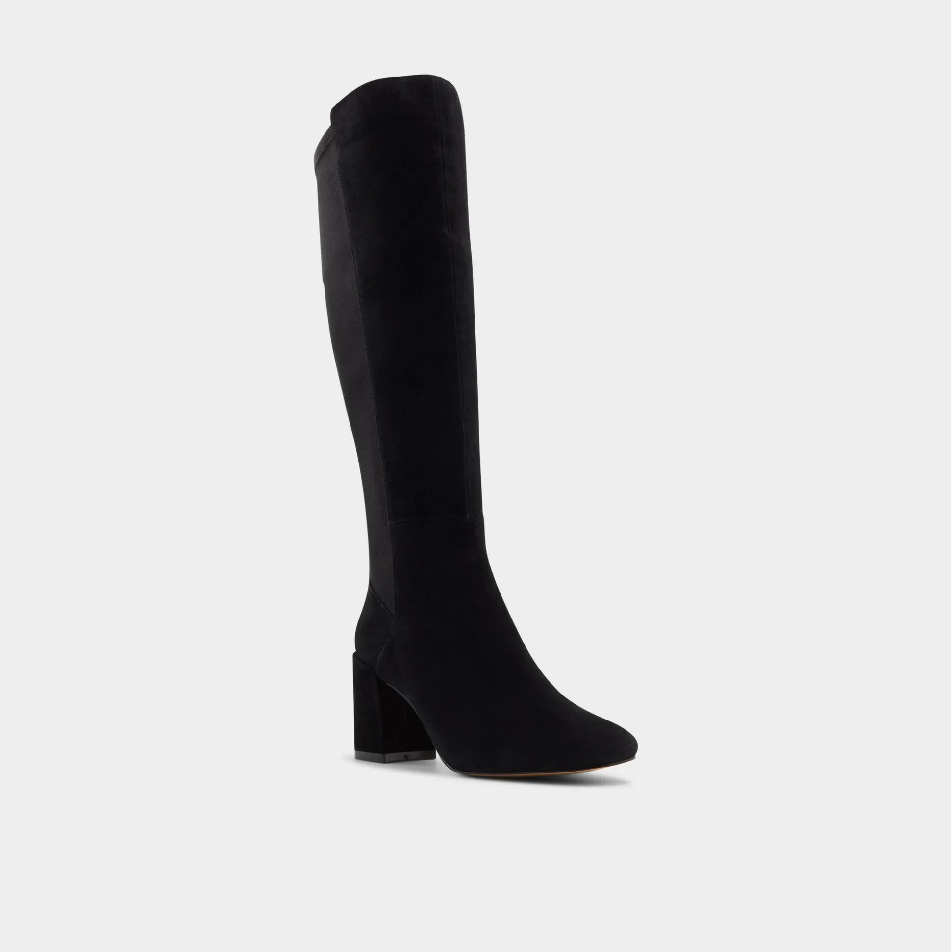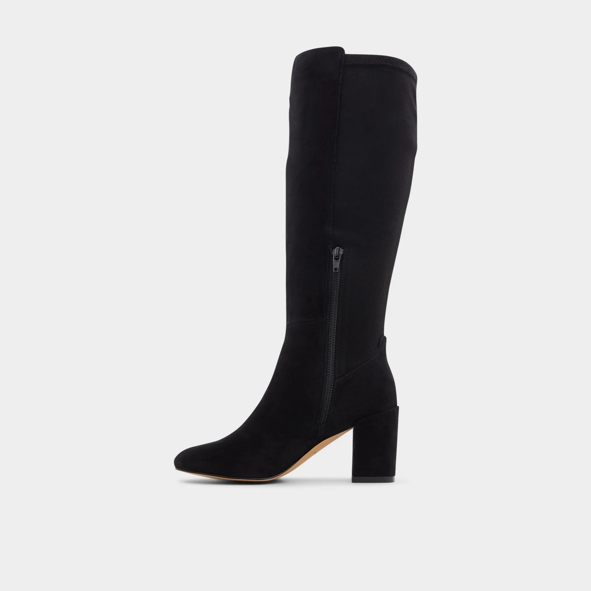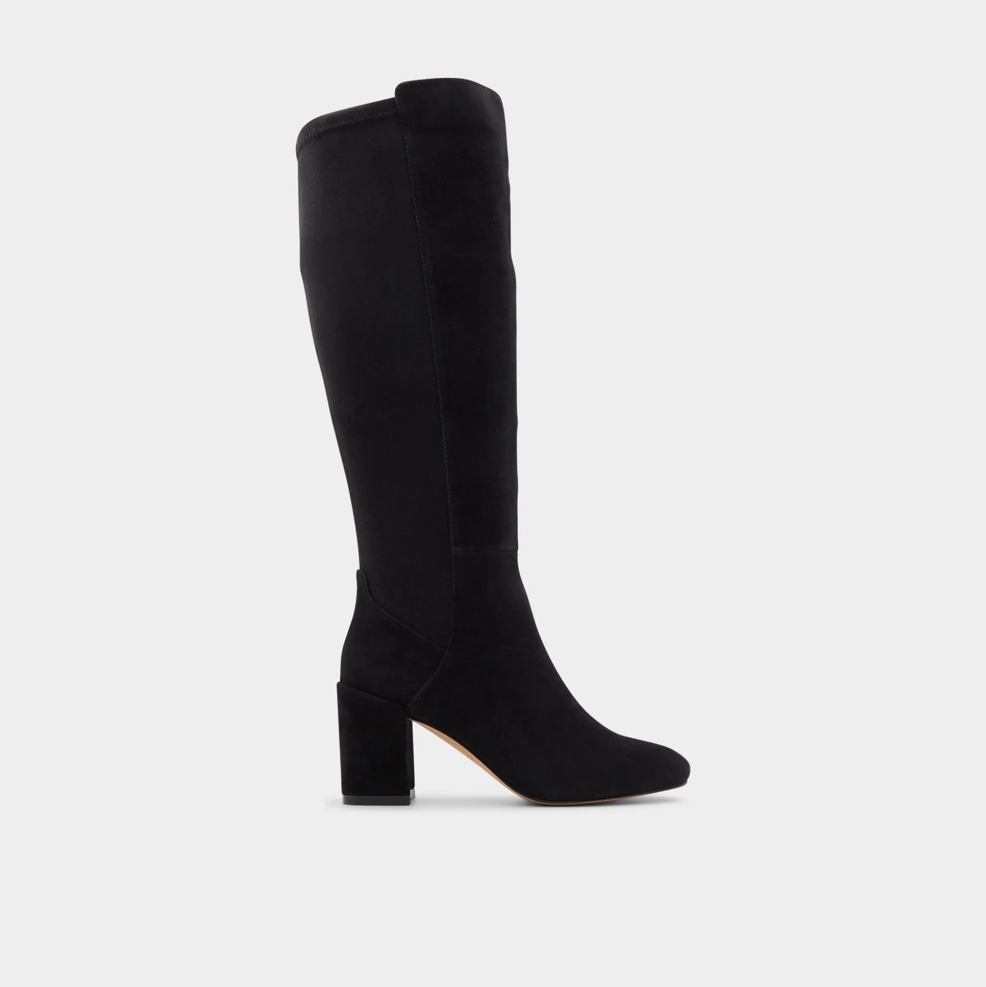 Supple black suede carves a knee-high silhouette with a sturdy block heel that lifts over subway grates without wobble, turning every city moment into a poised stride. Pair with a swishy midi for city dates, or ground it with a leather mini for late-night concerts.