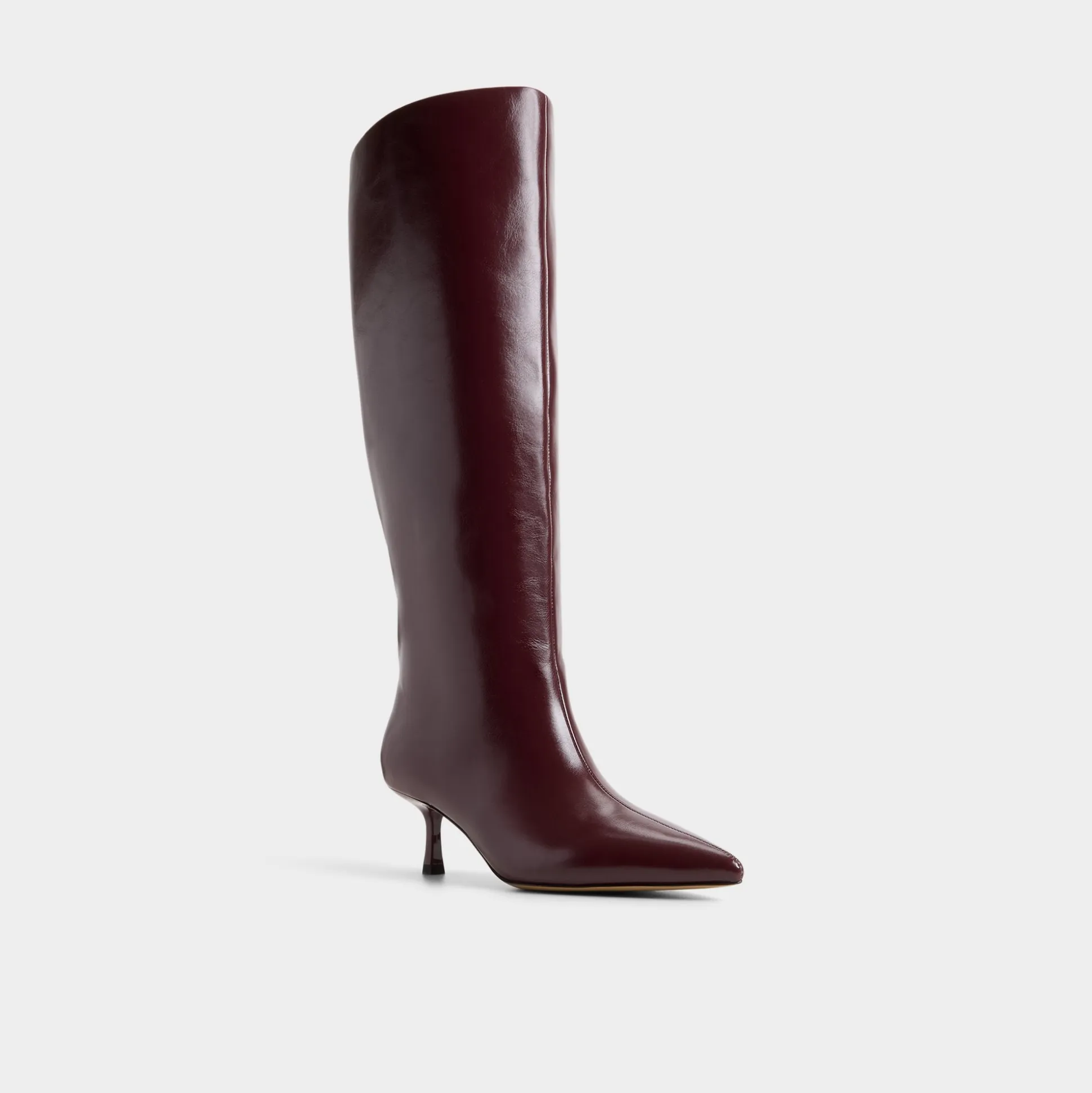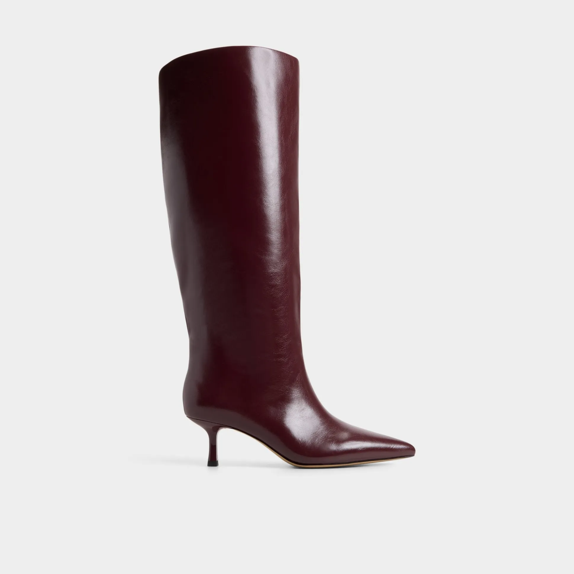 Step into bold style with the Selora-wc knee-high boot in striking burgundy. This trendy tube boot features a pointy toe and mid-heel for a sleek silhouette, while its wide calf and slip-on design offer effortless confidence and comfort. Make every stride unapologetically daring.