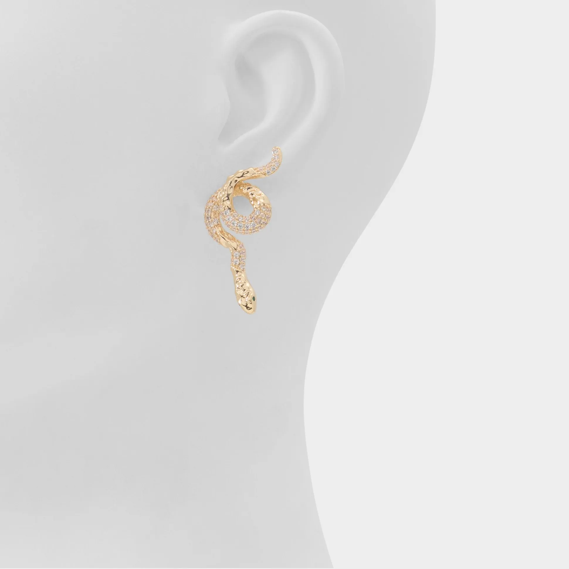 Snake studs flicker with pave crystals along gilded curves, emerald-tipped eyes, and a silhouette that brings mythic edge to every head turn. Frame a ponytail beside a jacket for nights out, stack hoops with a slip for drinks and tunes.