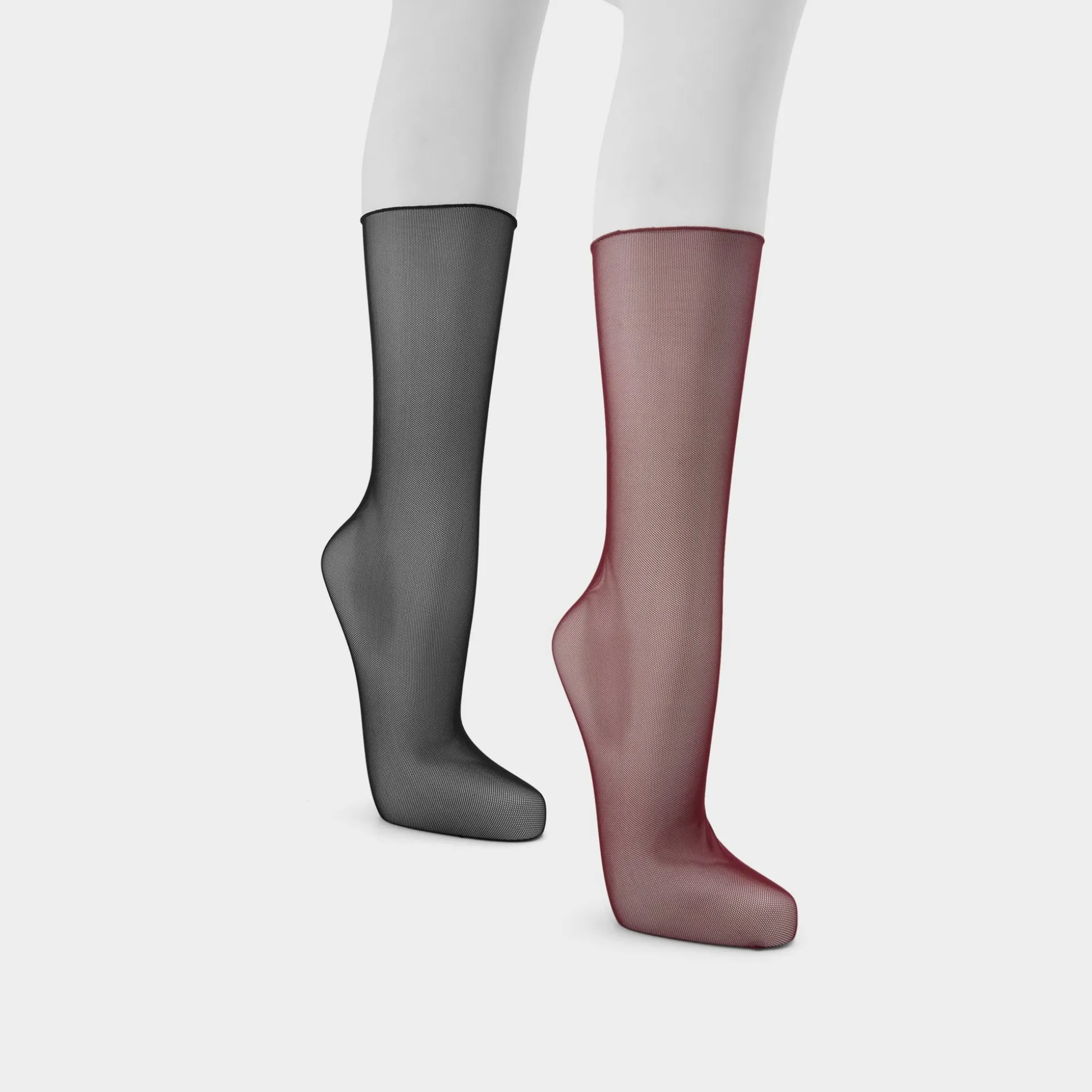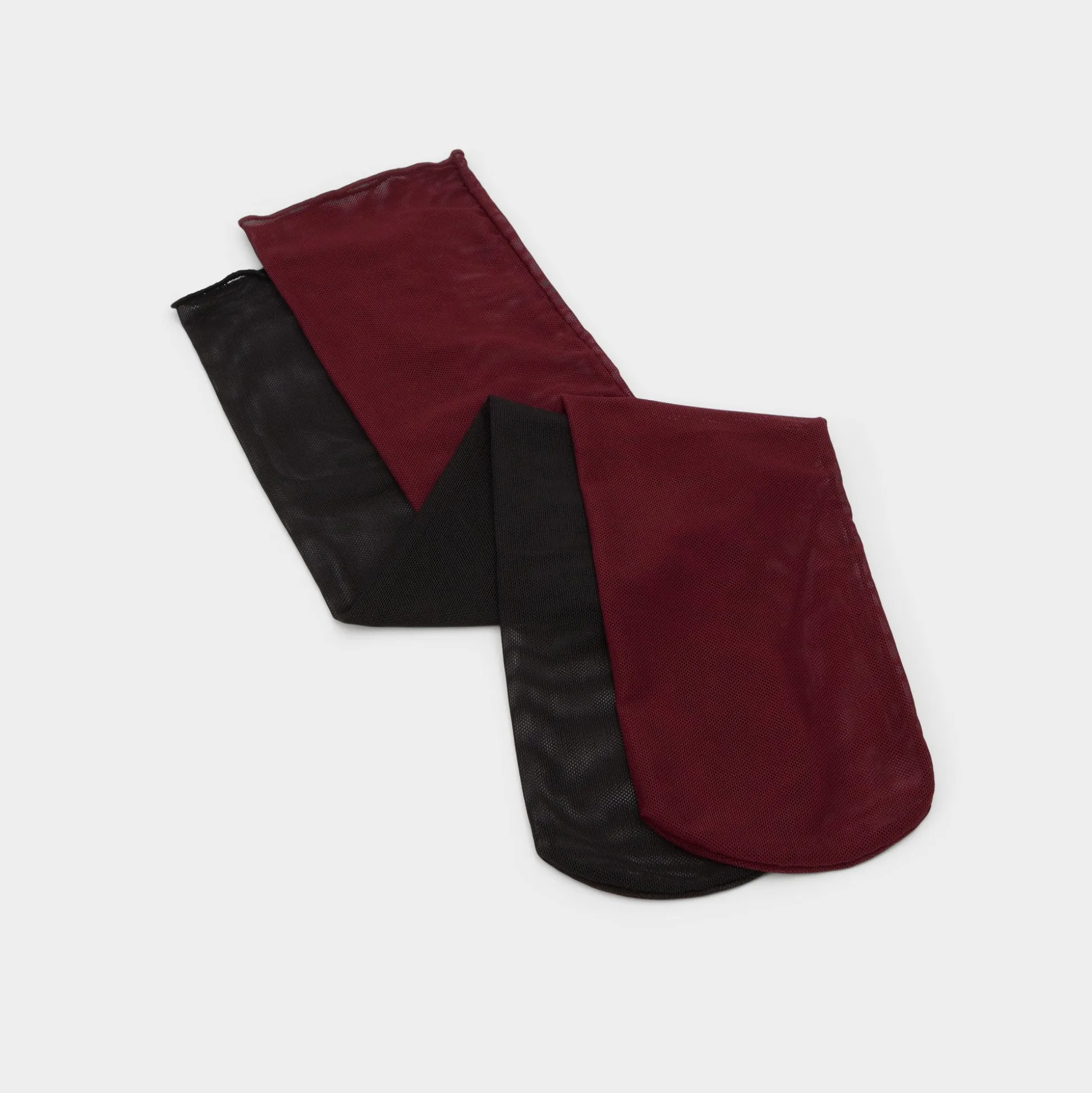 Two-tone tights glide on as a duo of silky sheer fabric in wine and noir, offering stretch from morning to night. Layer this pair under a slip dress for rooftop dates or cinch a blazer-shorts set for desk-to-dance flair, to carry you from coffee runs to after-hours.