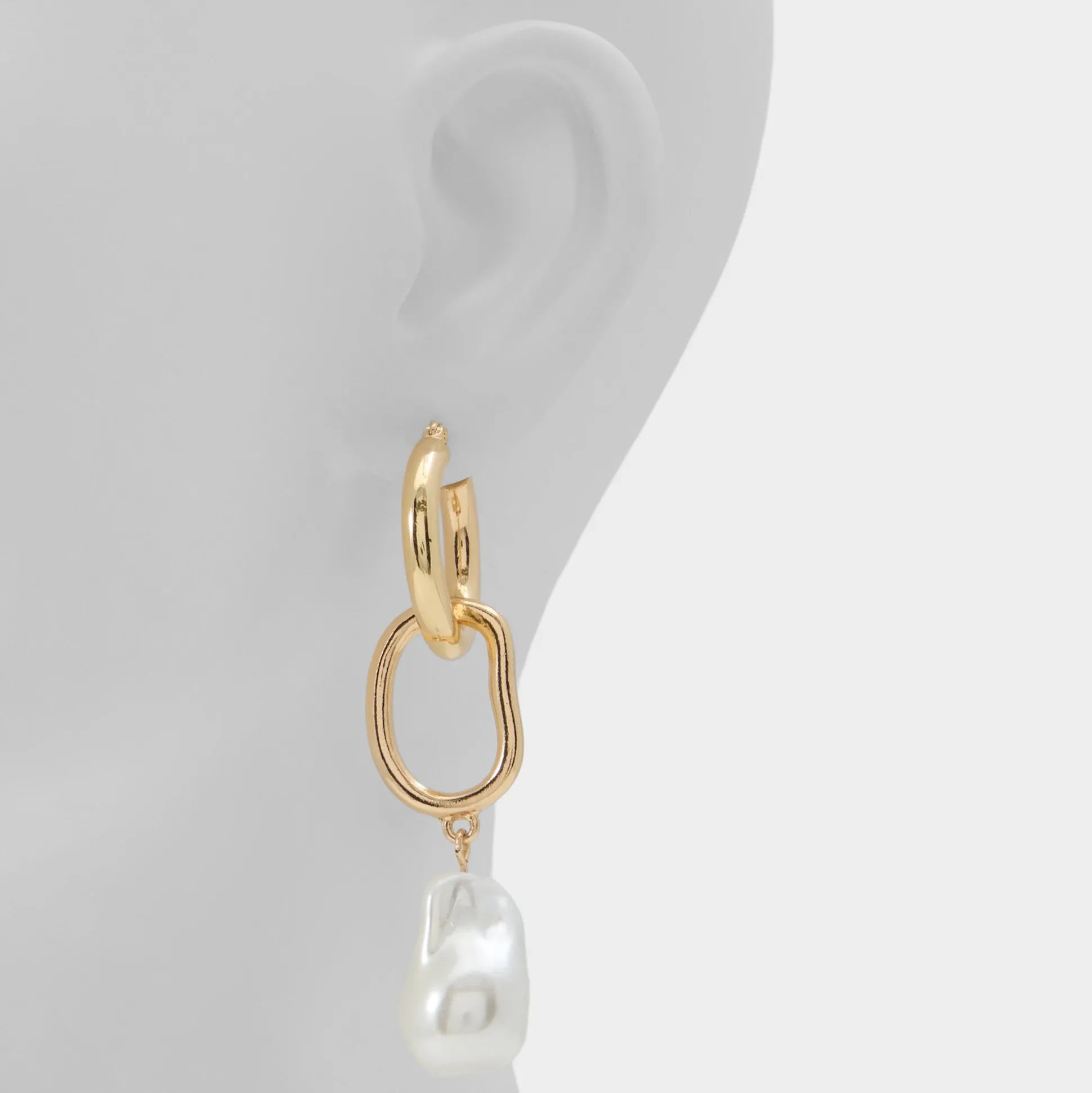 Interlocking chunky hoops swing into sculptural drops finished with glossy baroque pearls that catch the light and move with every gesture on a crisp evening, at rooftop bars, or daytime strolls. Pair them with a slip dress for rooftop cocktails or denim and a crisp button-down for weekend brunches with effortless polish.