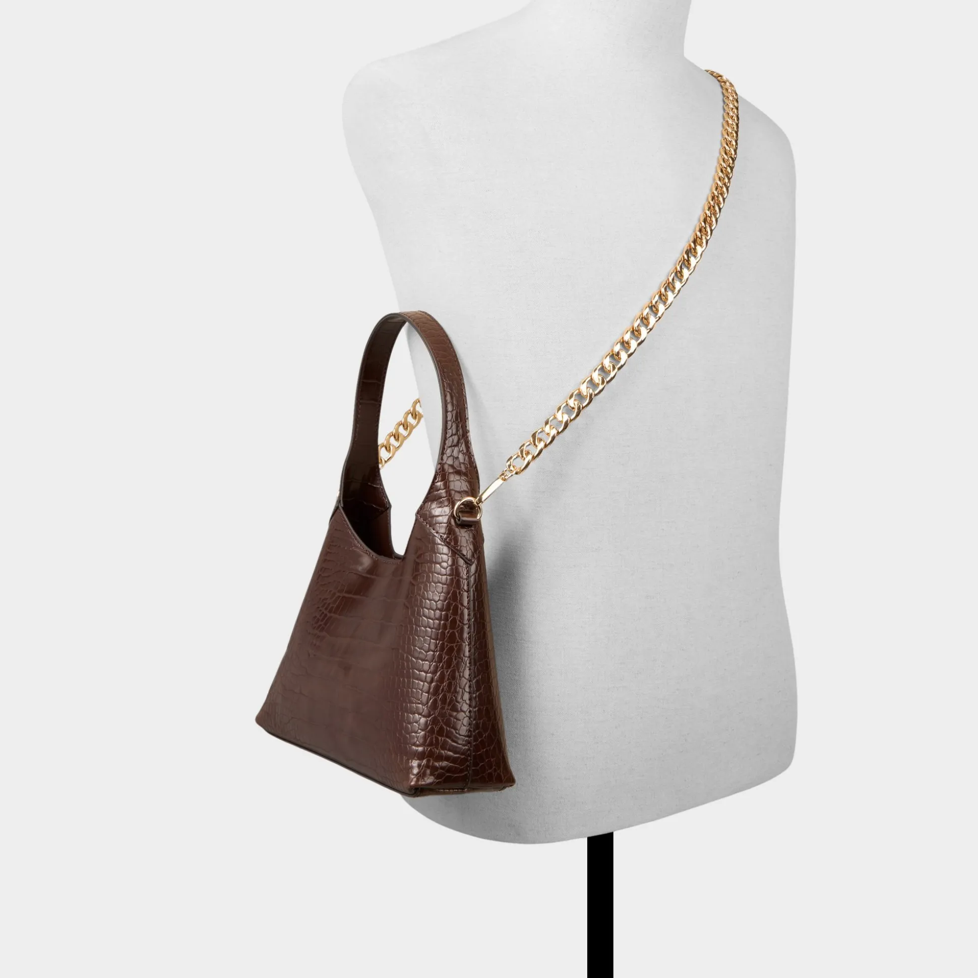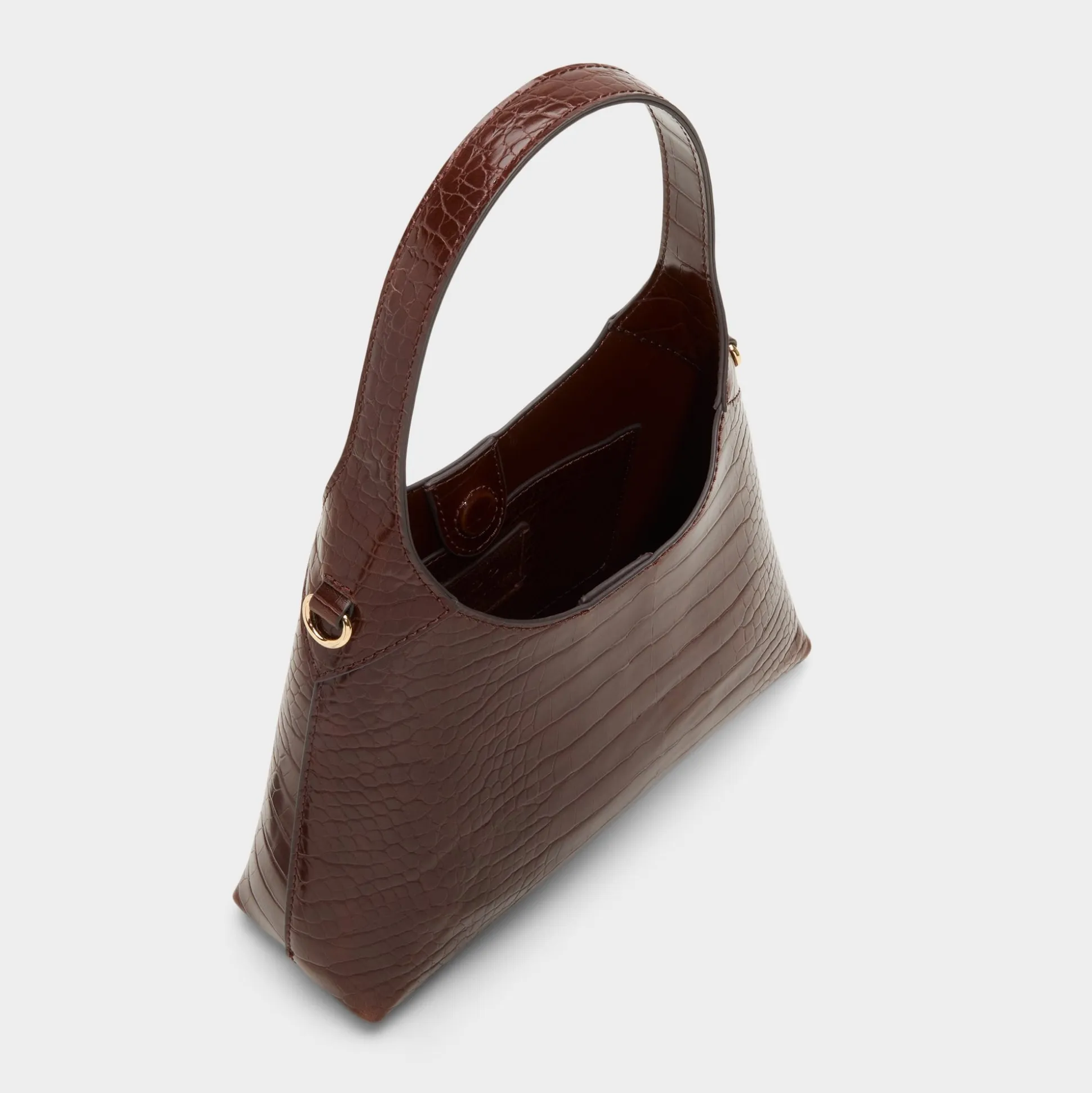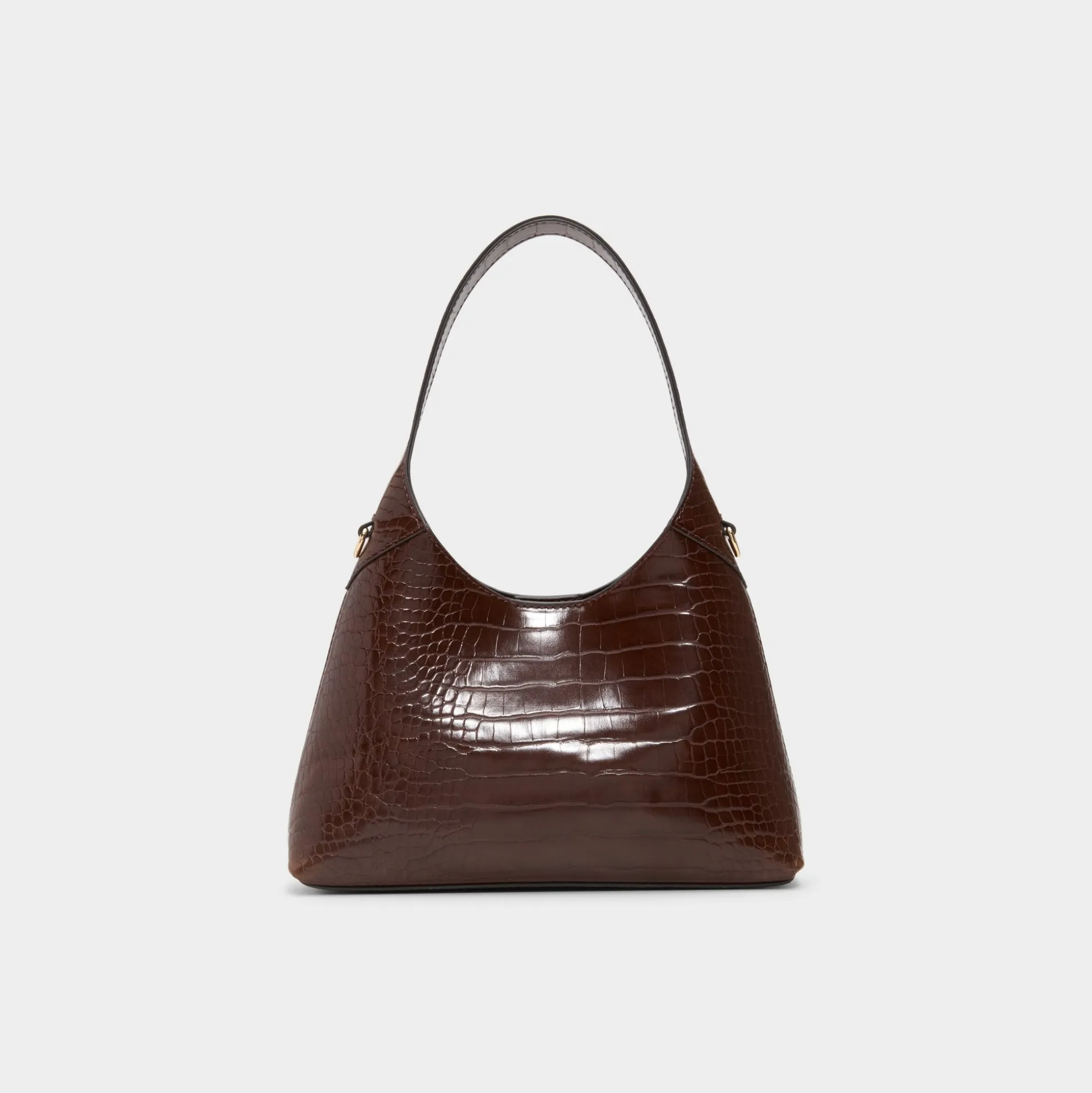 Elevate your look with the Smallharperr hobo bag, crafted in glossy brown croc texture that exudes confidence and edge. Its sleek, curved silhouette offers a daring twist on a classic shape, making it the perfect accessory to turn heads wherever you go.