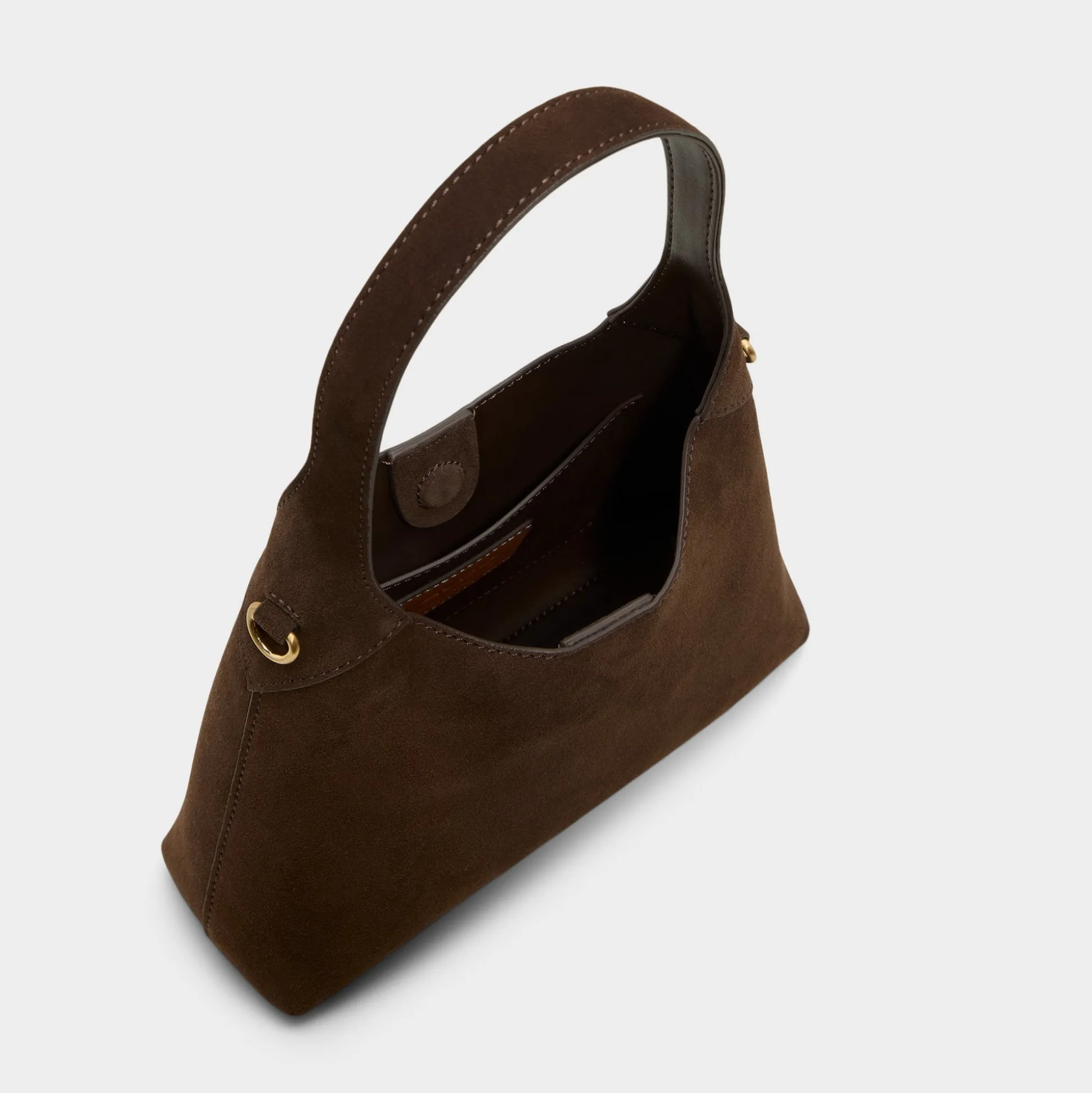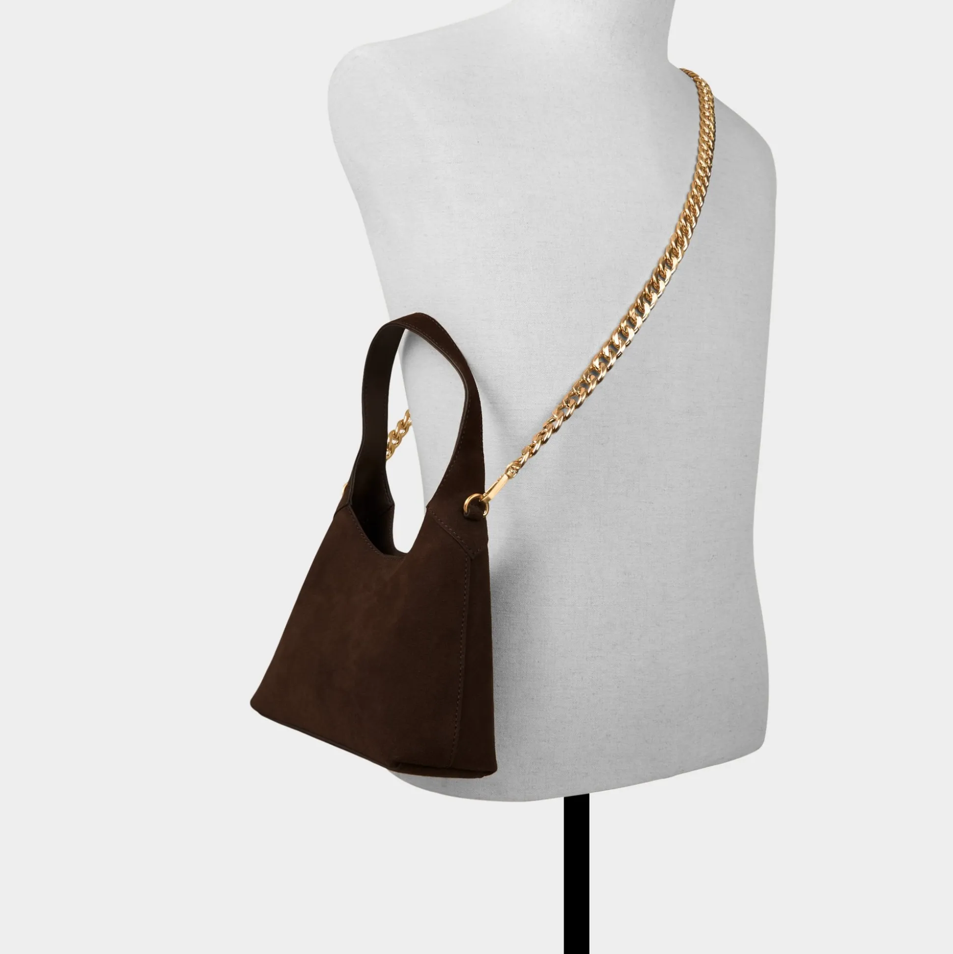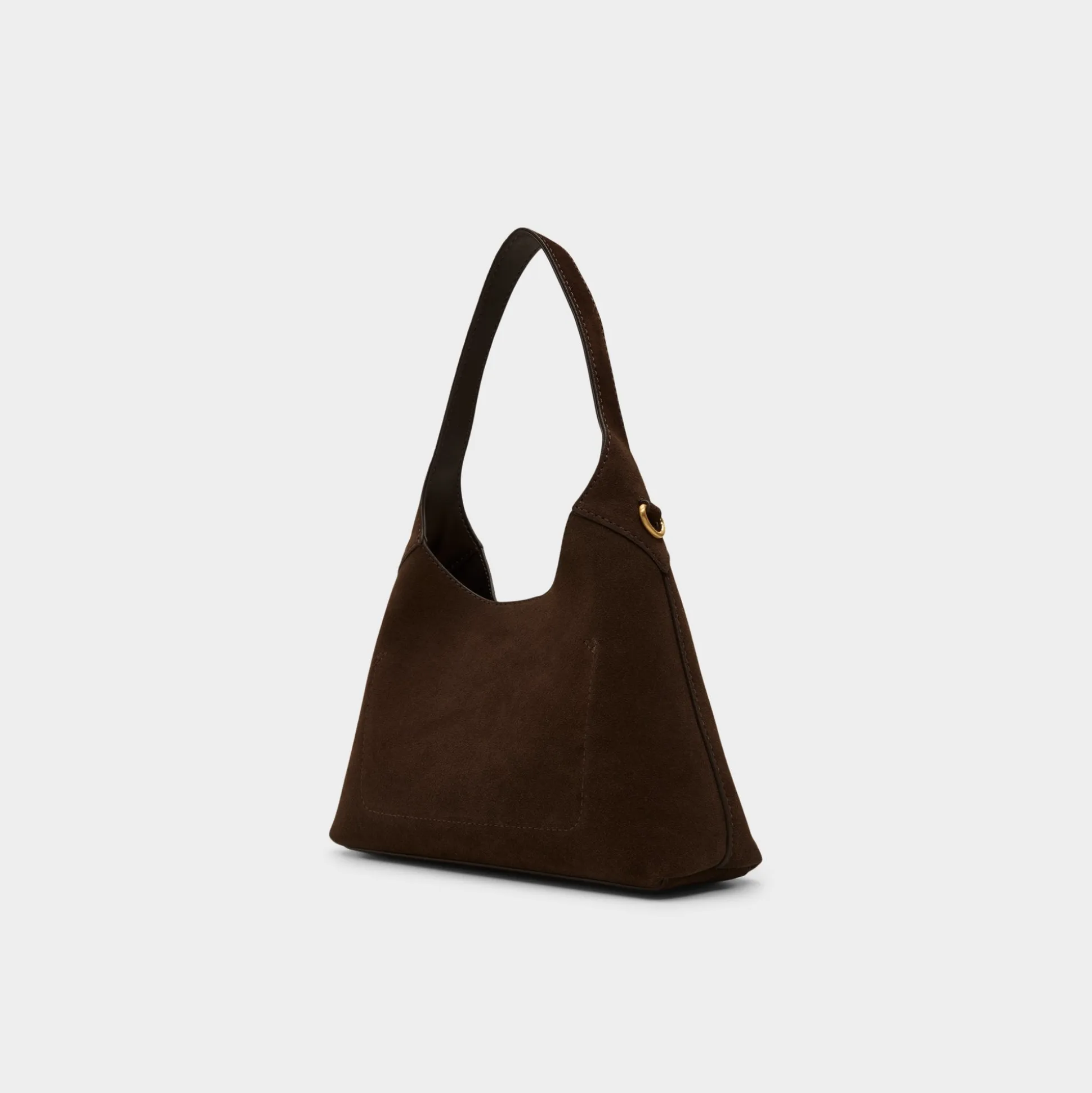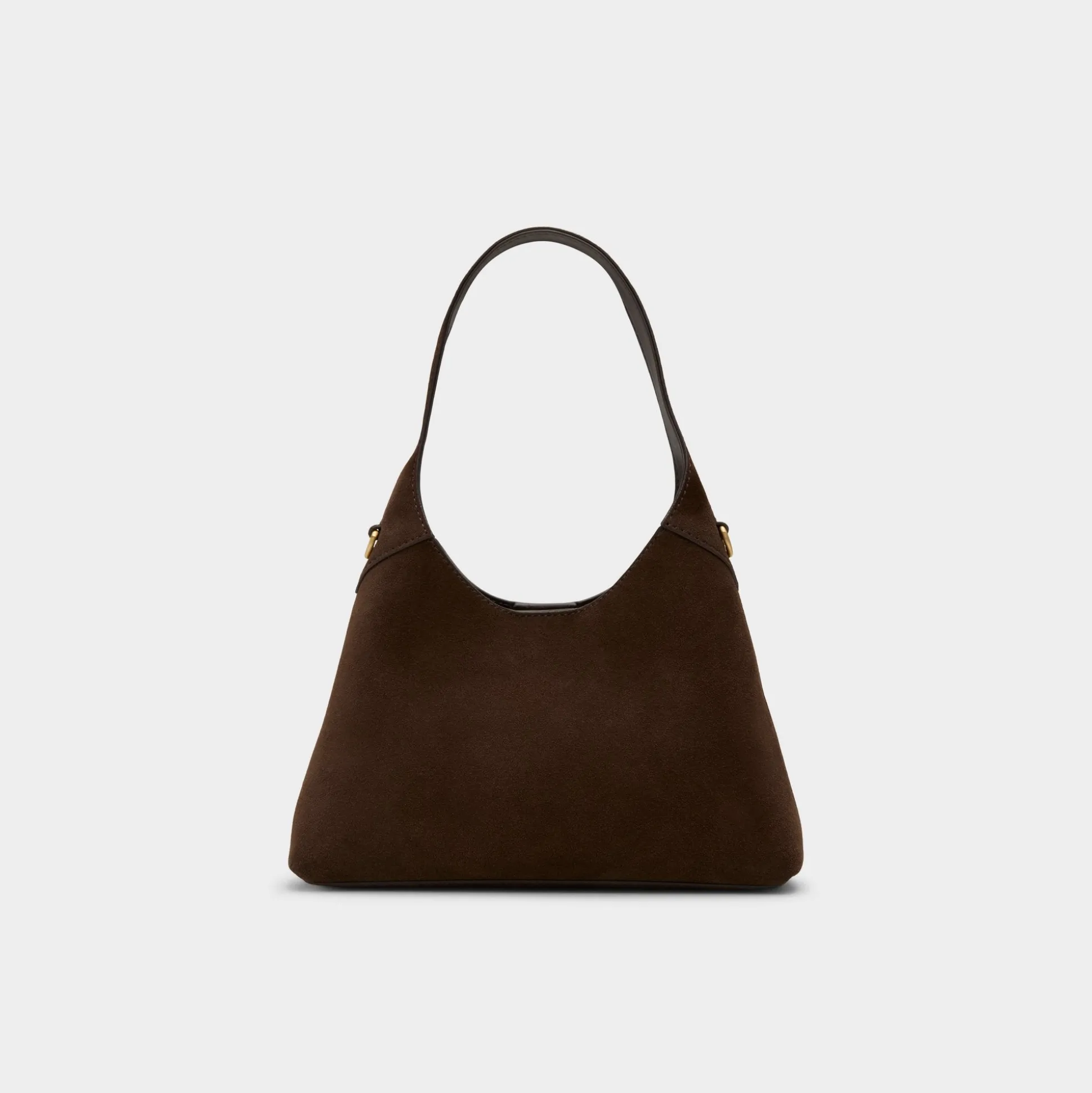 Velvety suede forms a sleek hobo curve, with a single shoulder strap dipping into a deep scoop and gold hardware framing its hidden magnetic closure to keep essentials in check. Tuck it under a blazer for coffee meet-ups or sling it over a knit dress on weekend errands to polish every look.