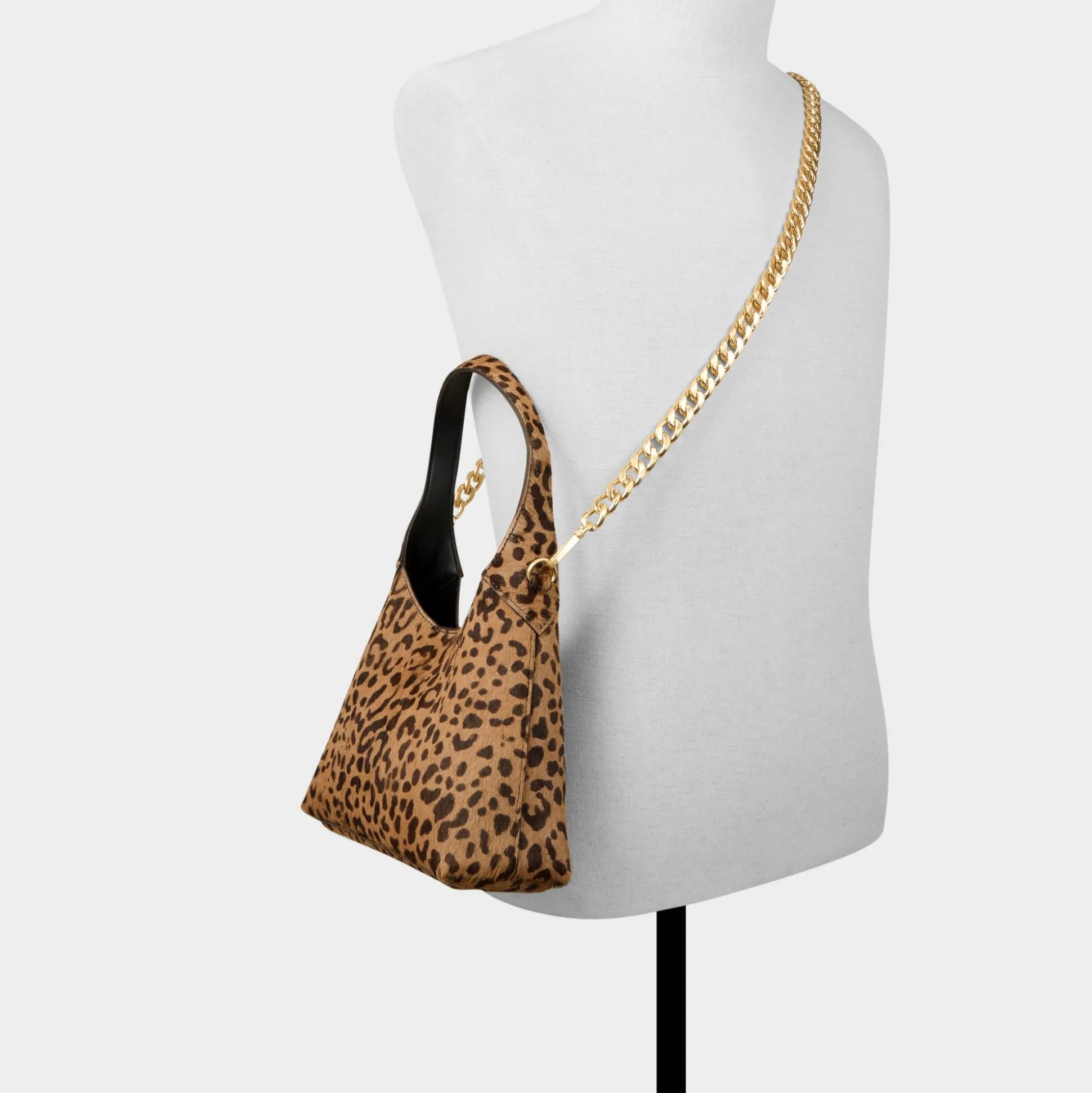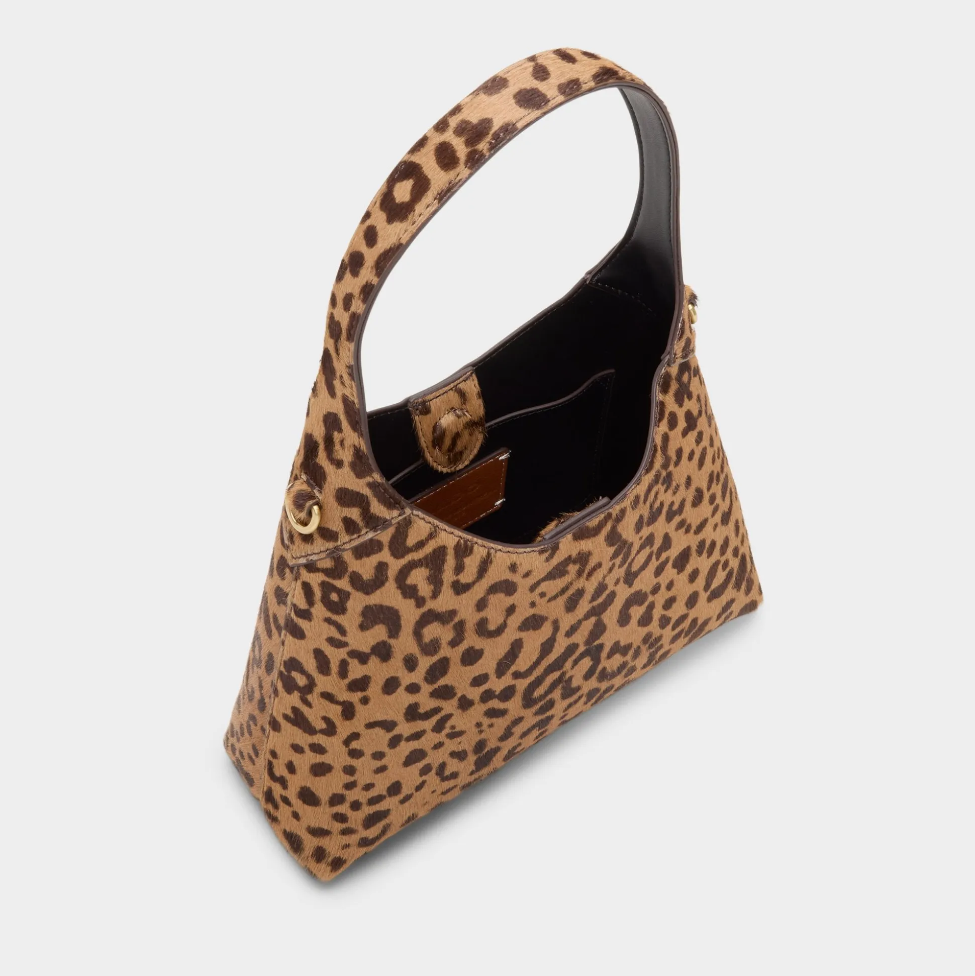Spotted haircalf takes the spotlight on this softly structured hobo, featuring a sculpted handle that curves into an elegant loop while a concealed zipper keeps things organized so the bold leopard pattern shines. Sling it over an all-black jumpsuit for dinner dates or elevate weekend tees and cargos, pulling everything together.