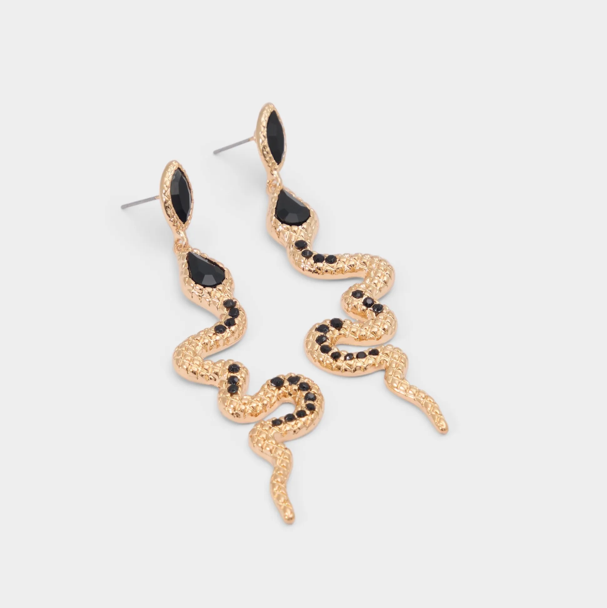 Gold serpents coil along the band, their inky crystals catching every flash as shoulder-skimming drops flicker under lights and turn a moment into a heartbeat. Layer it with a slip dress for rooftop cocktails, or cinch a leather tee and jeans for gigs, letting the shimmer finish the look.