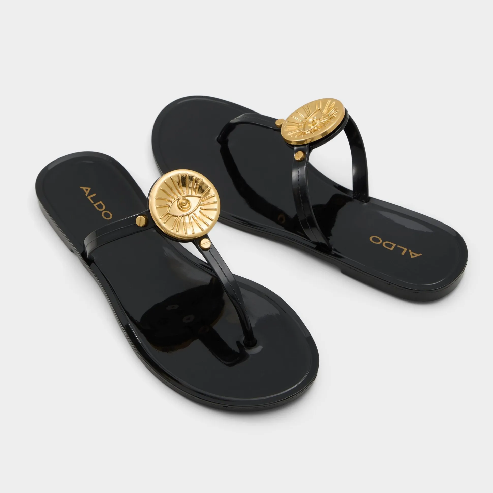 Escape to paradise with the Soreya jelly sandal, where playful comfort meets beachside style. Crafted from flexible, lightweight jelly material, these sandals mold to your feet for all-day wear by the pool or shore. The striking gold evil eye detail adds a touch of mystique and protection—a timeless charm that elevates your vacation look. Slip them on and let the good vibes flow.