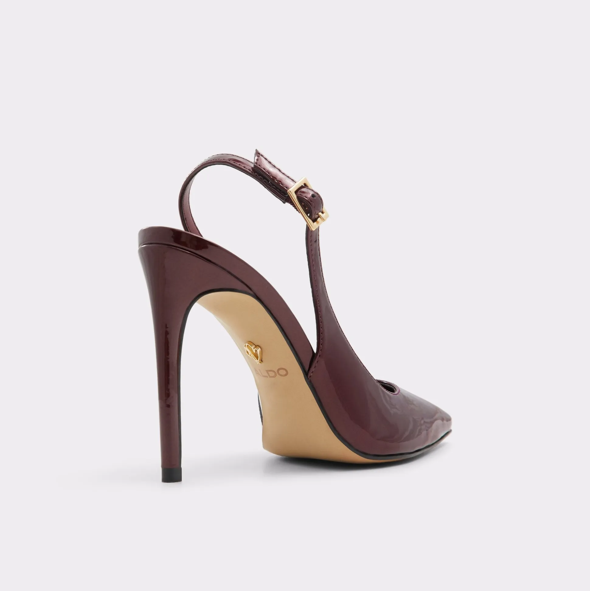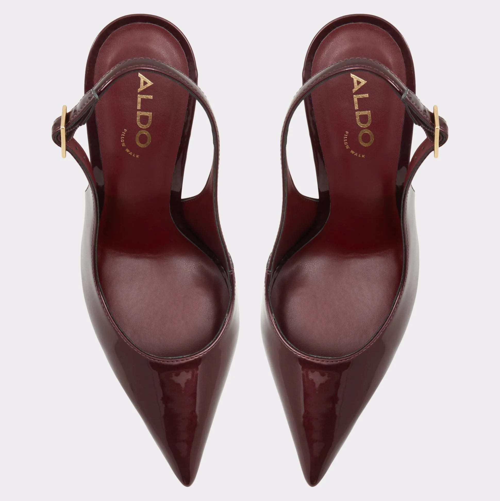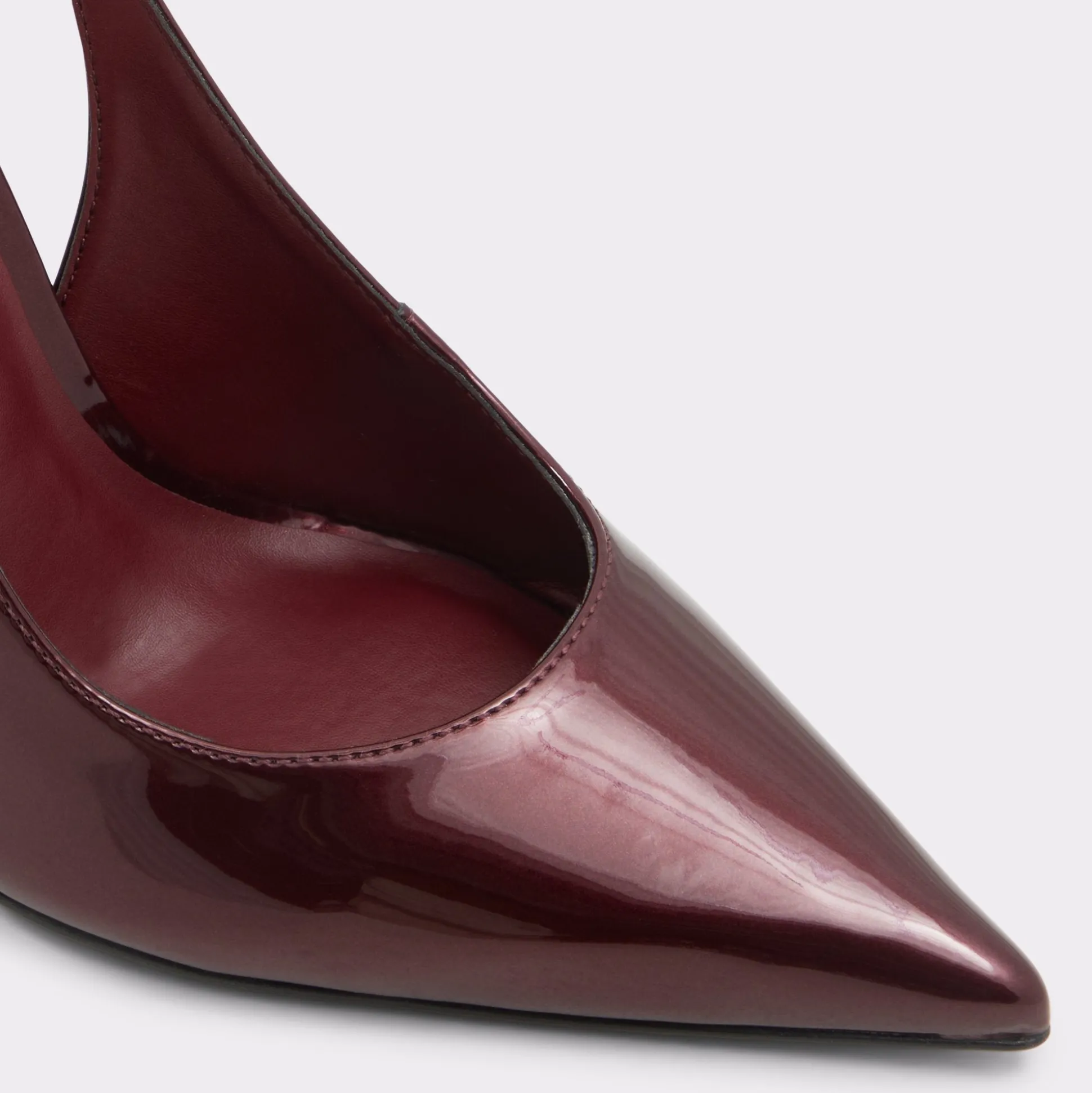 Velvety patent shine wraps this scarlet slingback, and a sharp stiletto adds clean altitude, turning each step into a spark, with an adjustable buckle keeping the fit secure. Pair with a tailored jumpsuit for networking hours, or slip under a slinky dress when date-night desserts become rooftop views.