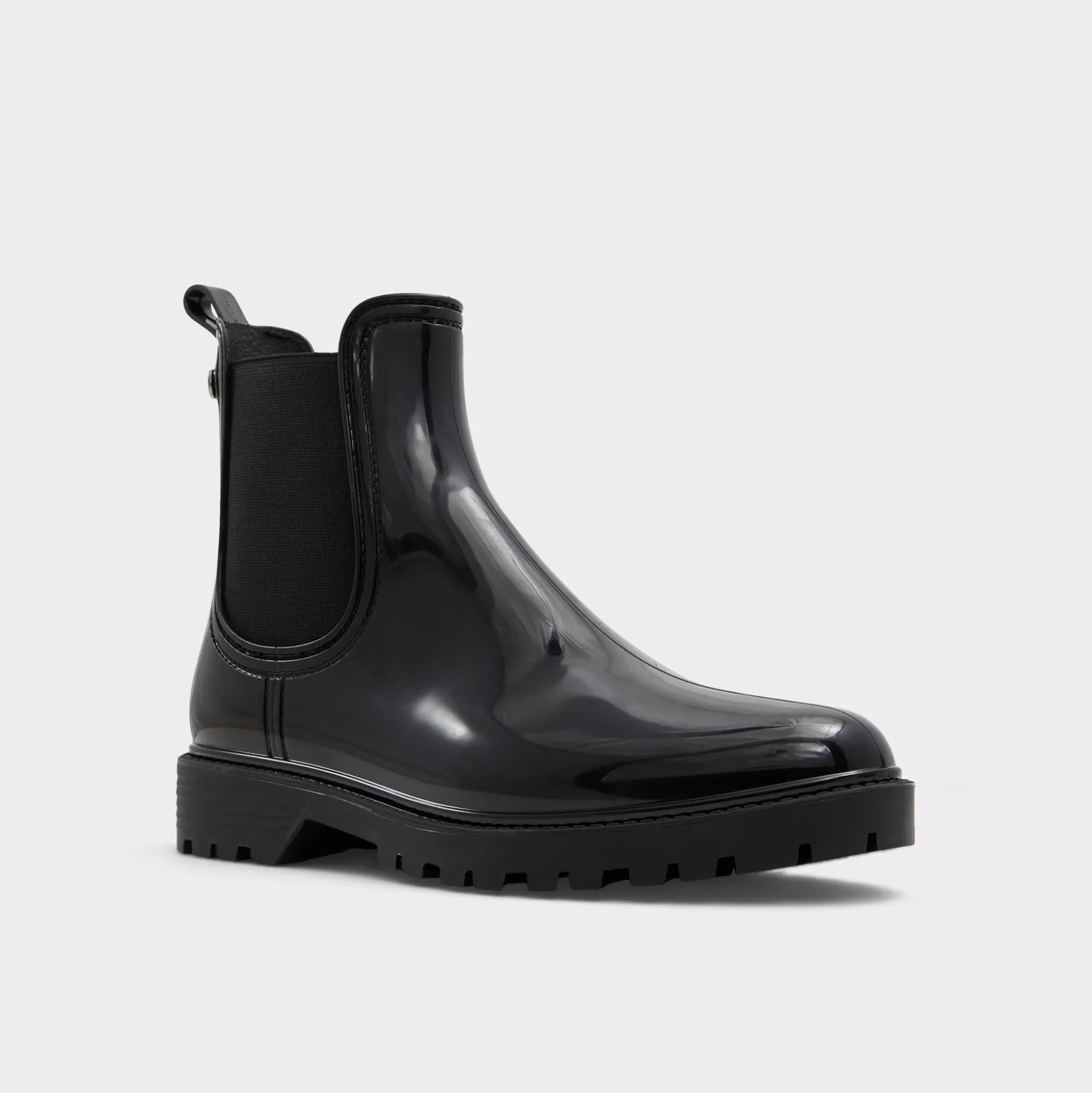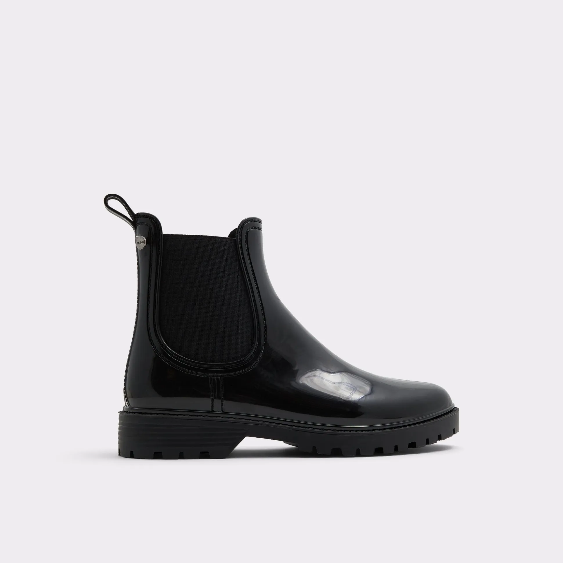 Splish splash the rainy days away in these stylish pull-on rain boots. Rendered in an iconic chelsea boot silhouette and coupled with chunky lug sole bottoms, Storm is a step up from basic wellies with a shiny finish. Warning, puddle jumping ahead!