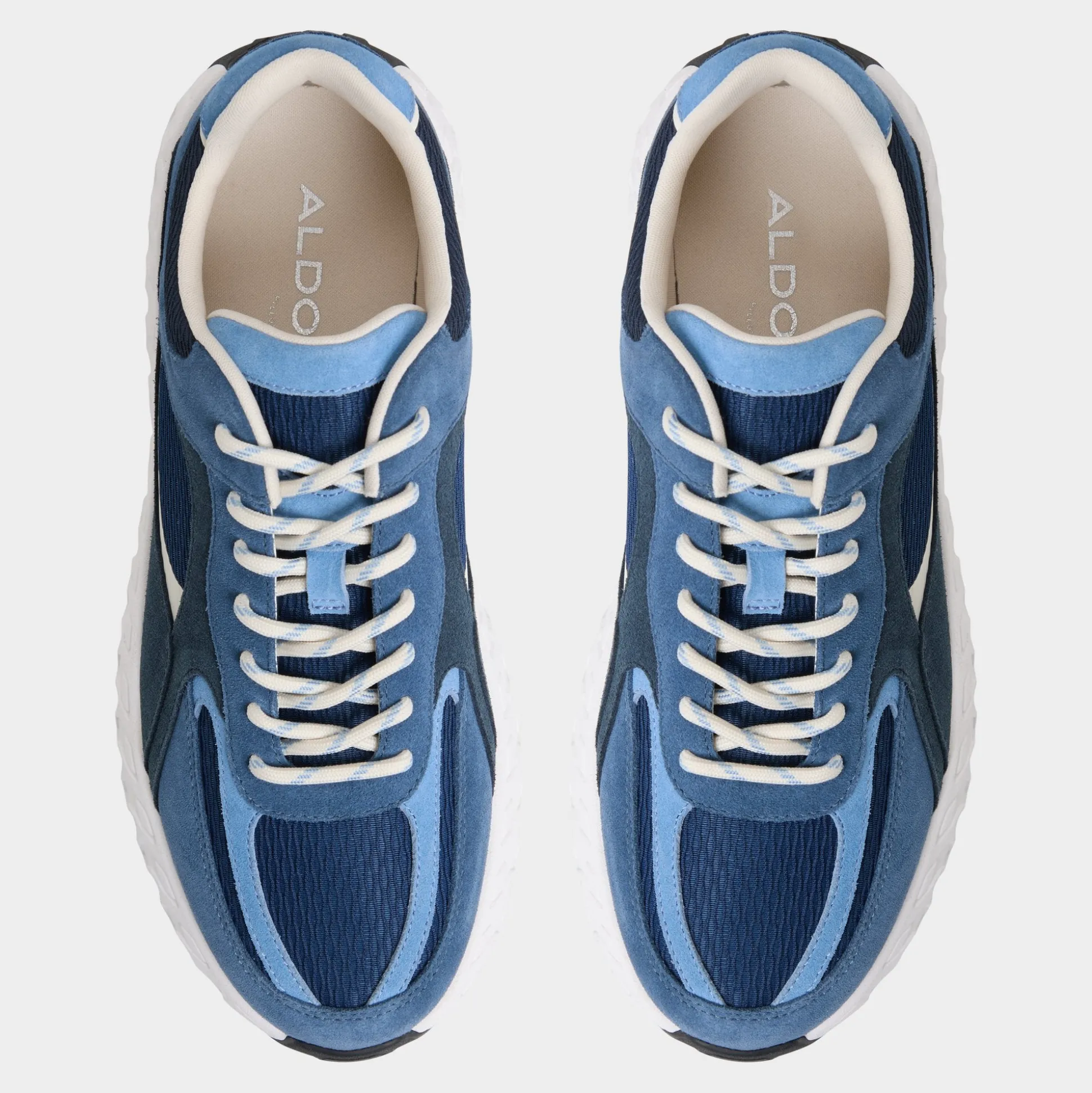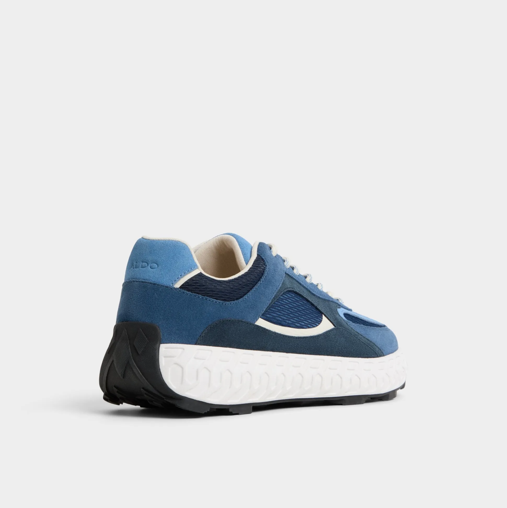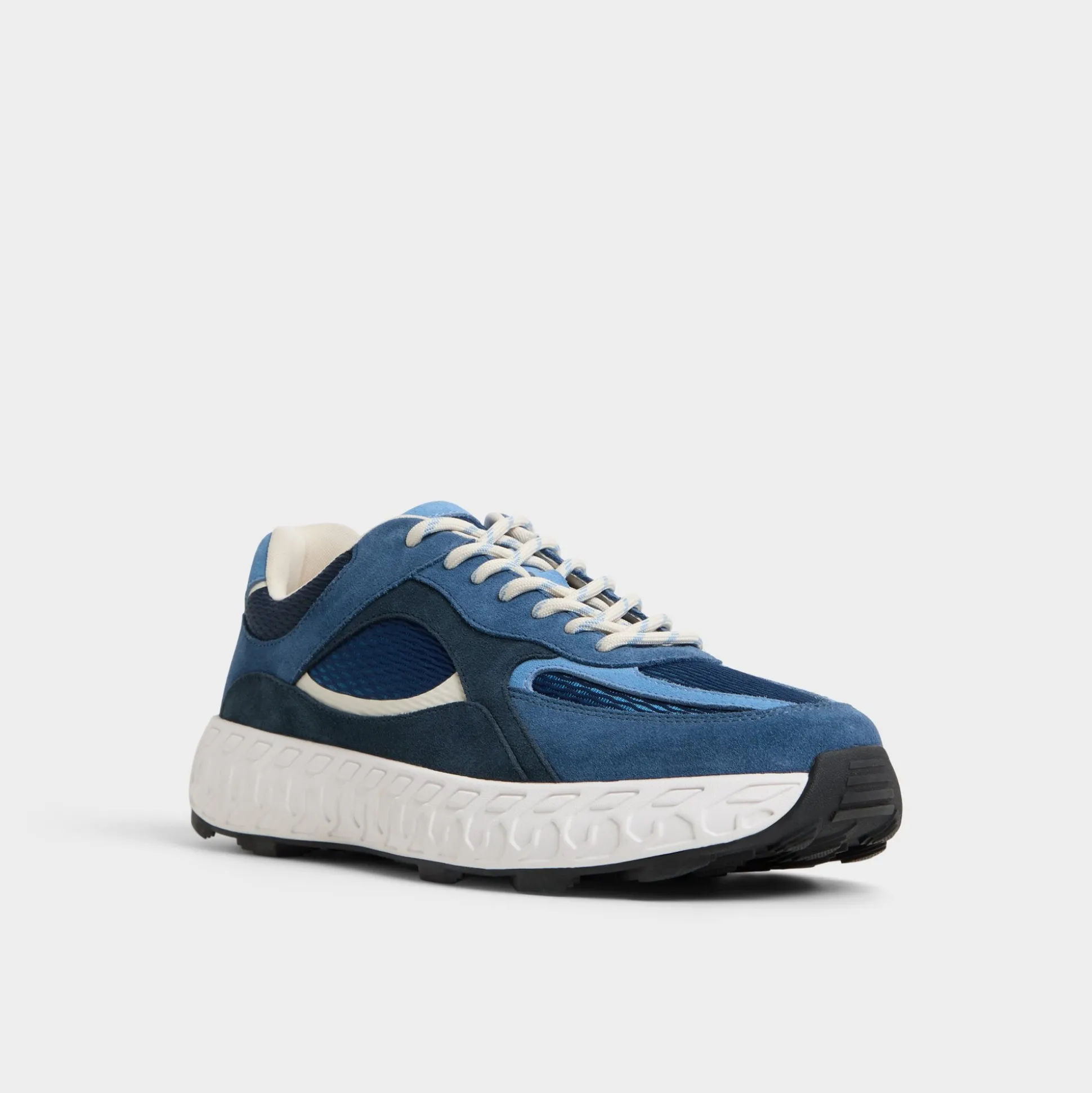 Wave-like sculpting along oversized jogger soles gives this blue suede mesh sneaker a bold silhouette, while airy cushioning keeps everyday steps steady for long days and breezy city strolls. Pair it with tapered denim for coffee runs, or roll with linen shorts for weekend getaways.