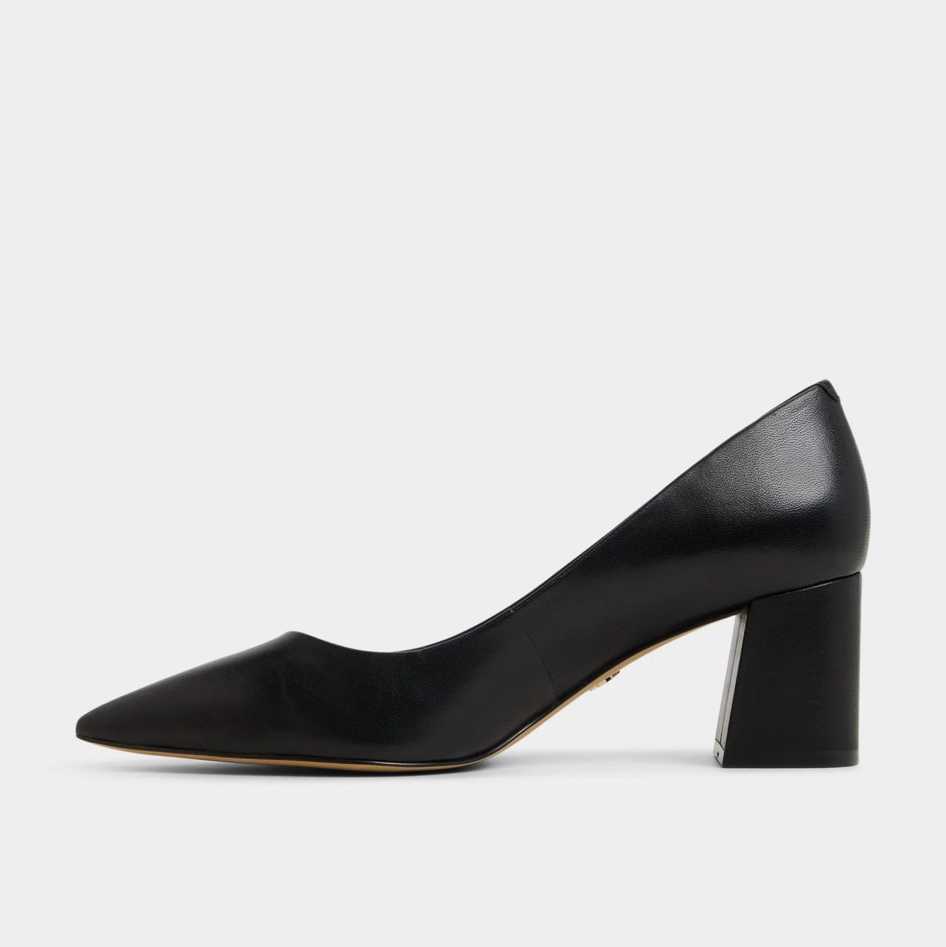 Supple leather wraps a pointed silhouette while a clean block heel gives steady lift, creating a quiet power pump that carries you through brainstorms and elevator rides without stealing the spotlight. Pair with tailored trousers for big meetings, or swap into a satin slip when gallery openings turn into late tapas runs.