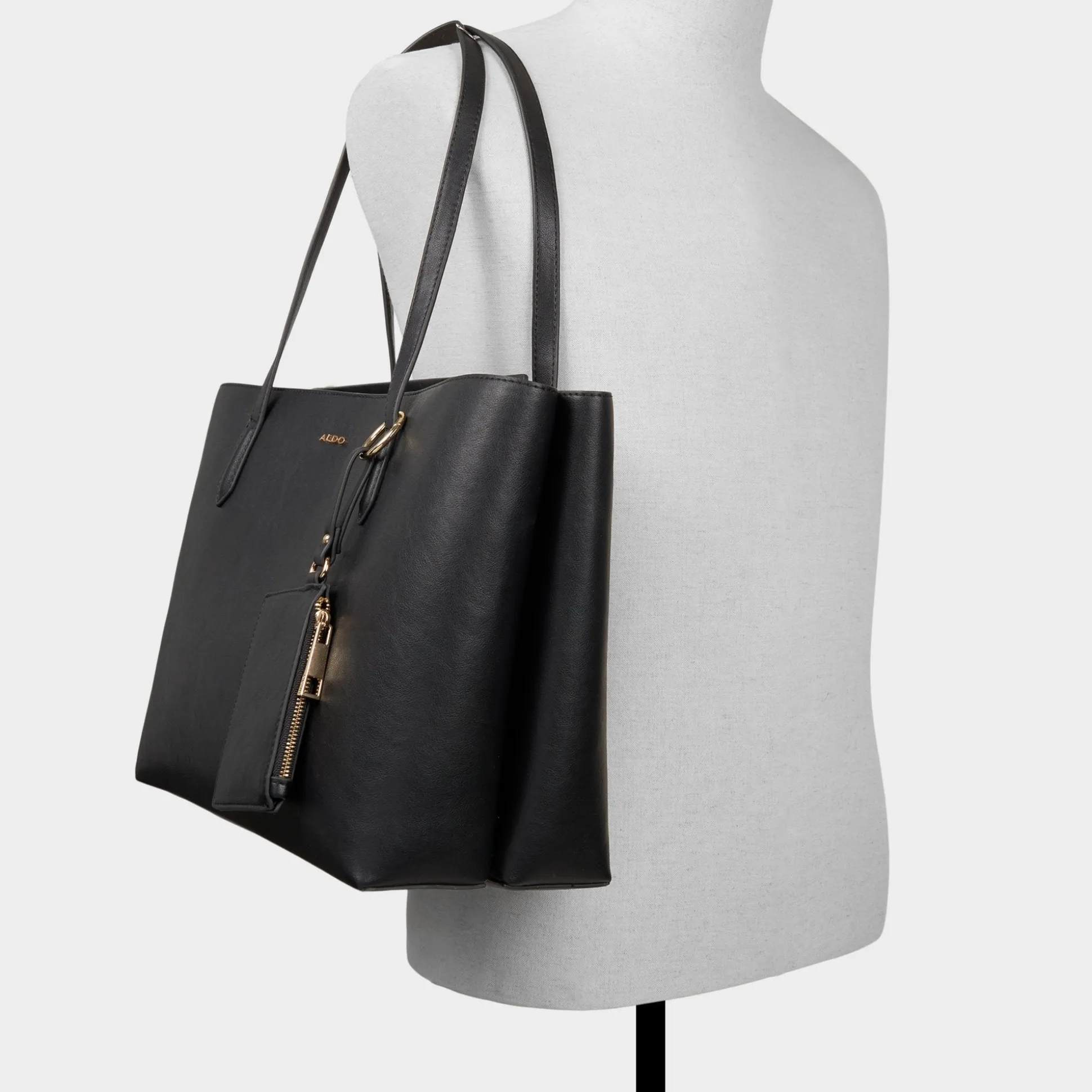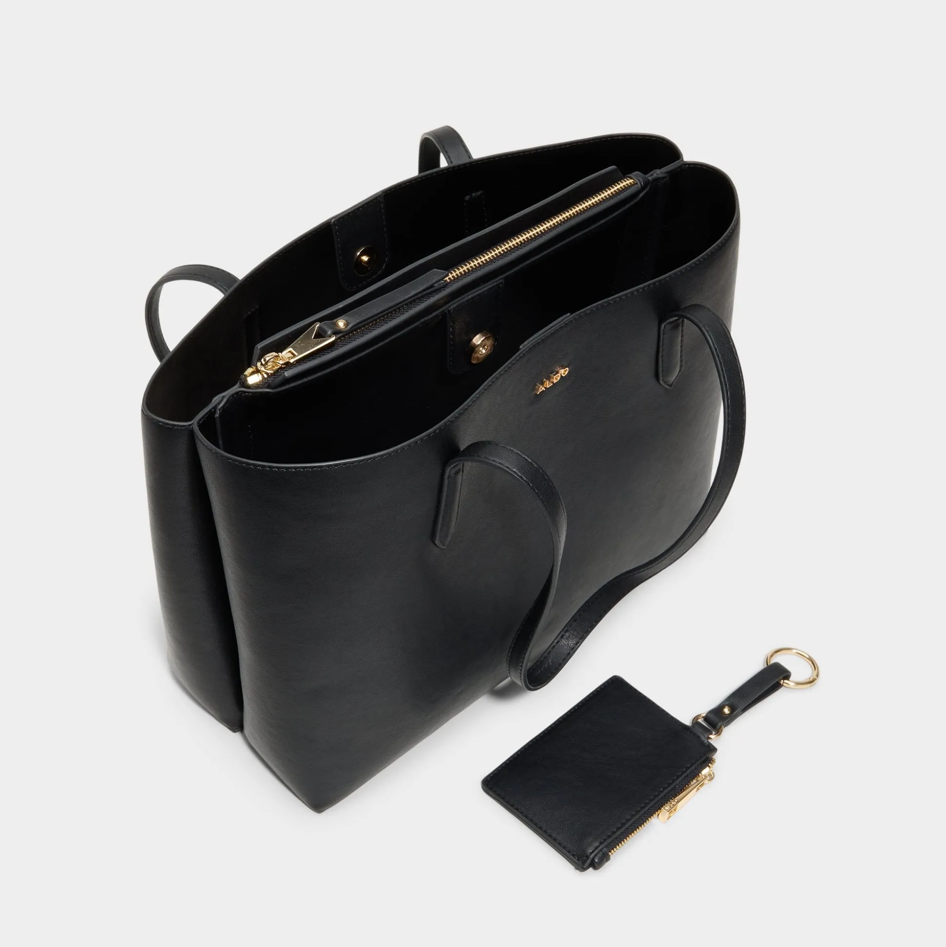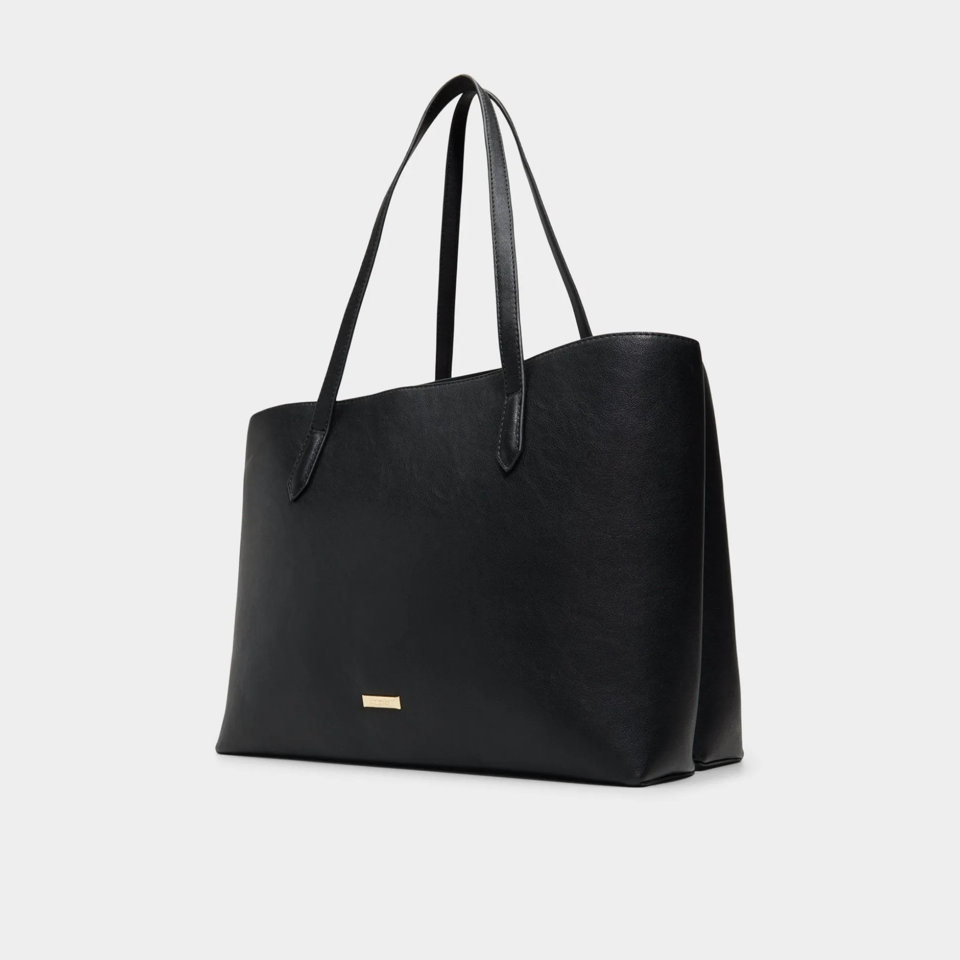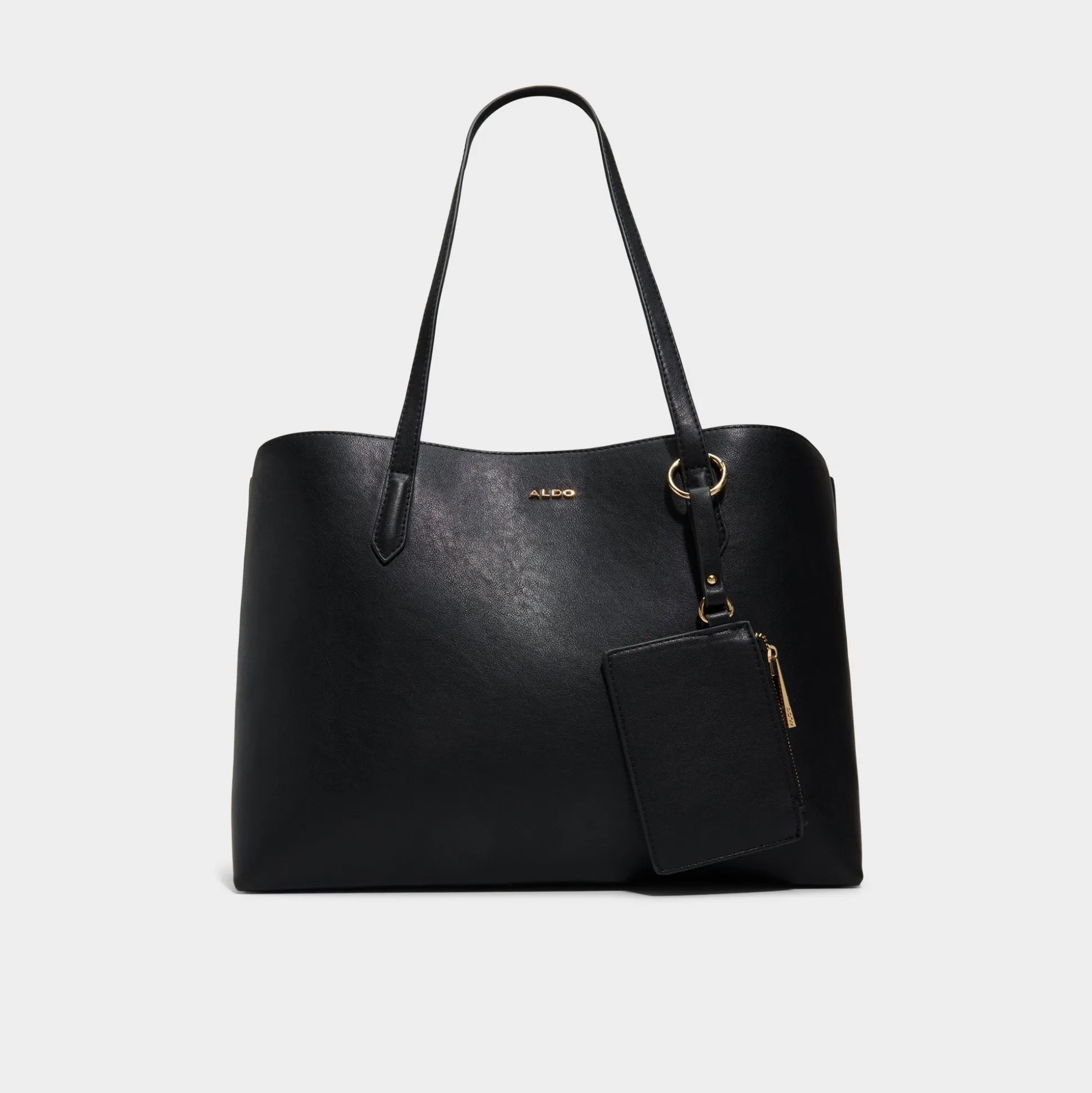 Matte faux-leather meets slender shoulder straps on a roomy tote, balancing city polish with everyday ease, while a detachable gold-ringed zip-top pouch frees hands for coffee runs and quick errands on busy mornings. Carry it with a blazer for desk hours or sling it with denim on weekend jaunts, finishing every outfit with understated, versatile flair.