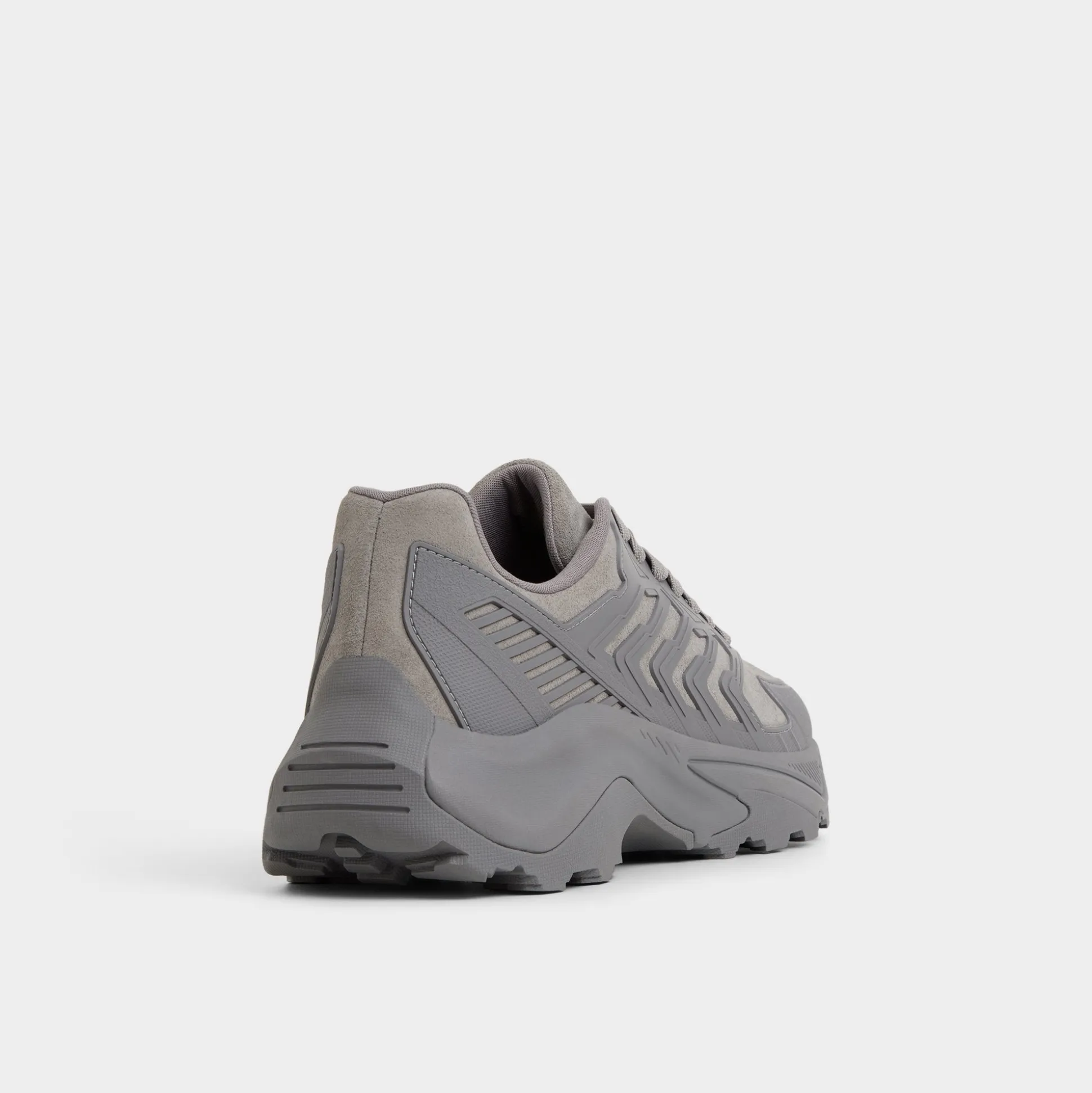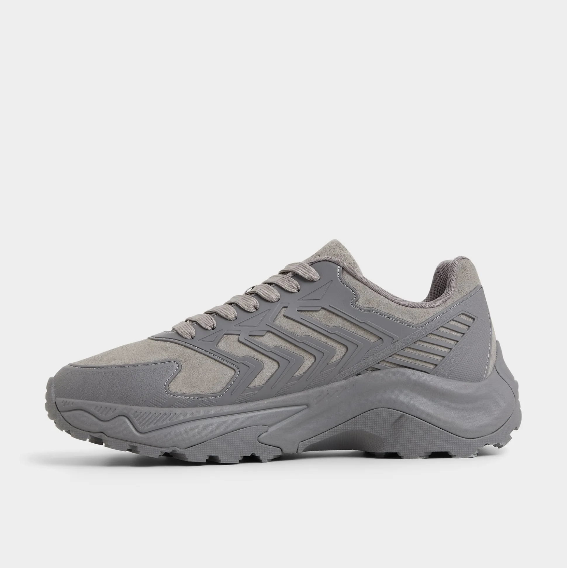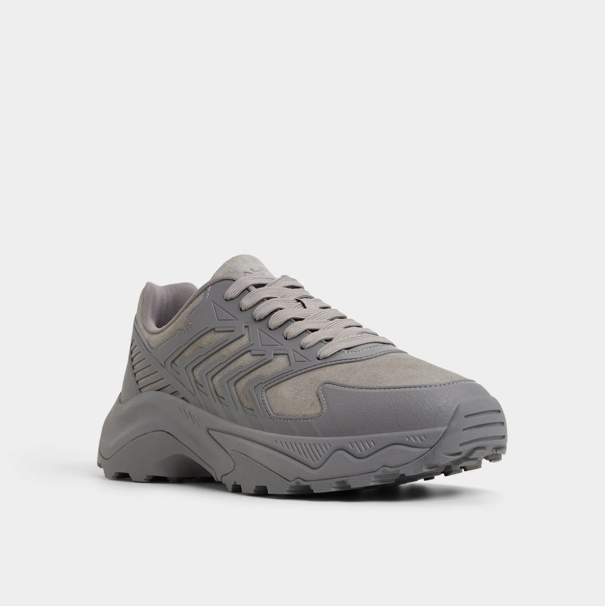 Geometric overlays ripple over grey suede and synthetic panels, pairing texture with a sole that cushions every stride and a breathable lining that keeps you cooled from sprint to sunset. Team it with tech pants for airport hops, or roll with contrast cuffed chinos for weekend gigs.