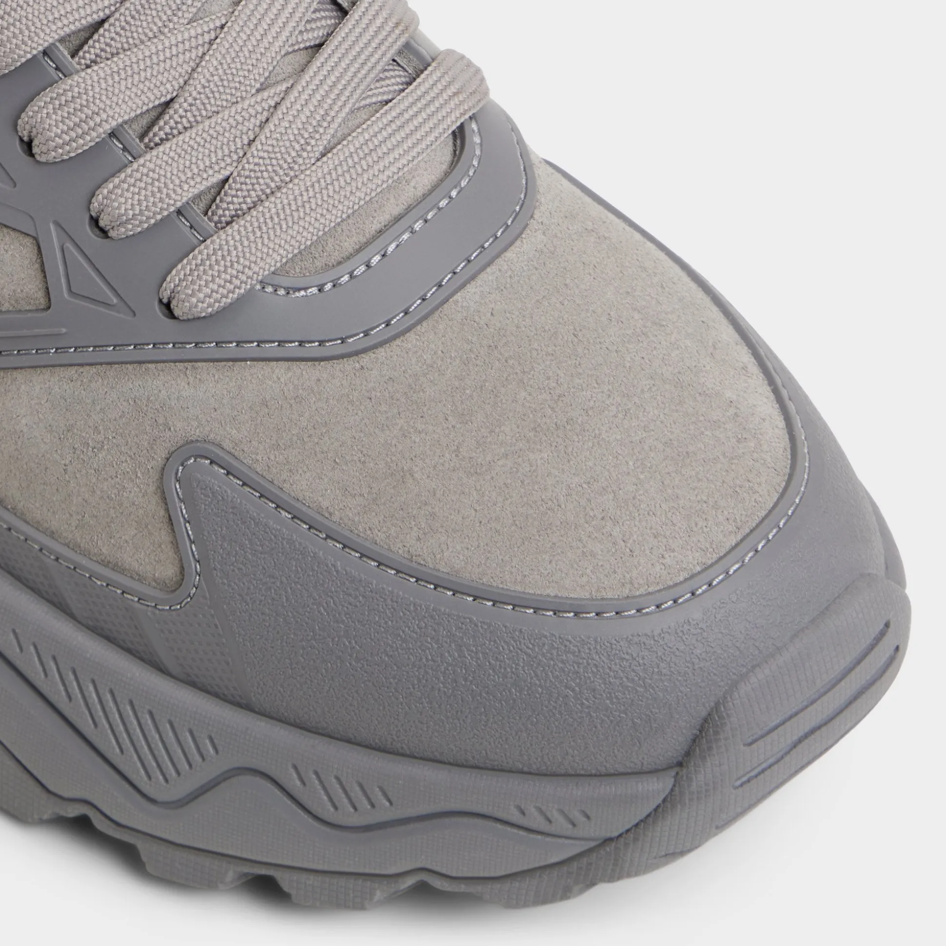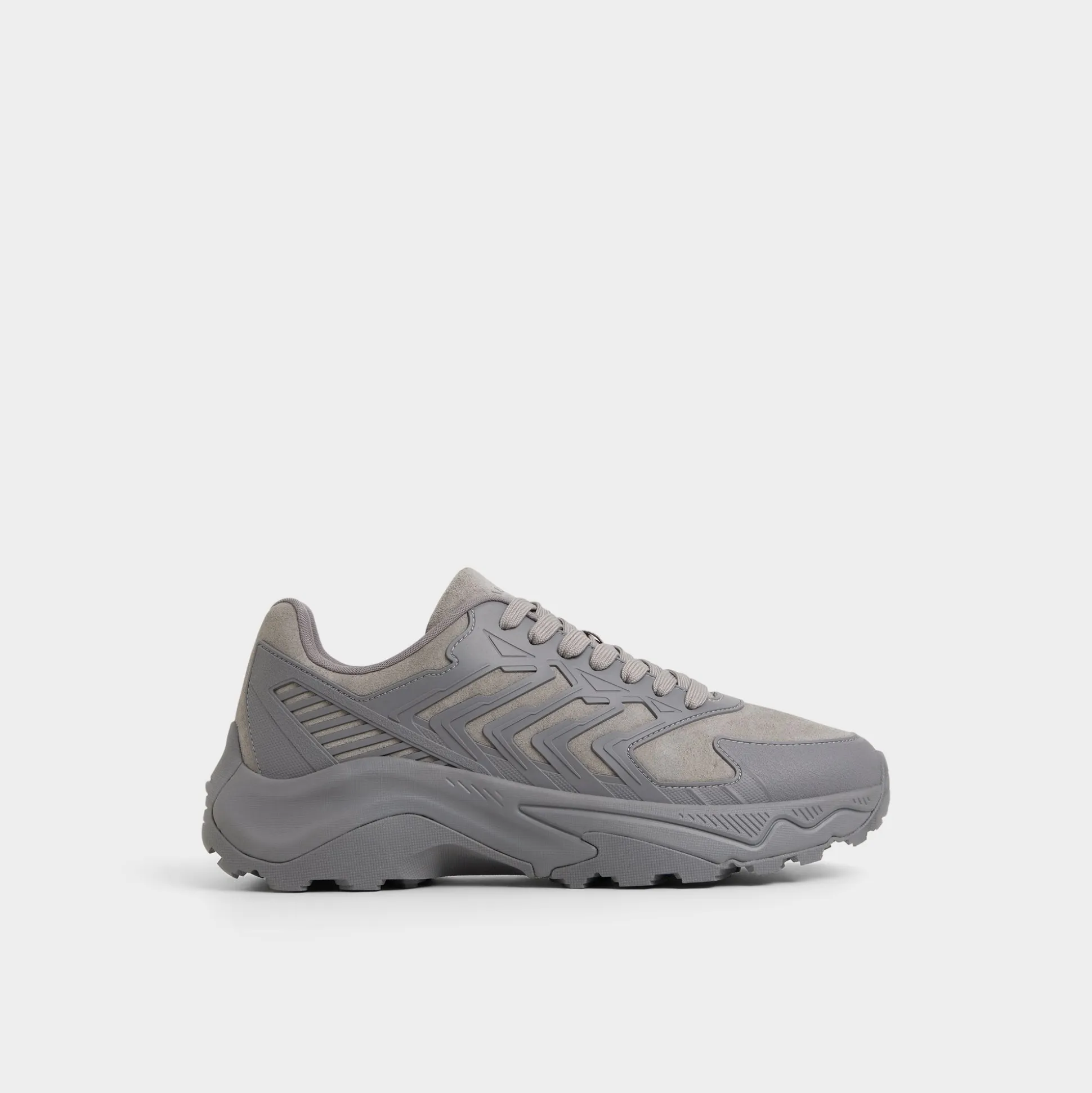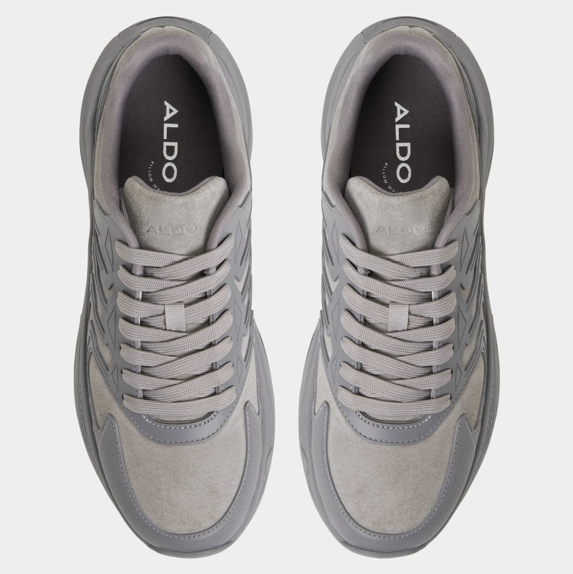 Geometric overlays ripple over grey suede and synthetic panels, pairing texture with a sole that cushions every stride and a breathable lining that keeps you cooled from sprint to sunset. Team it with tech pants for airport hops, or roll with contrast cuffed chinos for weekend gigs.