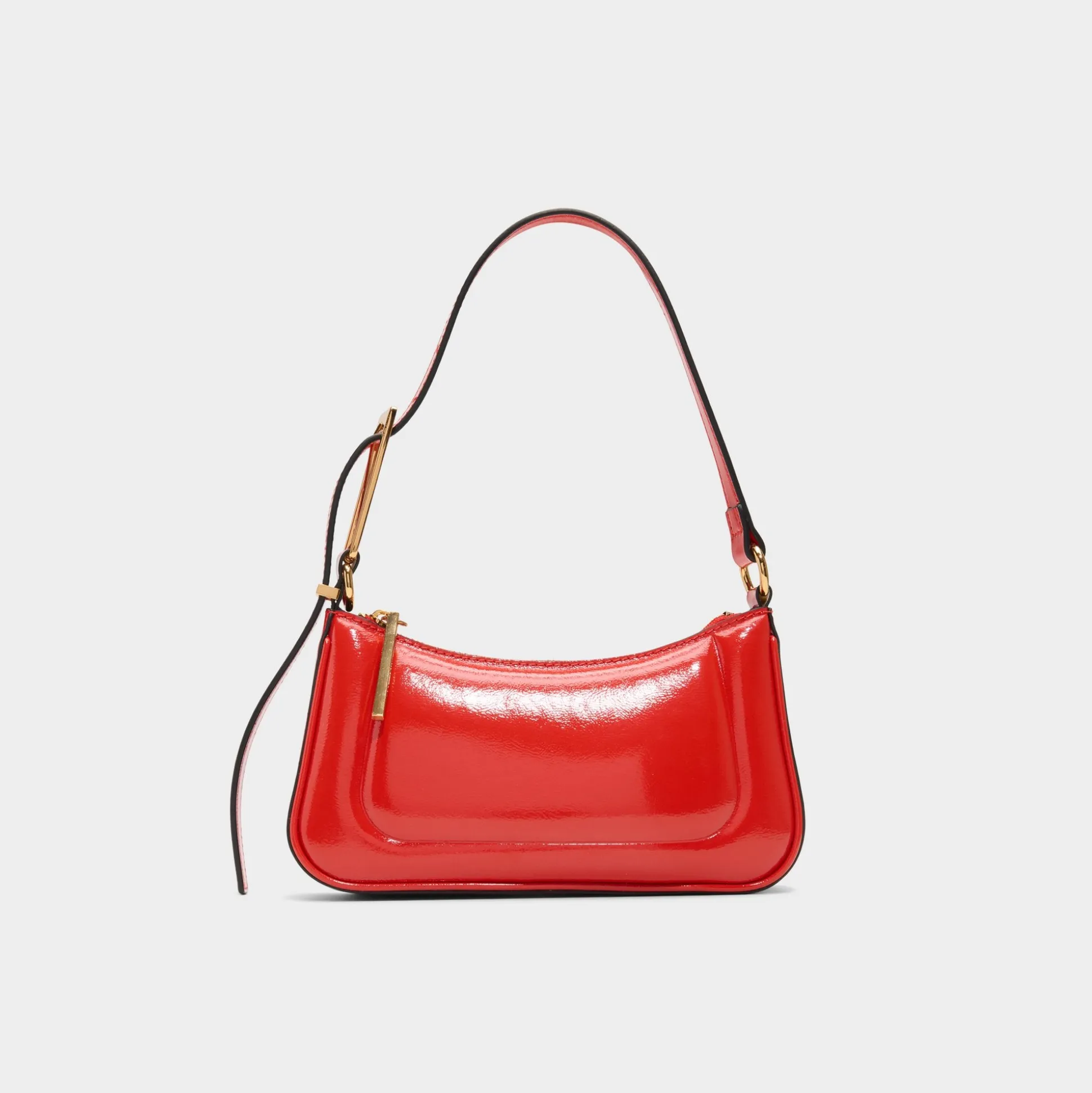 High-gloss patent leather in unapologetic red turn this baguette into a head-turning statement, gleaming with gold hardware and a sculpted silhouette that catches every glance as you move through city lights. Carry it with a sharp blazer for work drinks, or sling it over a slip dress for midnight parties to finish the look.