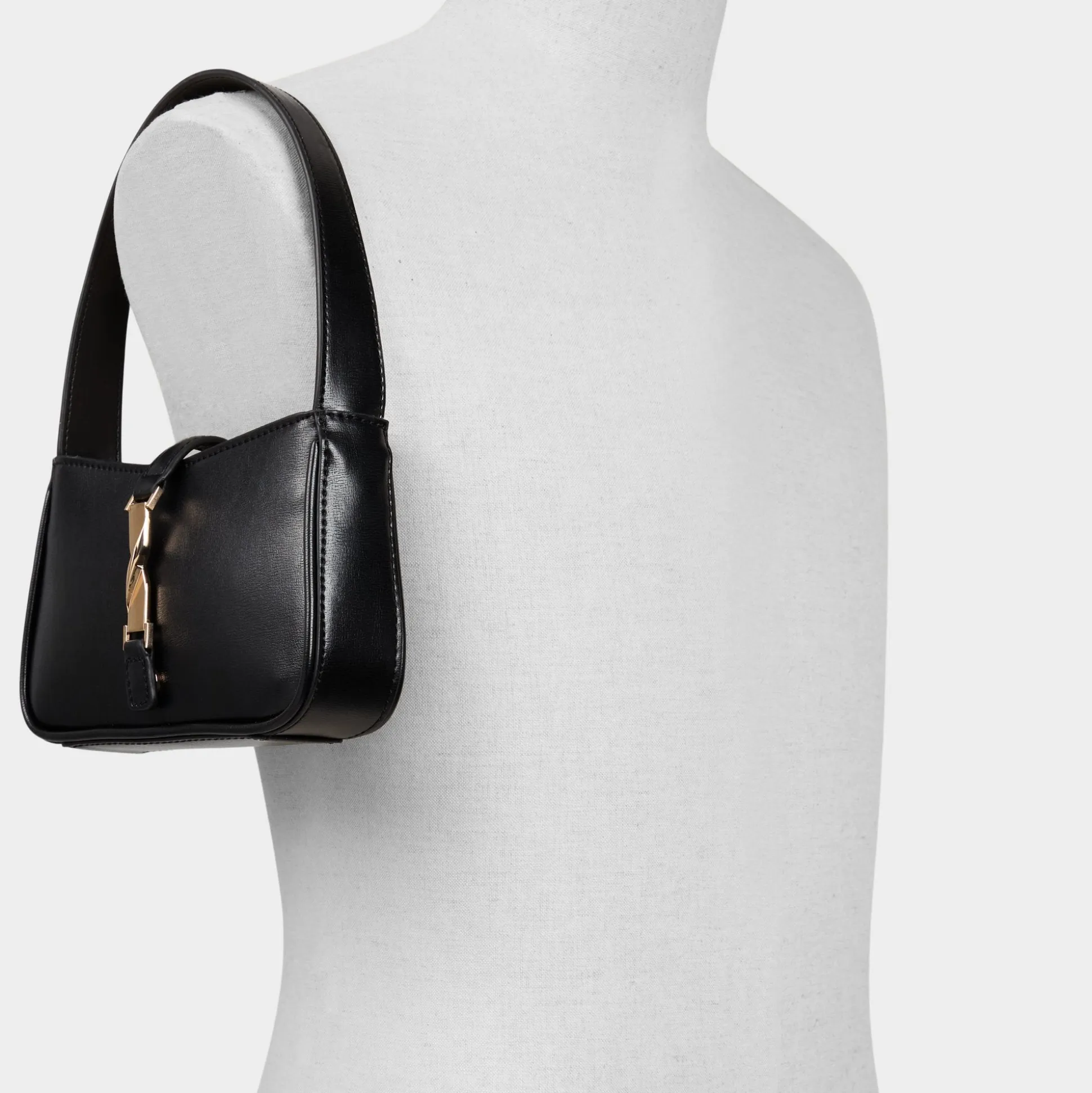 Sculpted in smooth black leather, this slim shoulder bag leans into quiet luxury with a twisted gold buckle over a hidden magnetic closure, keeping the structured silhouette sharp and essentials close. Sling it under a boxy blazer for campus presentations or tuck it against a slip dress at rooftop dinners to polish every look.