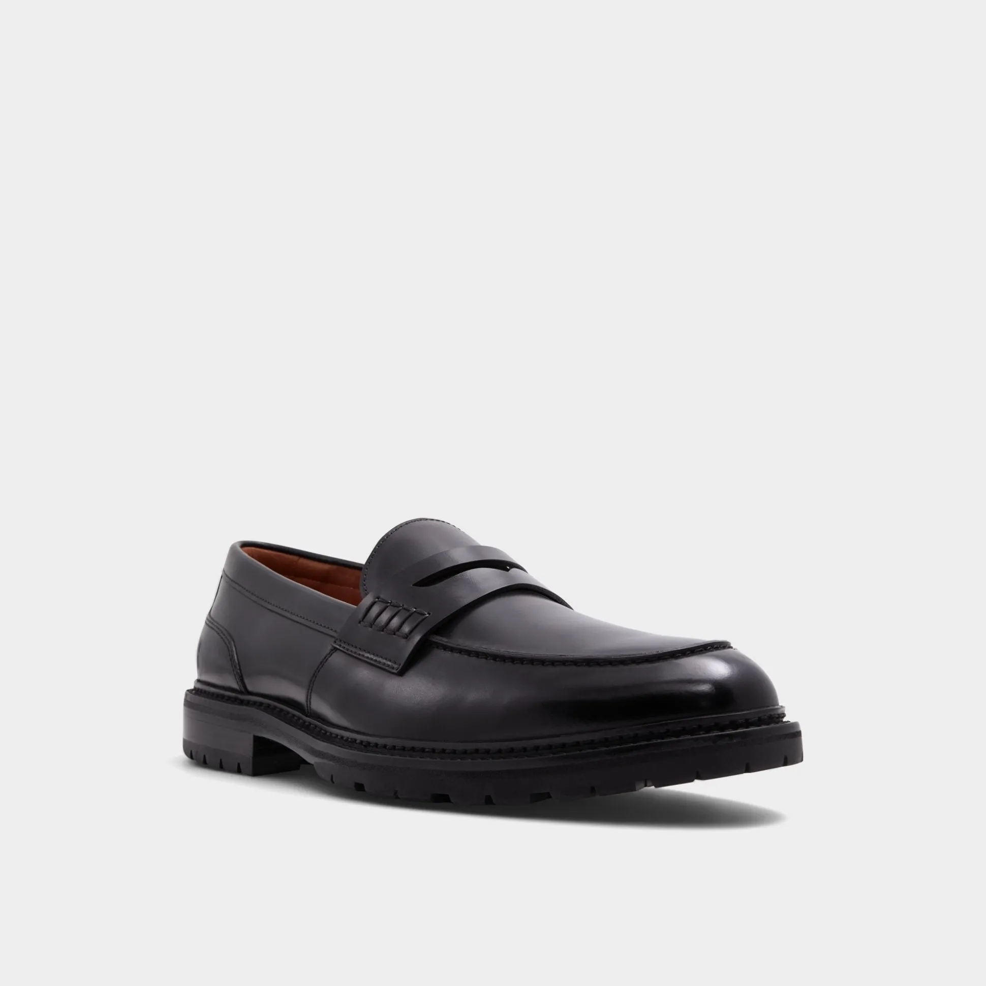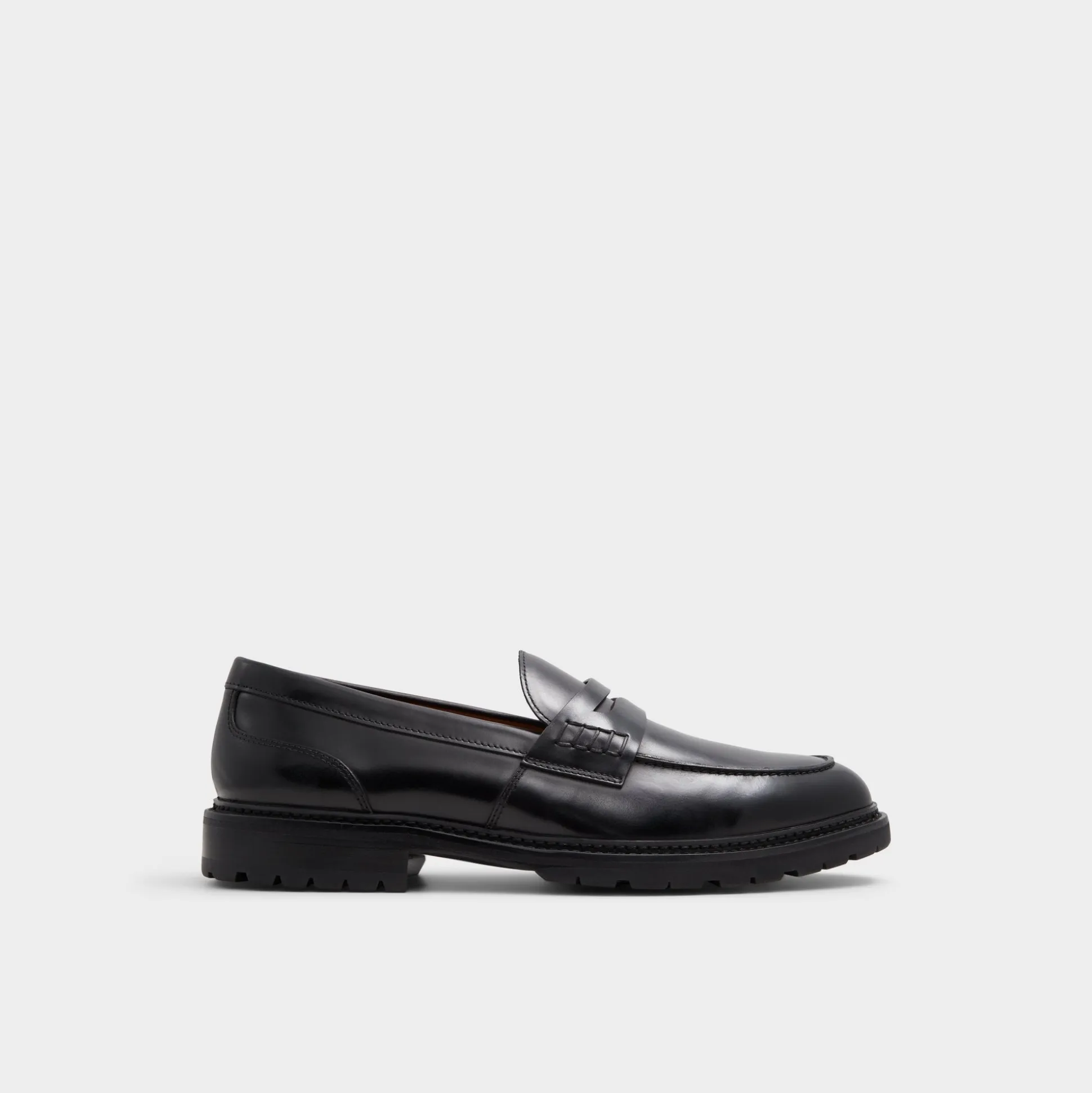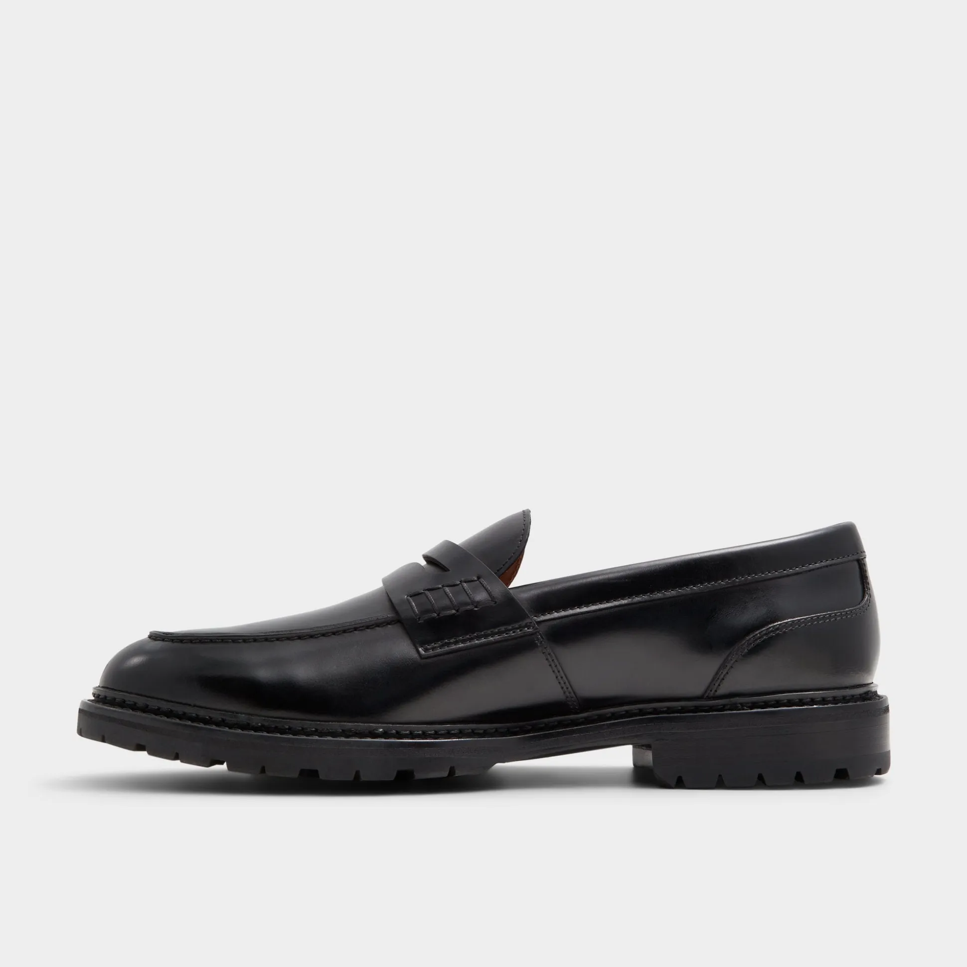 Sleek black leather and a tidy penny strap give this loafer boardroom flair, while the chunky lug rubber sole ensures you stay steady and confident from morning meetings to evening drinks. Pair it with cuffed selvedge denim for art showcases or anchor a slim navy suit during crucial pitches, offering guaranteed grip.