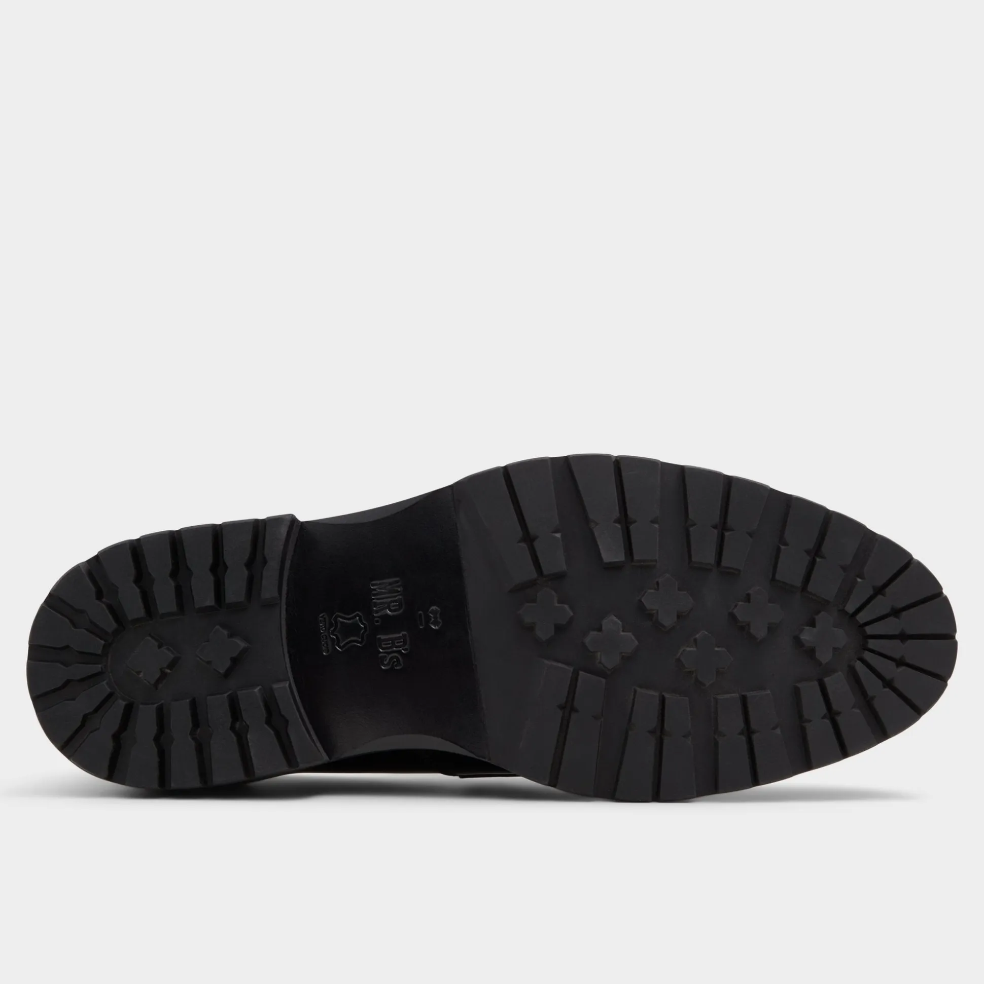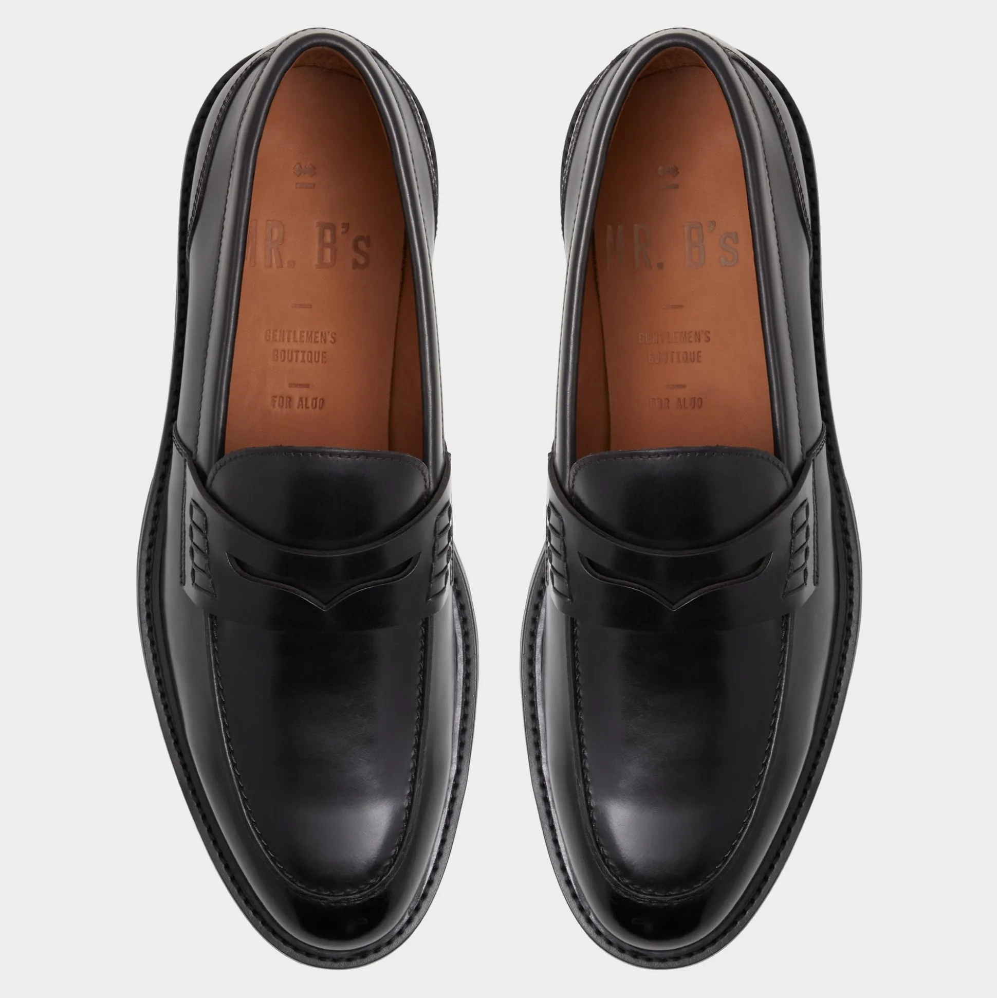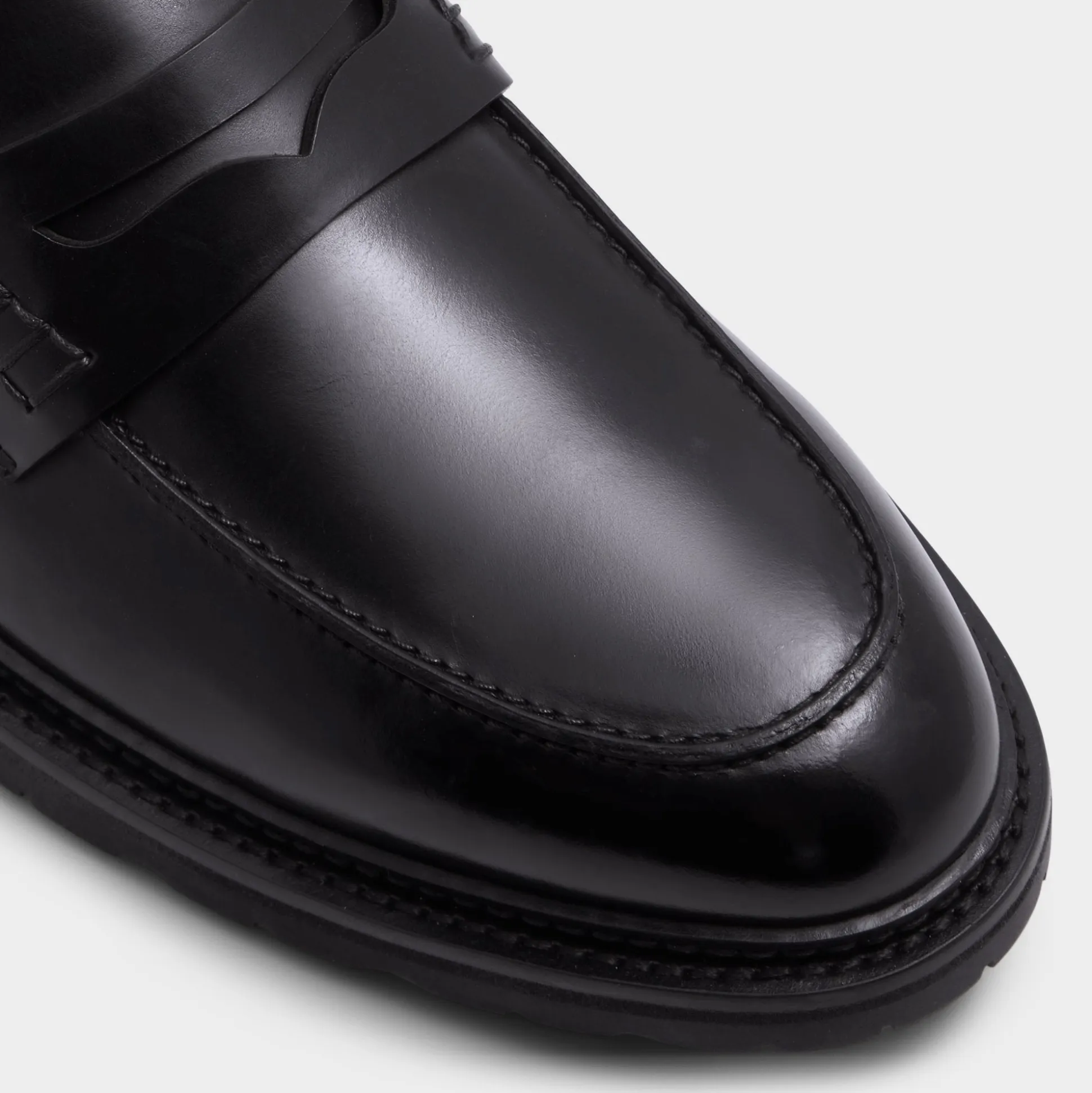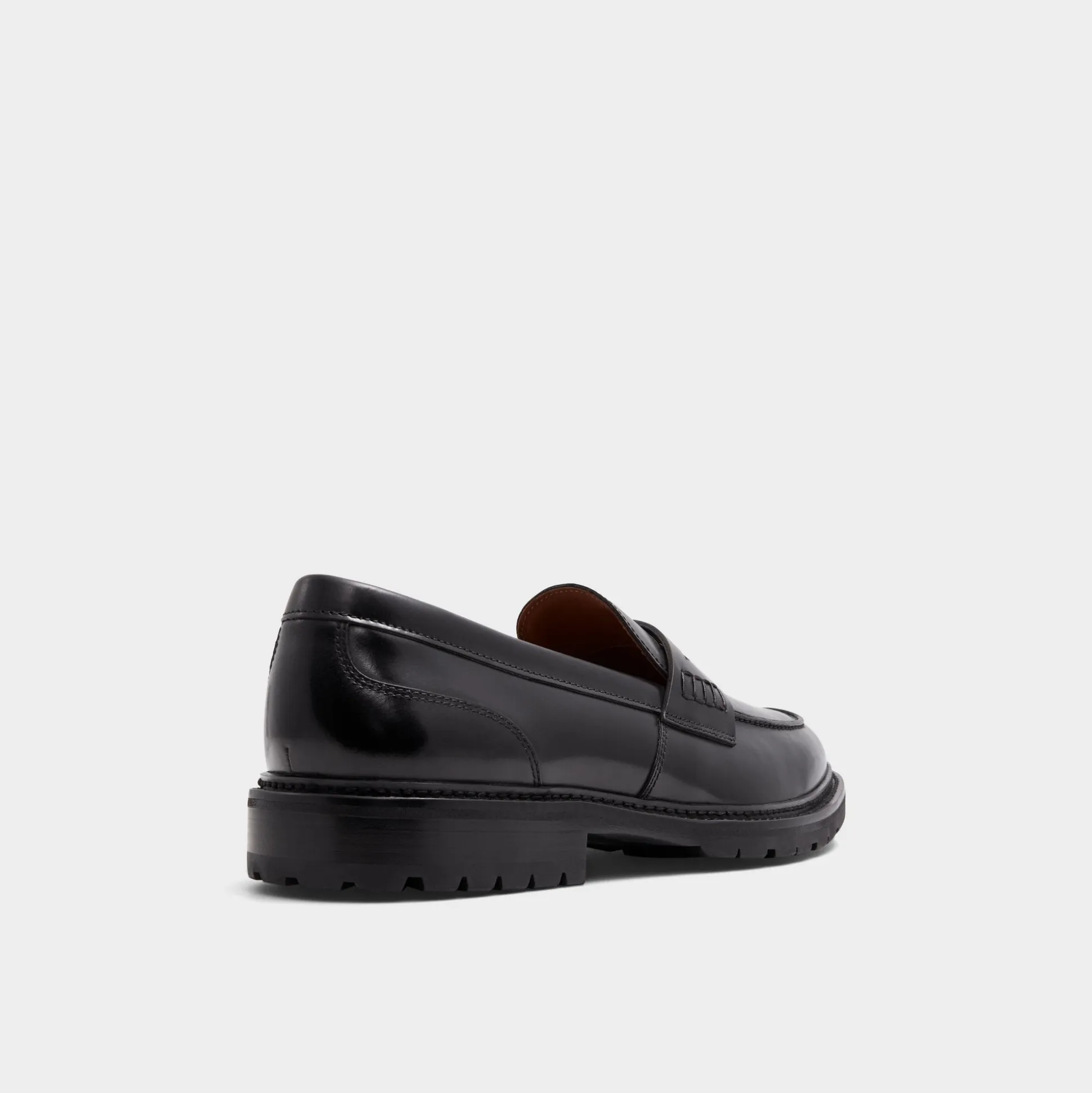 Sleek black leather and a tidy penny strap give this loafer boardroom flair, while the chunky lug rubber sole ensures you stay steady and confident from morning meetings to evening drinks. Pair it with cuffed selvedge denim for art showcases or anchor a slim navy suit during crucial pitches, offering guaranteed grip.