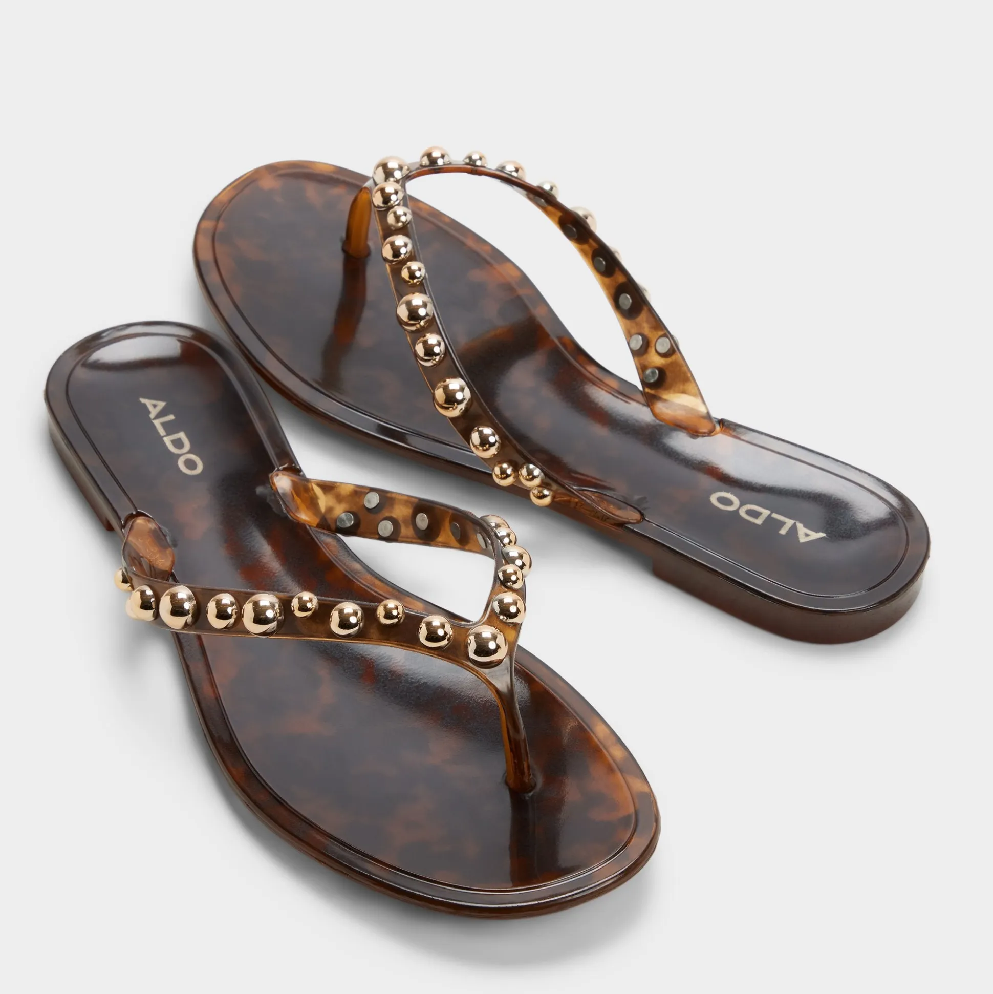 Slip into effortless summer style with the Aliix jelly sandals. Featuring a playful tortoise print and edgy round studs, these transparent beauties deliver a fun, beachy vibe perfect for poolside lounging or casual getaways. Lightweight and flexible, they’re your go-to pair for warm-weather adventures.