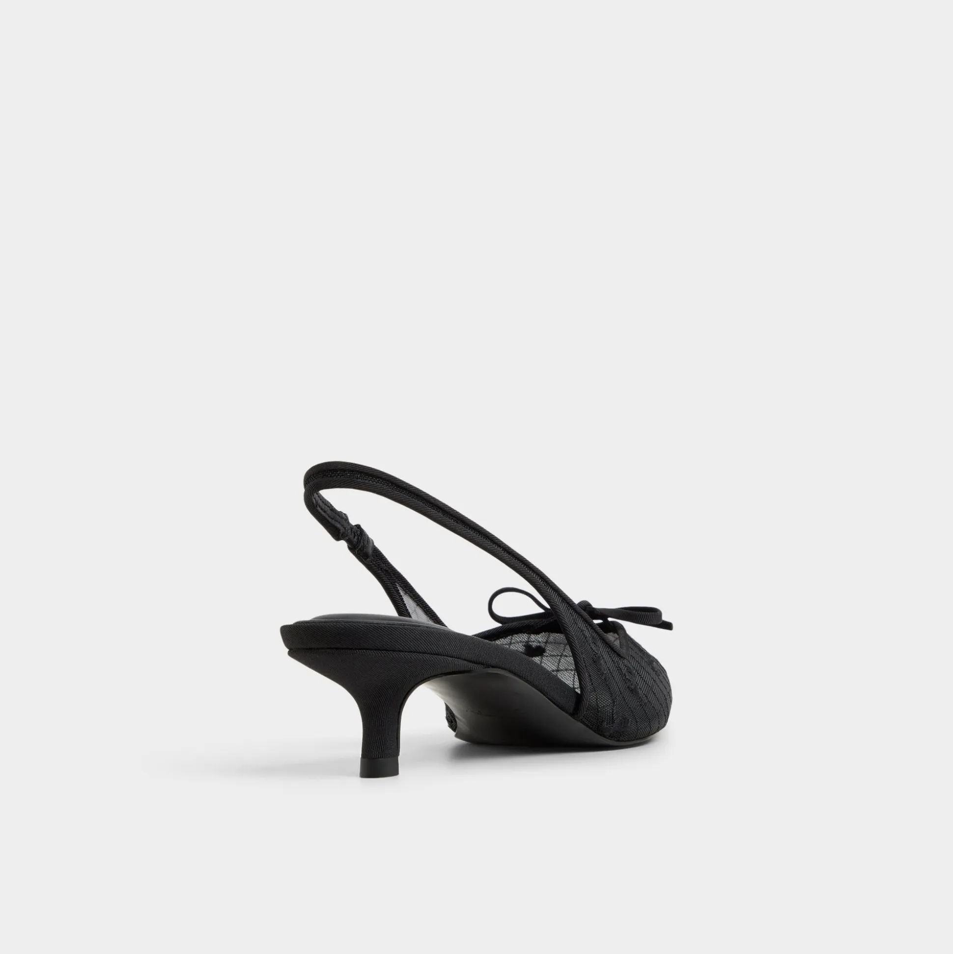 Sheer floral lace drapes the pointy toe of this slingback, crowned by a tiny bow and a polished kitten heel, turning a classic silhouette into a glam-ready statement with feminine confidence. Pair with satin slip dresses for cocktails, or tailored pants for gallery openings tonight.
