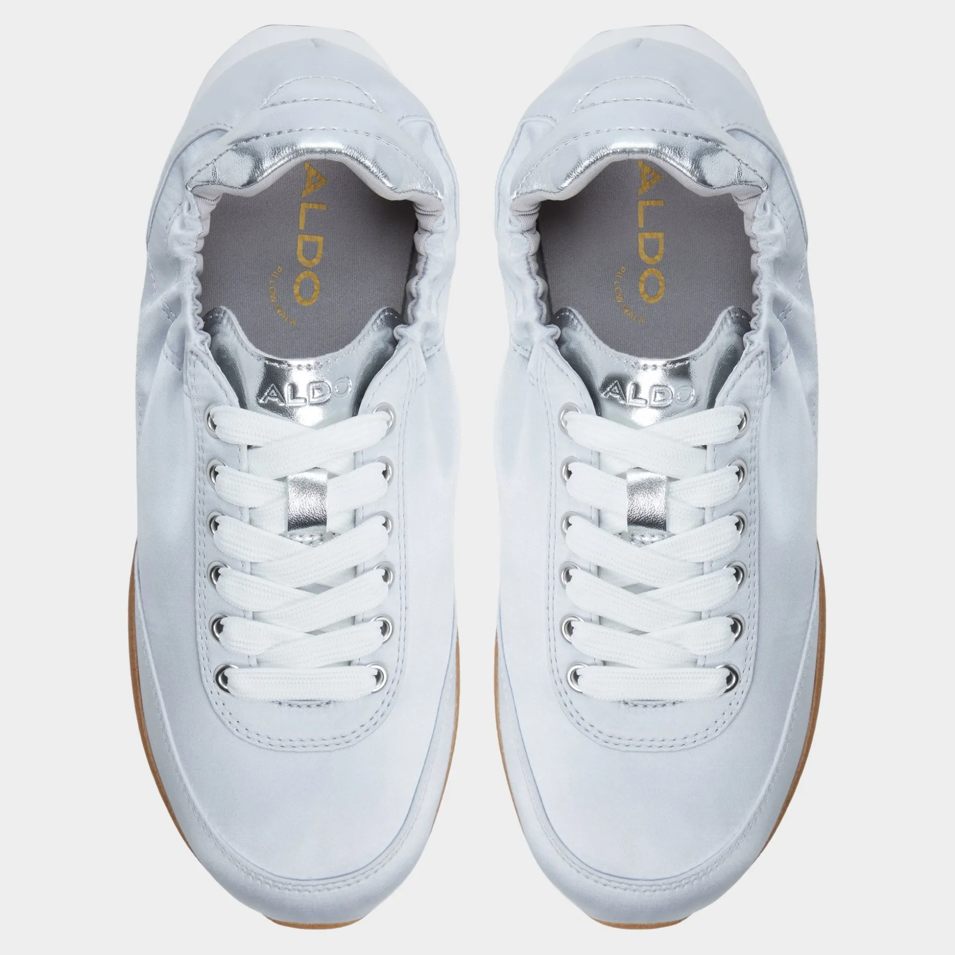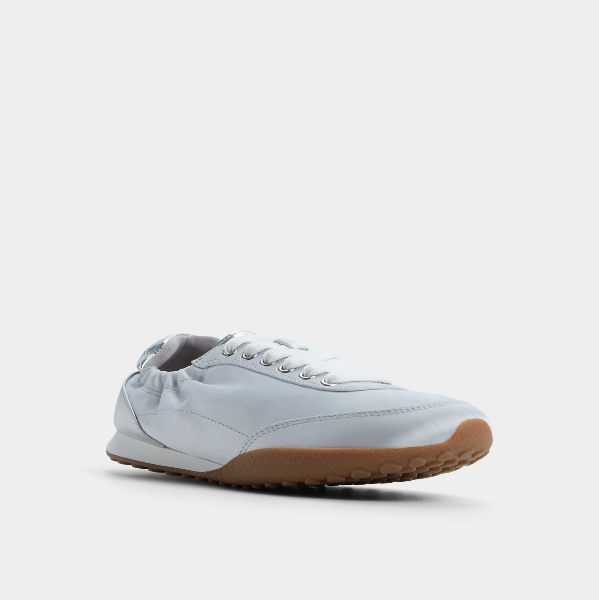 A ballet-flat meets track sneaker hybrid, a silver upper that catches streetlights, turning every stride into a celebration while a stretchy scrunch collar keeps on and off effortless for city hops and coffee runs alike. Pair it with cropped denim for daytime errands, or swap in a slip dress for evening rooftop drinks.