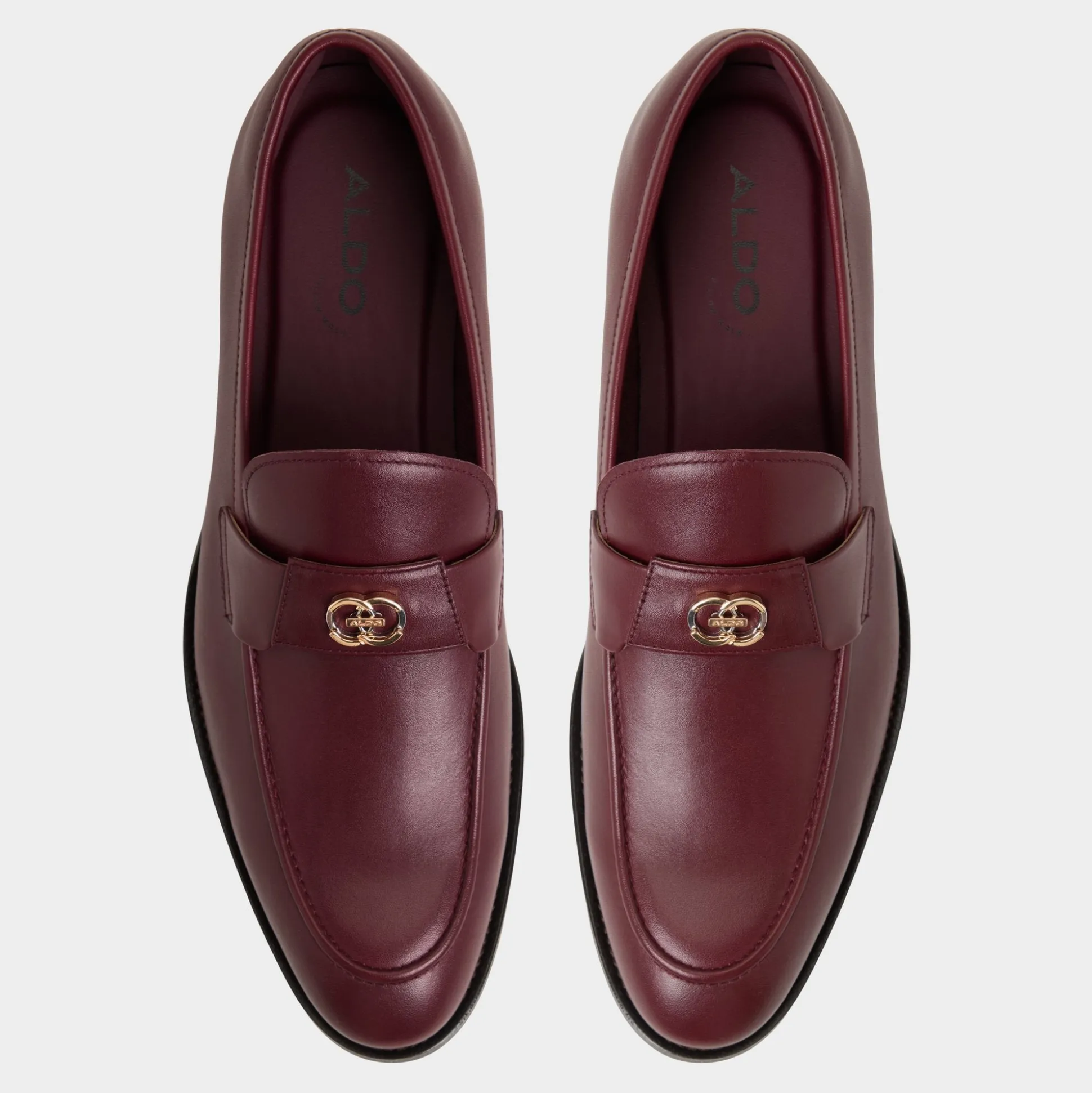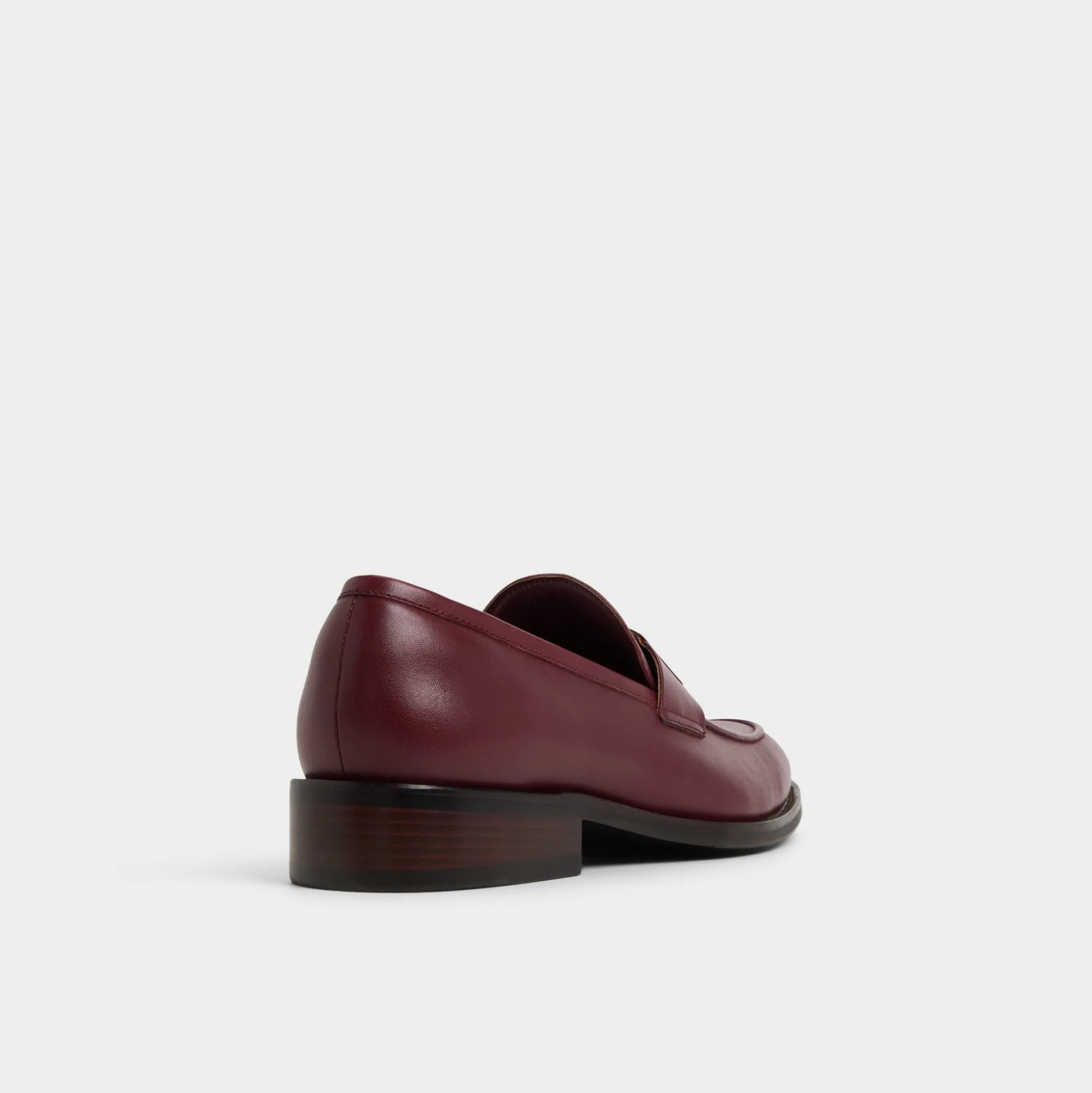 Burgundy leather meets chain-linked detail on this loafer, with soft lining and a low stacked heel that keeps steps smooth from boardroom moments to after-work plans, while a metal accent adds shine. Pair it with a tailored suit for presentations or cuffed chinos for gallery nights, letting the finish spark conversations.