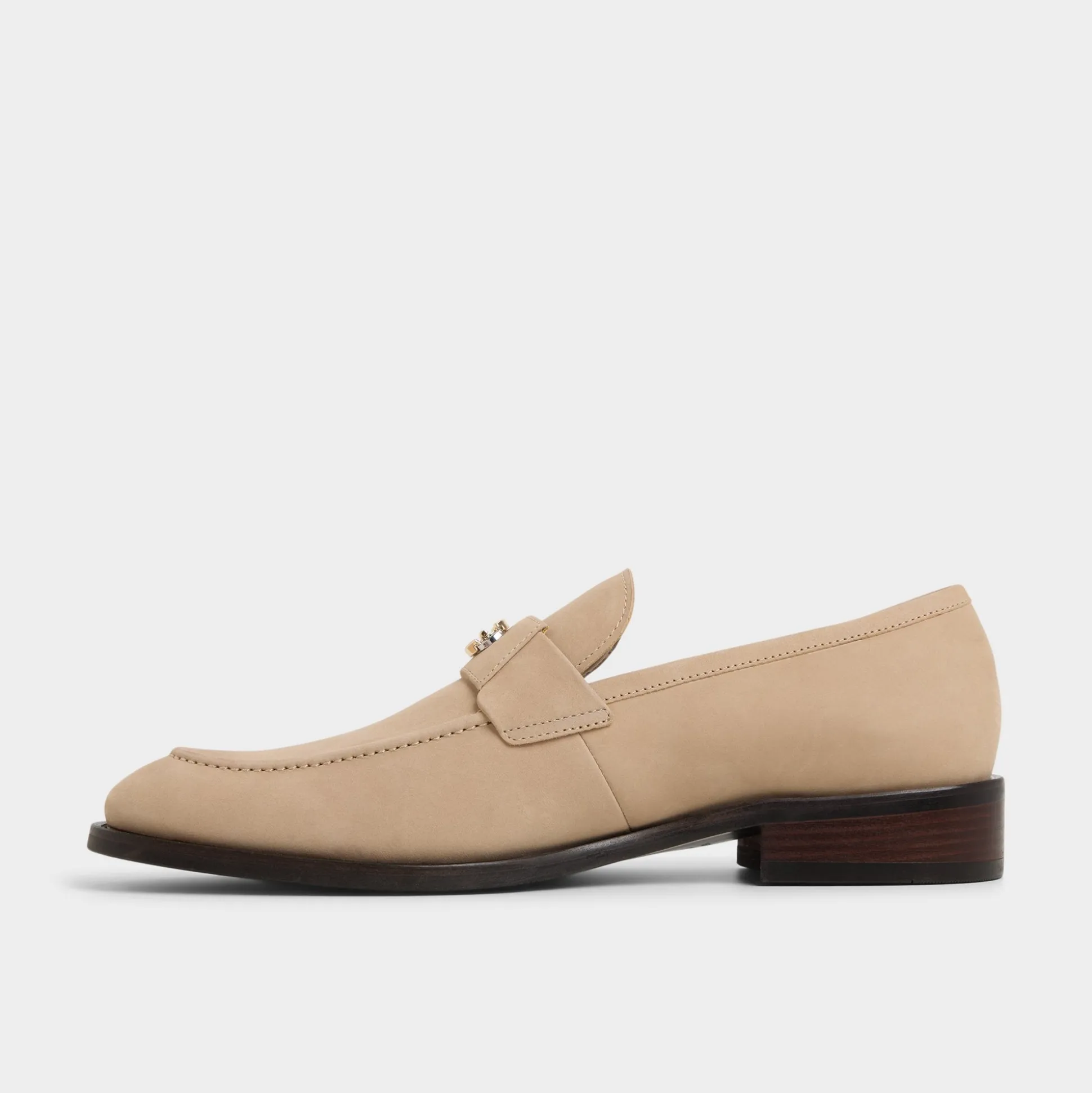 Supple beige leather gives this loafer an elegant touch, spotlighting a polished metal bit across the vamp and a leather outsole that feels nearly weightless during busy downtown days. Pair with cropped chinos for art-gallery afternoons or slip them beneath a navy suit for your first post-promo dinner.