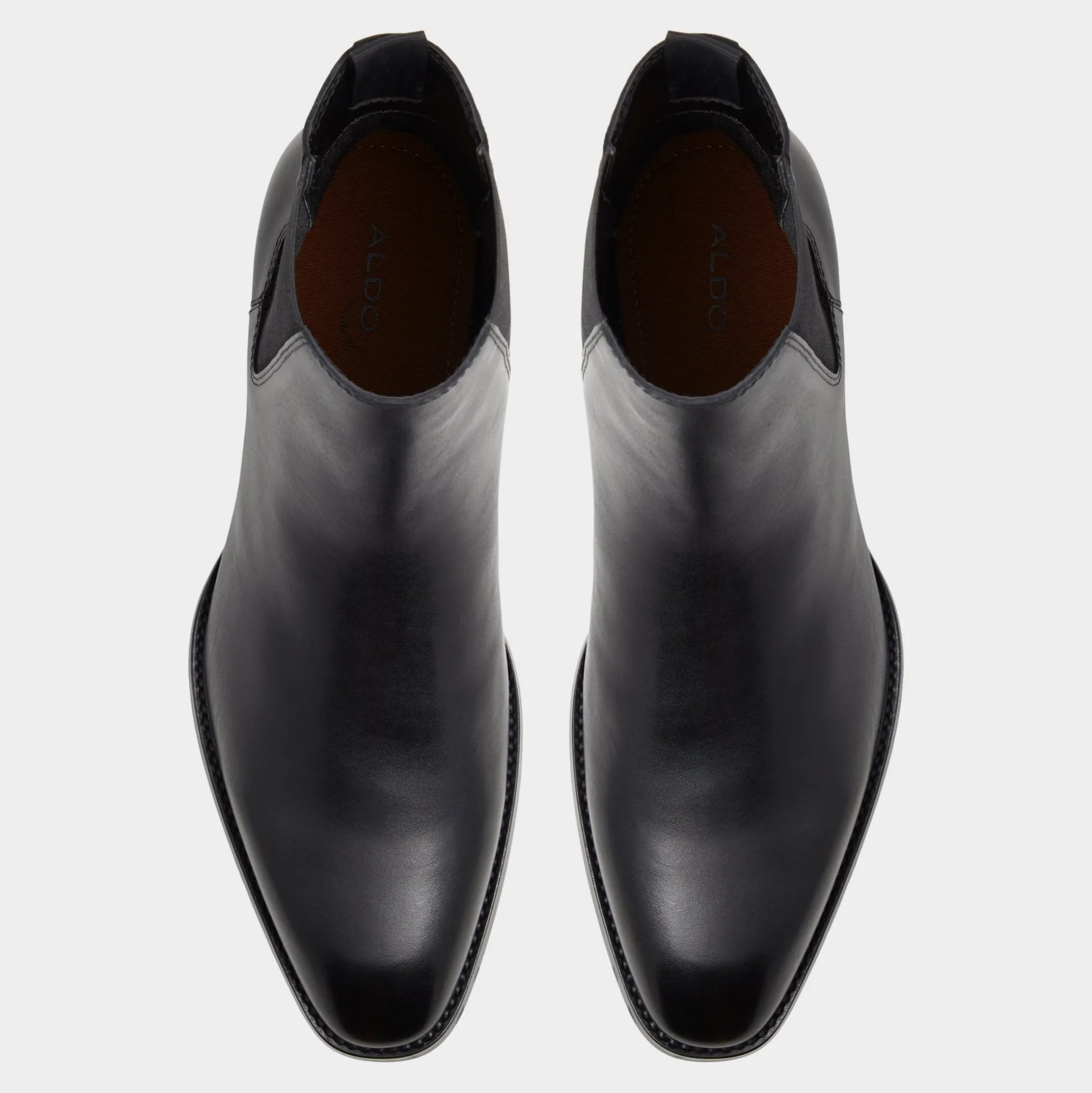 Mirror-sleek black leather seamlessly complements deep tonal elastics on this minimalist Chelsea boot, ensuring a streamlined look while a flexible rubber sole and low block heel allow for comfortable walking all day. Pair with slim wool trousers for pitch meetings, or roll with black denim for gallery nights-its minimal design fits effortlessly.
