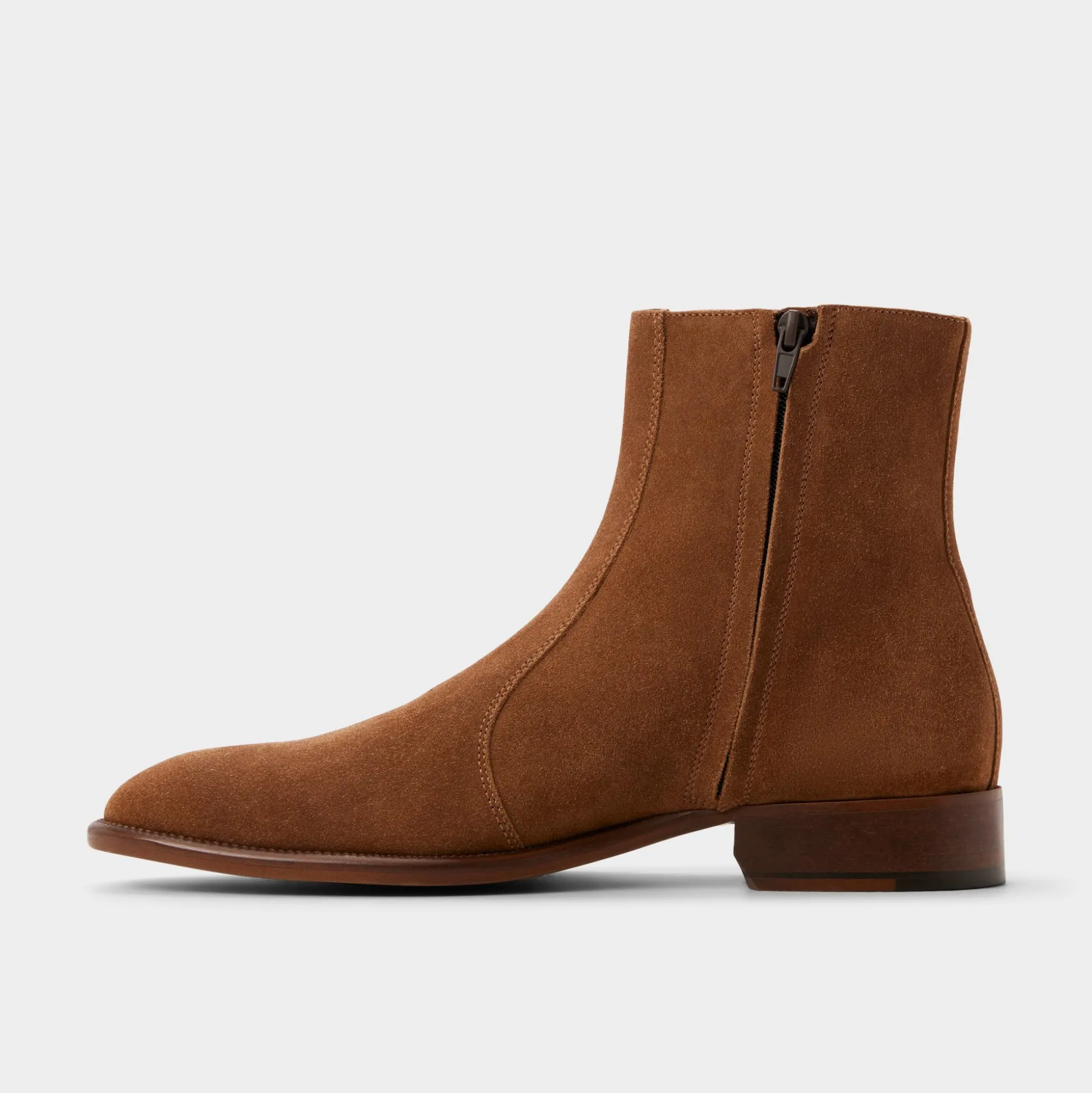Espresso suede envelopes this ankle boot with understated elegance, while a slim leather outsole adds a feather-light touch, making each step on the pavement purposeful. Pair with grey wool trousers for business lunches or team with dark denim for relaxed evenings-the sleek design keeps the focus where you want it.