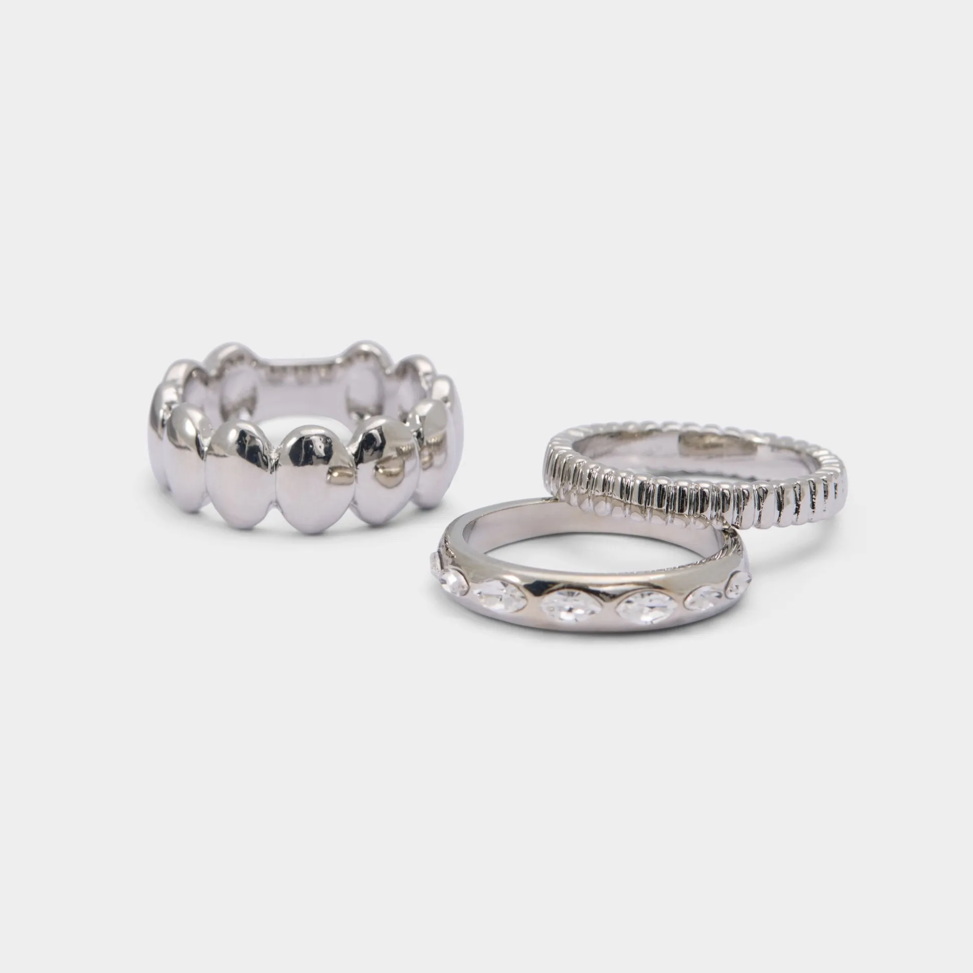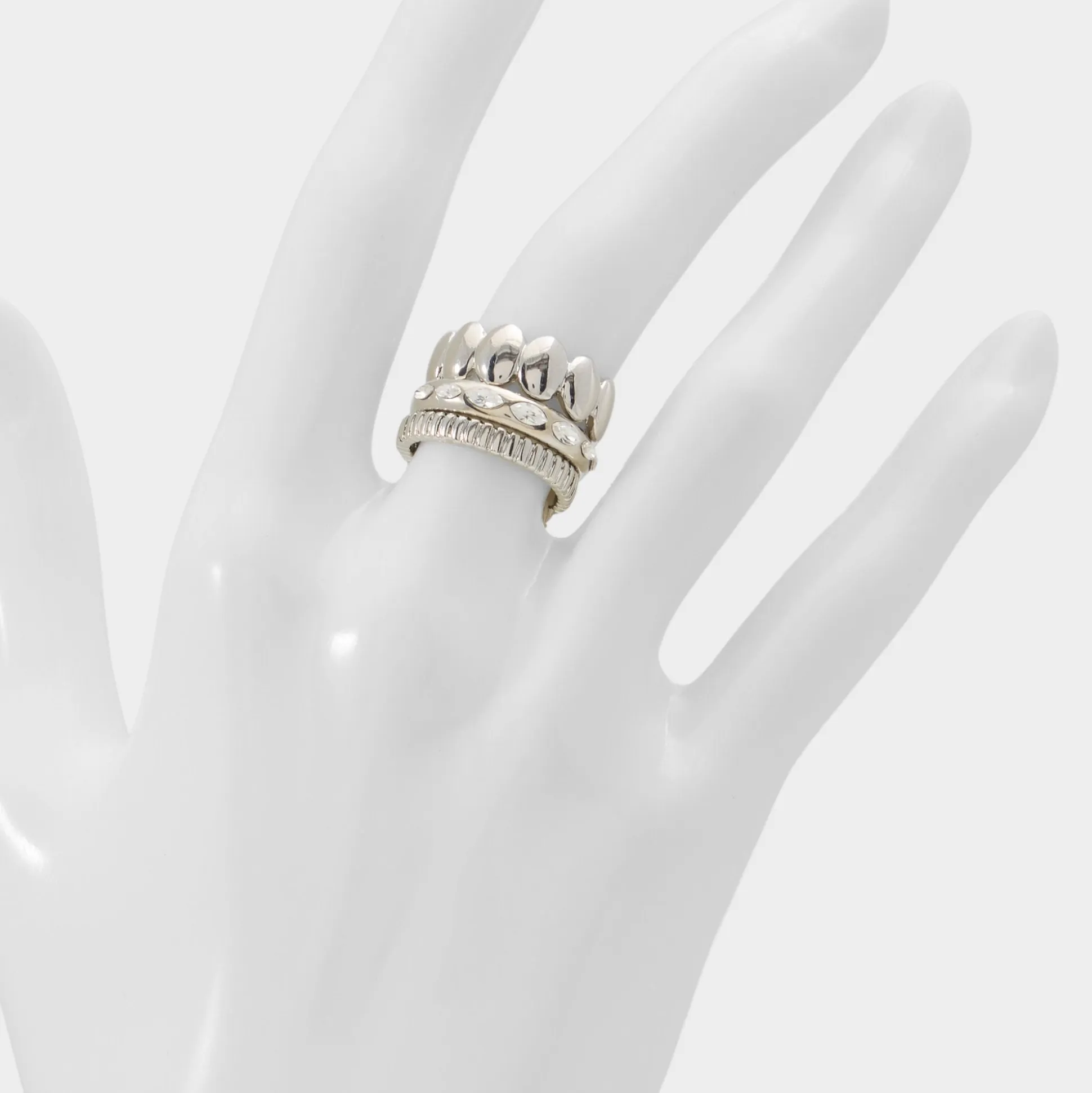 Bubble-bead details meet grooves and crystal inset lining on a three-ring set, delivering mix-and-match attitude that catches the light with every move. Layer them with a blazer for cocktails, or stack beside a knit at coffee runs to finish a city-ready look.
