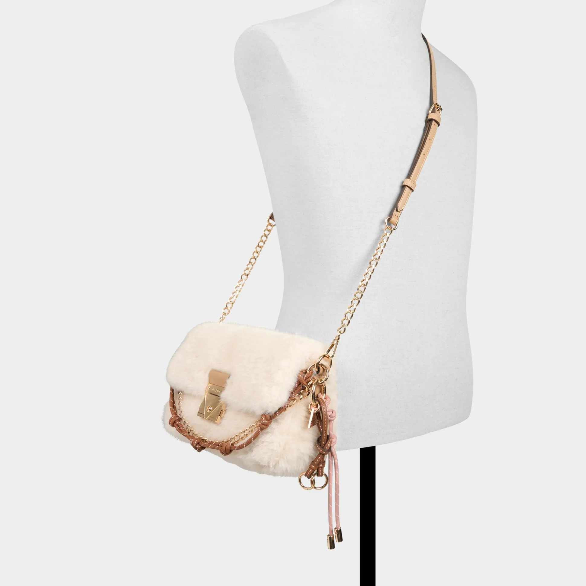Snow-soft faux fur wraps this compact crossbody in apres-ski coziness, with a removable chain strap that snaps off to switch from shoulder to waist wear for seamless evening outings everywhere. Pair chunky knits with wide-leg denim on coffee runs, or tuck against velvet minis during holiday nights.