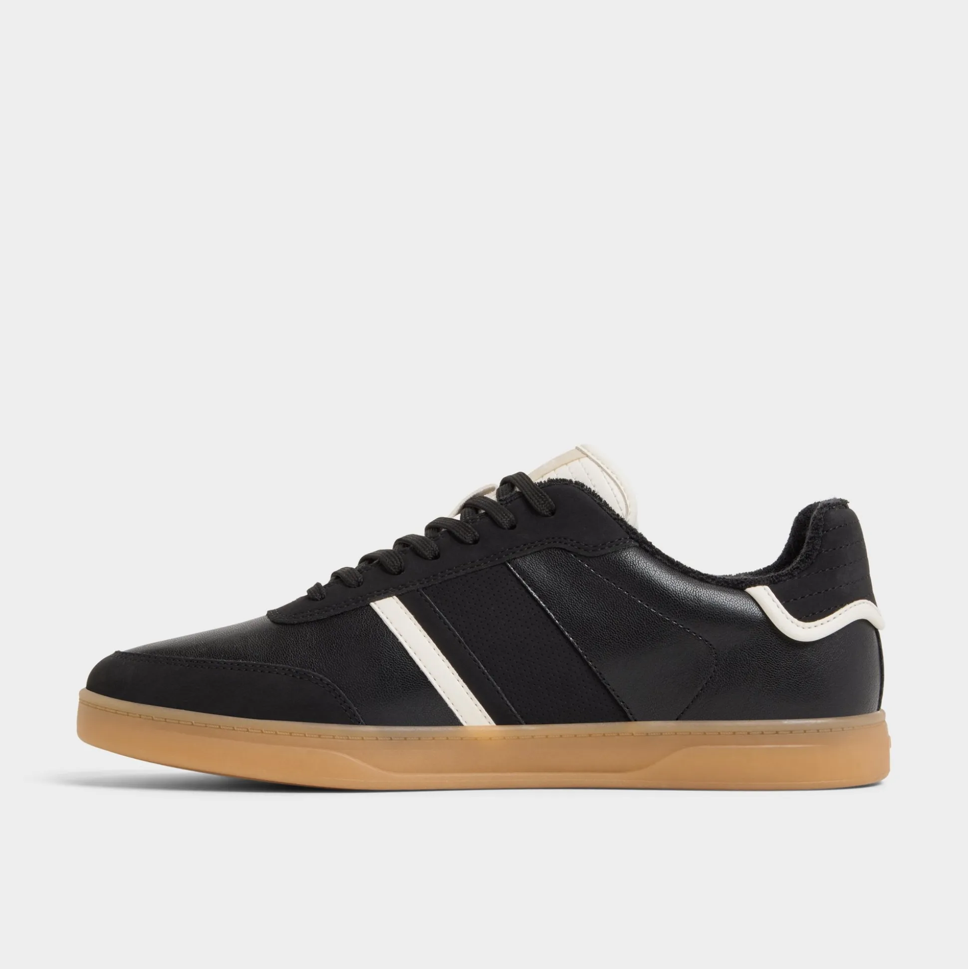 Retro white racing stripes slice through black leather and nylon panels, hitting a sweet spot between sport and street, while a springy gum cupsole cushions quick city pivots all day long. Anchor tapered joggers for Saturday pick-up games or roll with cropped chinos at patio lunches-the clean profile plays both halves.
