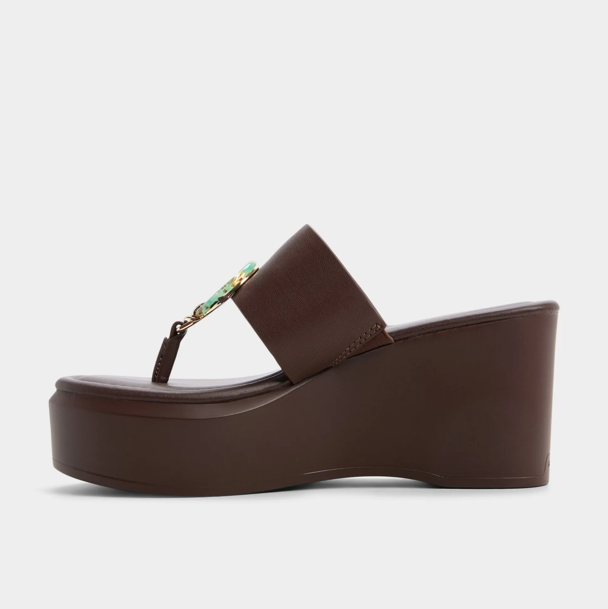 Slip into effortless style with the Friegan wedge thong sandal. This chocolate brown beauty features a decorative ring detail that catches the light, while the comfortable wedge heel keeps you steady through beach days and seaside strolls. Perfect for warm-weather escapes where comfort meets understated elegance.