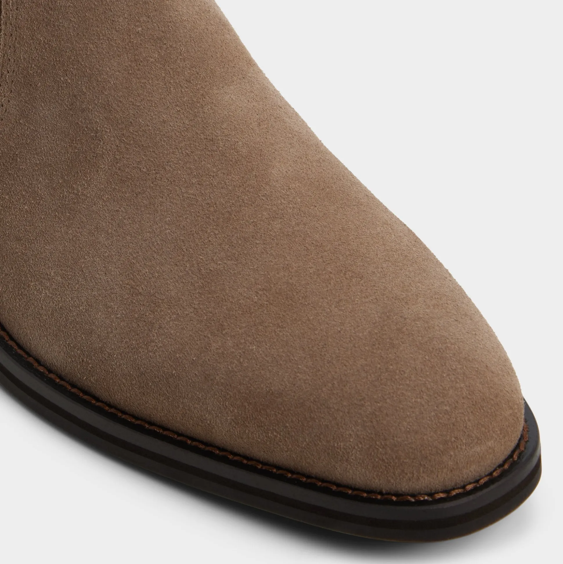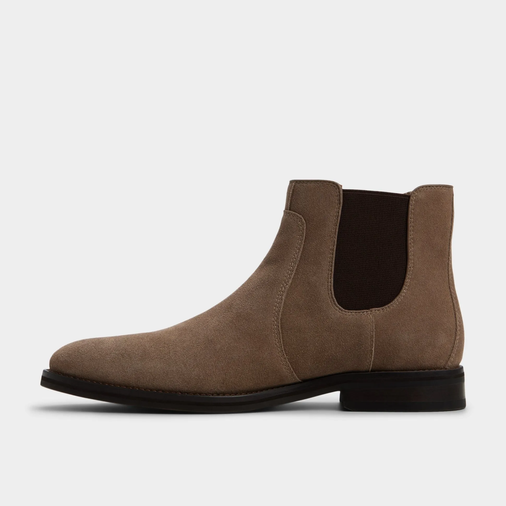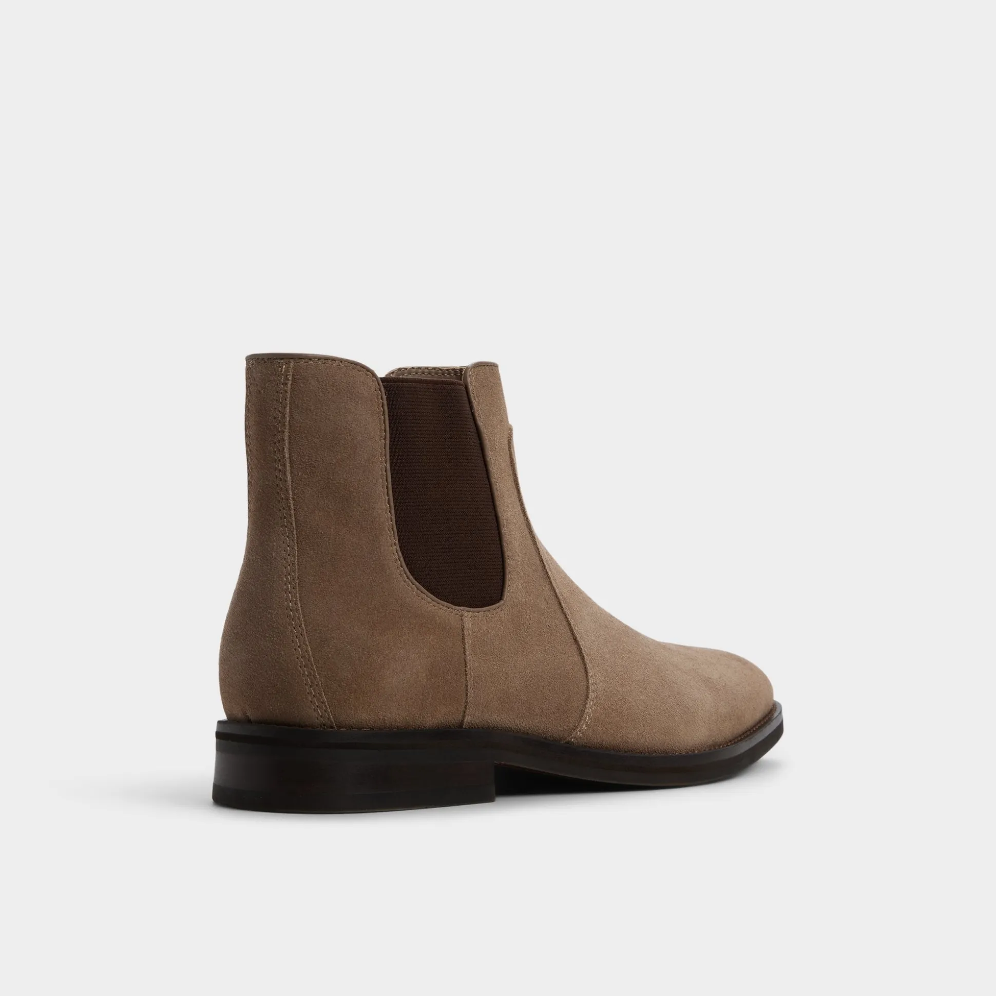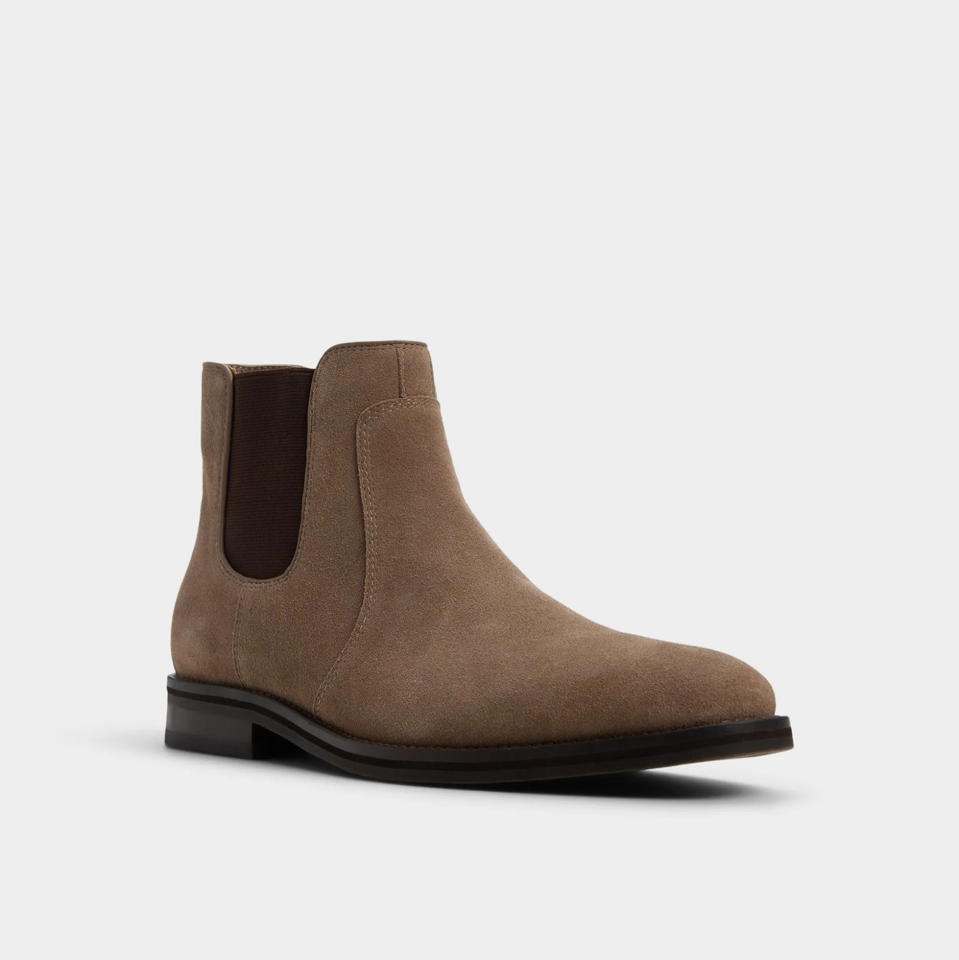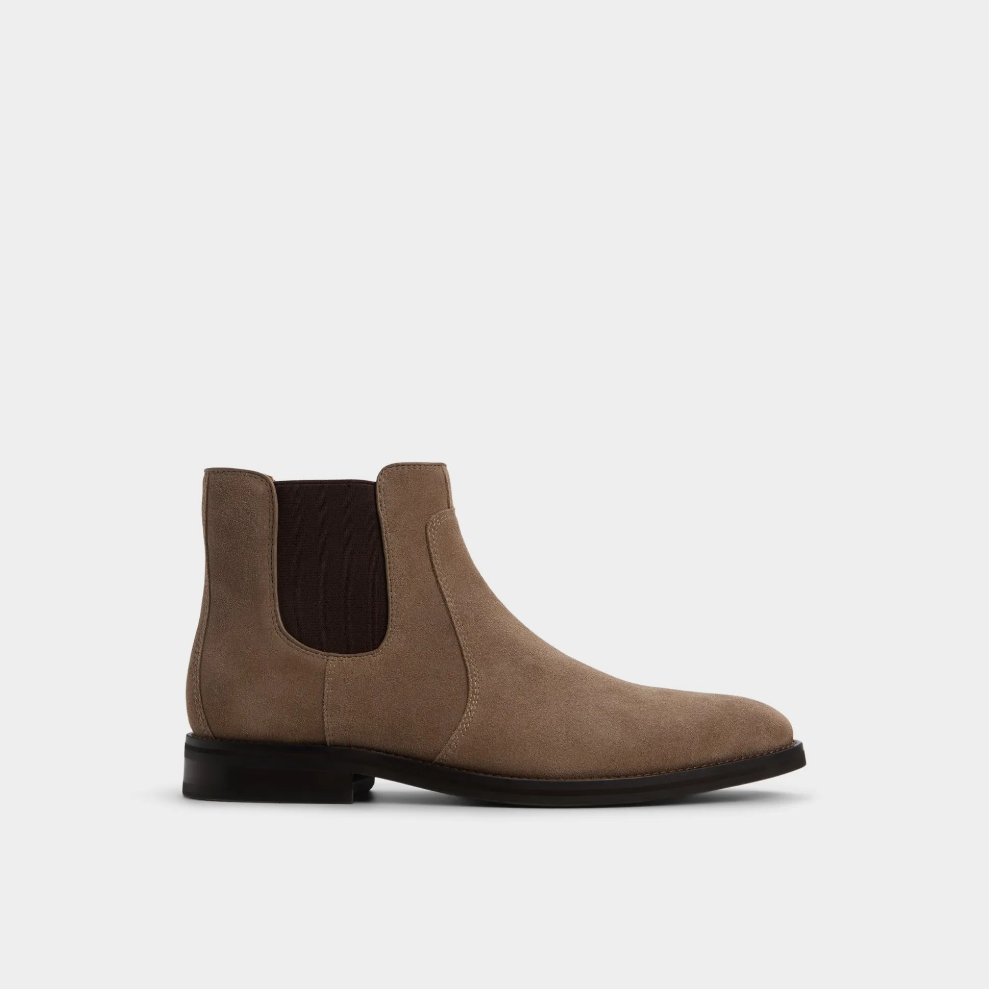 Taupe suede brings a relaxed texture to these Chelsea boots, with matching stretch side panels making them easy to slip on while a sleek rubber cupsole keeps city strolls effortless. Pair them with cuffed selvedge denim for casual Friday brainstorms or slip under charcoal overcoats and wool trousers for gallery weekends-the clean almond toe remains impeccably sharp.
