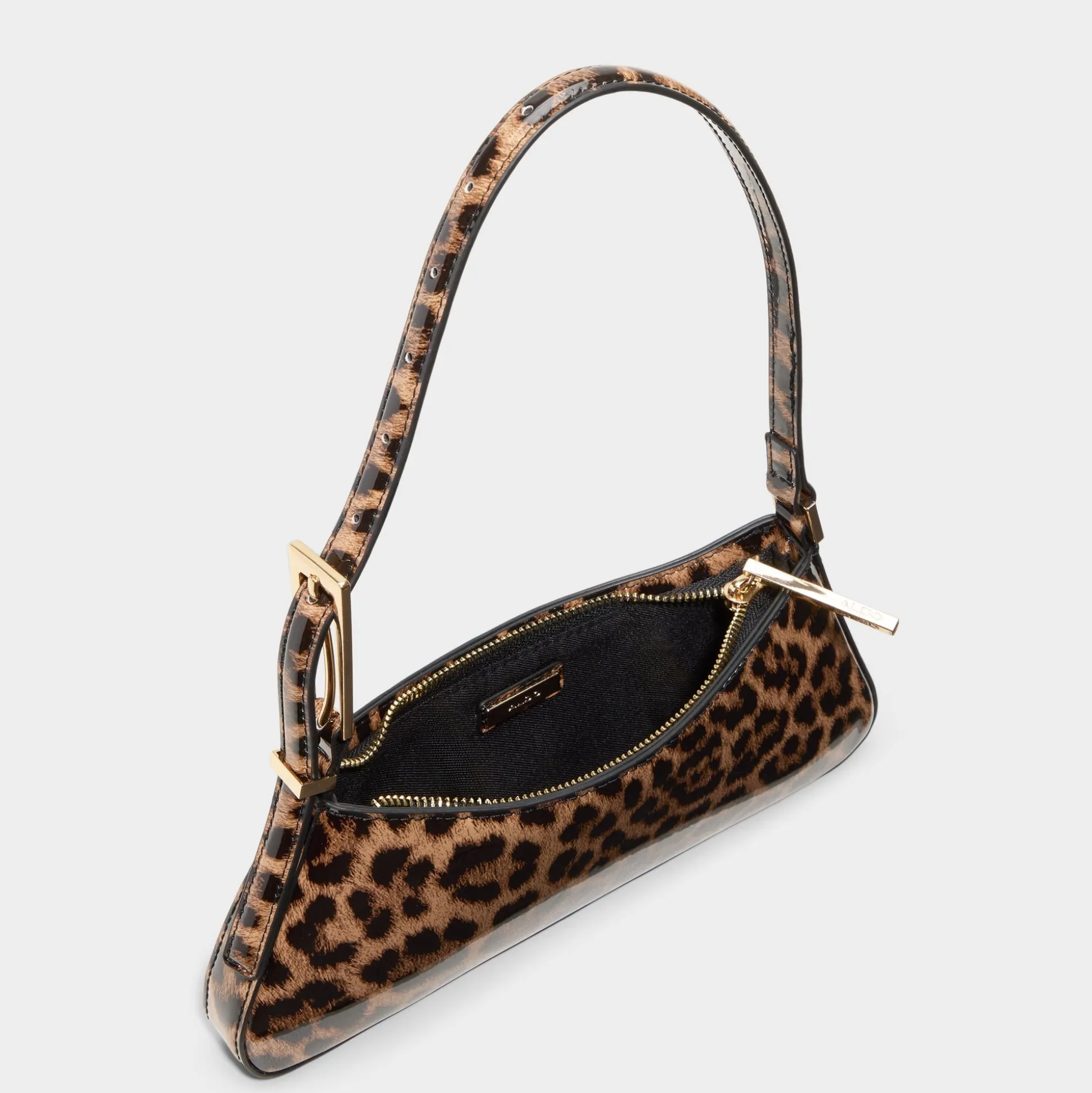 Leopard-print cow hair glides along a slim baguette frame, finished with gold-tone hardware and a seamless zip that keeps the silhouette clean from after-dark drinks to Sunday brunch, for city evenings and casual days alike. Carry it with a satin slip for after-dark ease or tuck it under your arm with vintage denim for weekend brunch.